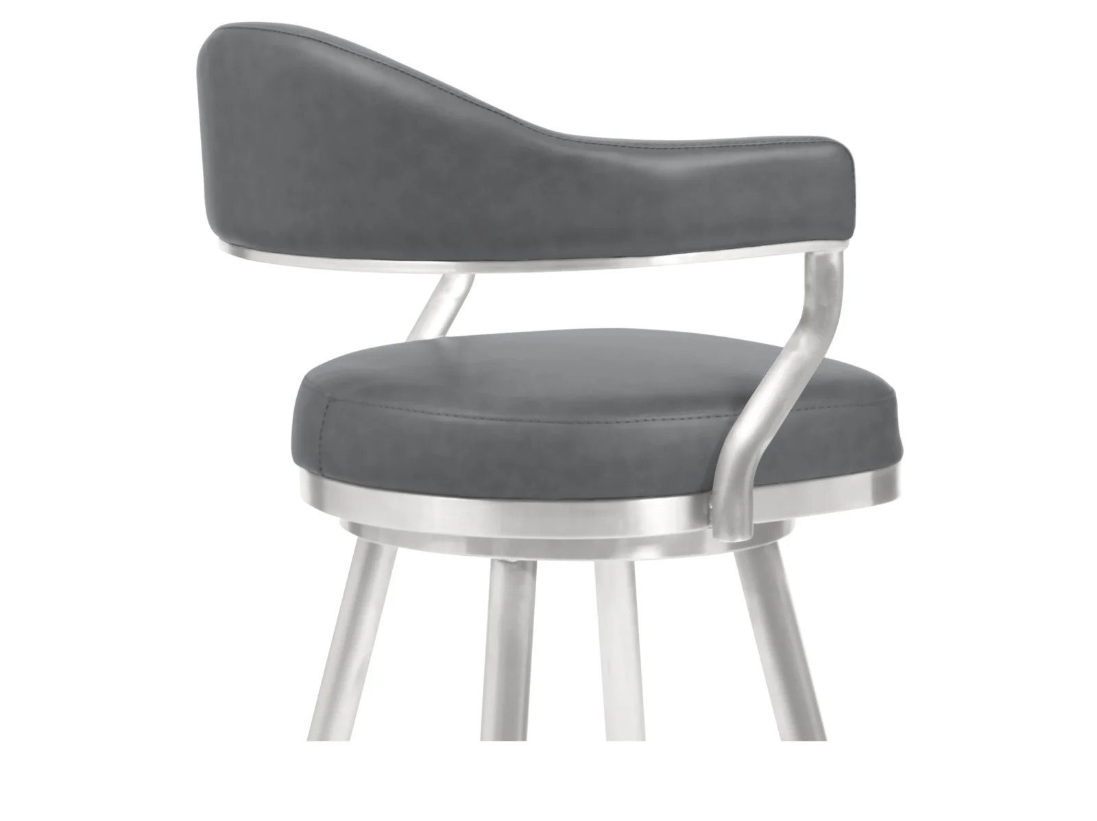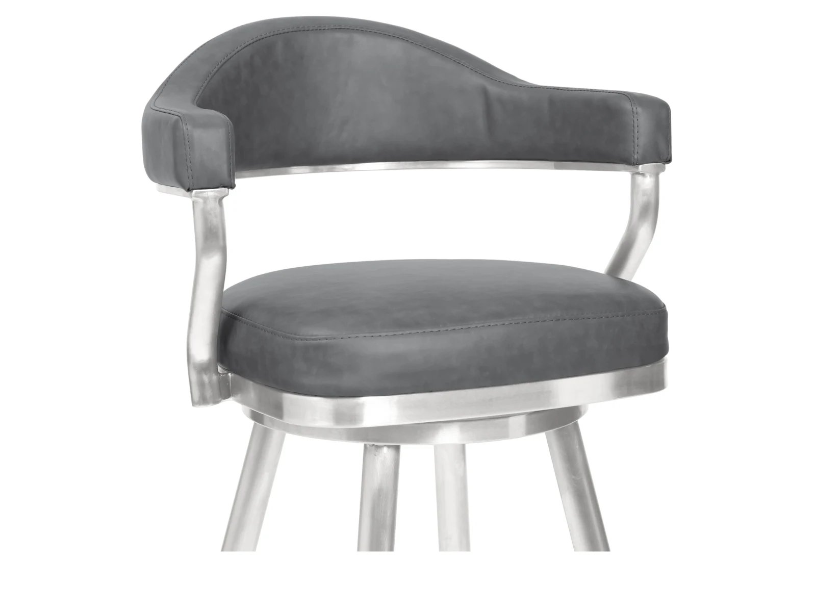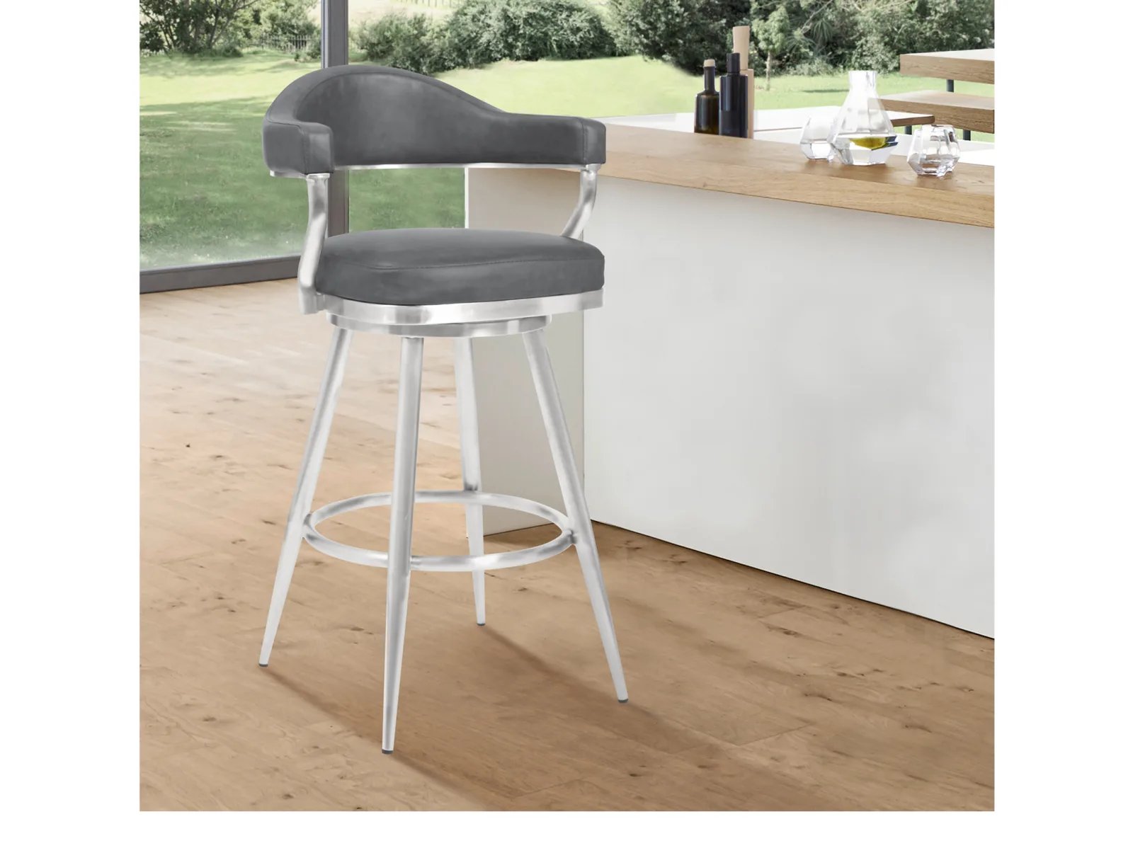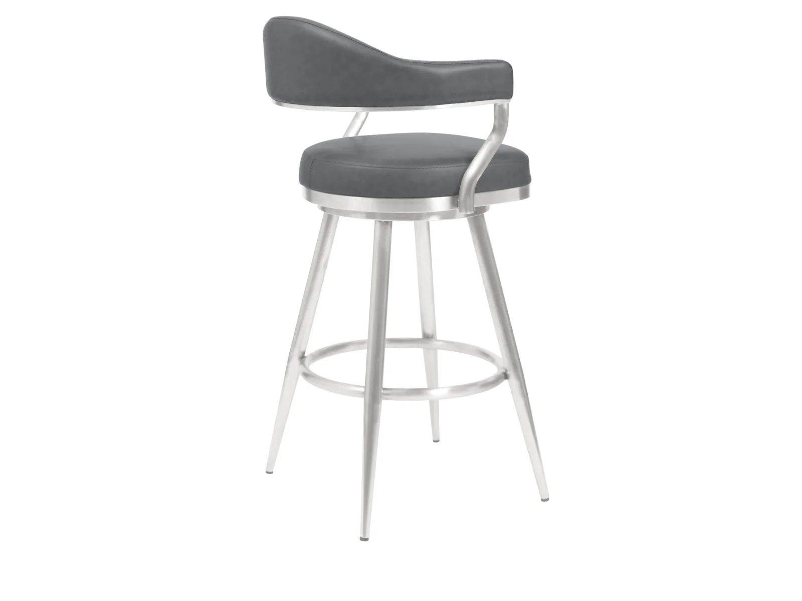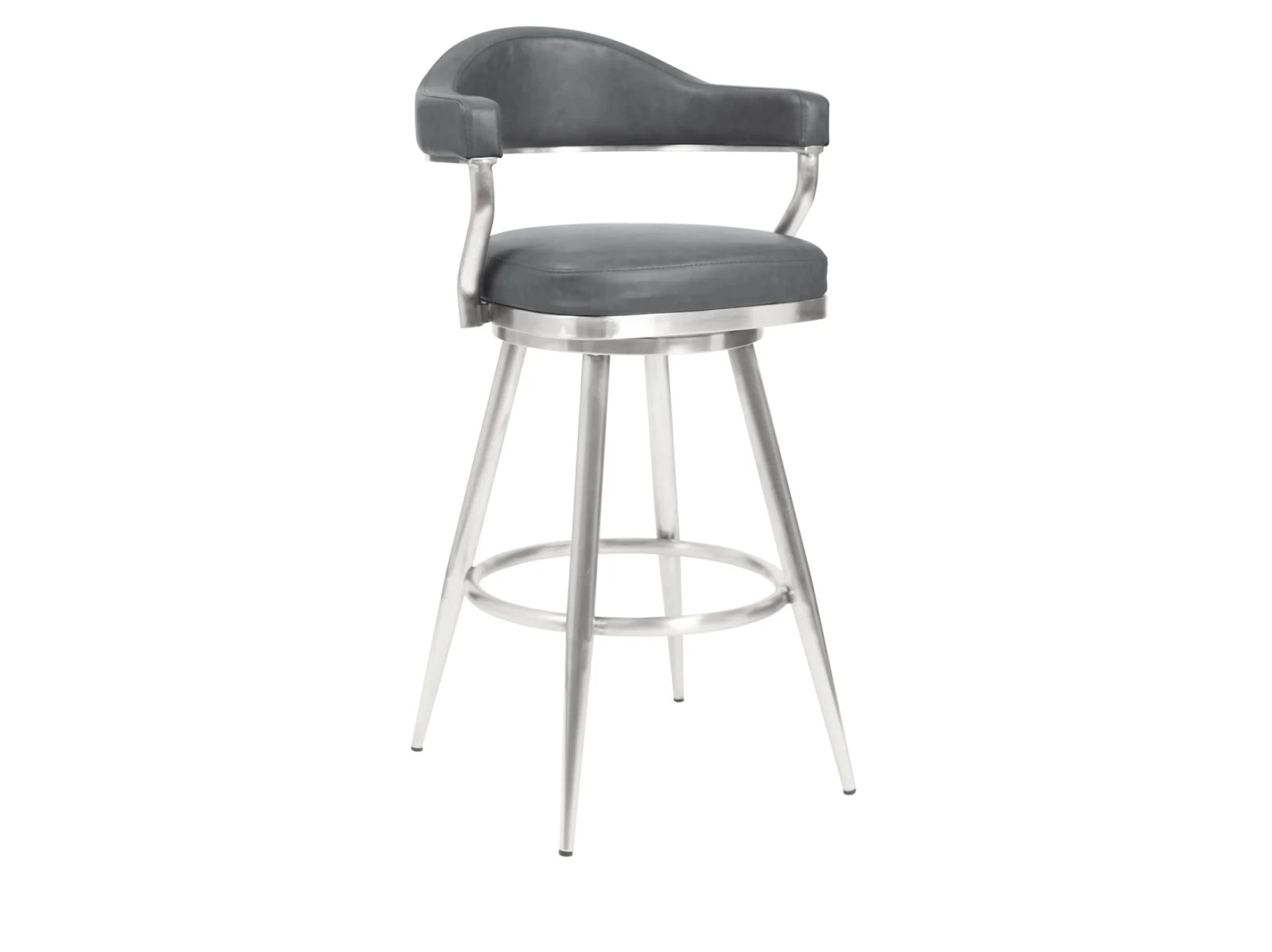 & Free ShippingThe Armen Living Action contemporary bar stool is a gorgeous piece to have in any modern household. This elegant bar stool boasts a durable Black Powder Coated finish metal frame accompanied by sleek Vintage Black faux leather upholstery. This exquisite combination endows the Action with a truly unique contemporary style without compromising on durability. The Action’s low upholstered back is designed to hug the user, providing excellent lumbar support. The rounded upholstered seat features a 360 degree swivel function, allowing for enhanced mobility while seated. The Action’s practical leg design features a convenient ringed footrest and floor protectors, assuring that the bar stool will not damage hardwood or tile floors when moved. The Action is available in two industry standard sizes; 26 inch counter and 30 inch bar height.