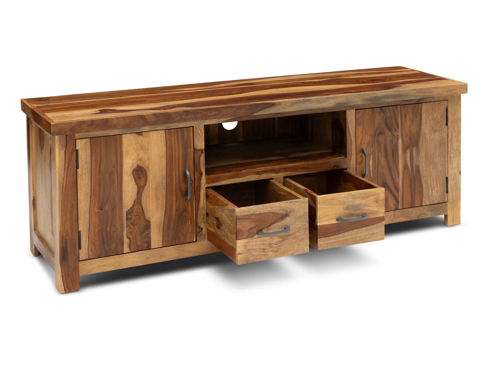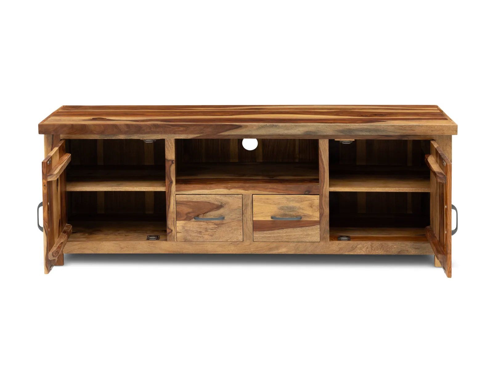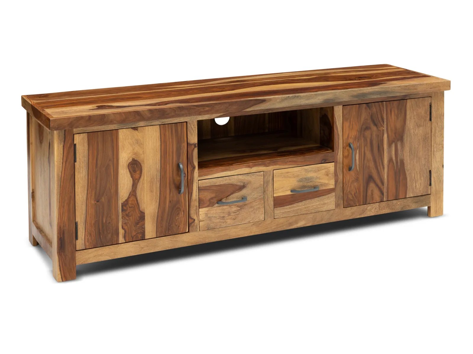 & Free ShippingThe Adderly Media Console brings sophisticated rustic style to your home with its classic lines enhanced by striking textures. Made of poplar and acacia woods, this console table boasts eye-catching herringbone-patterned doors concealing useful storage space. Inside this piece are two adjustable shelves, offering adaptable storage to your living room, guest room, or den. Coming together in a distressed natural gray finish, the Adderly is complete with textured iron hardware that adds industrial charm. Whether used as an entryway showpiece or stylish storage solution, the Adderly Media Console combines timeless design with practical versatility.