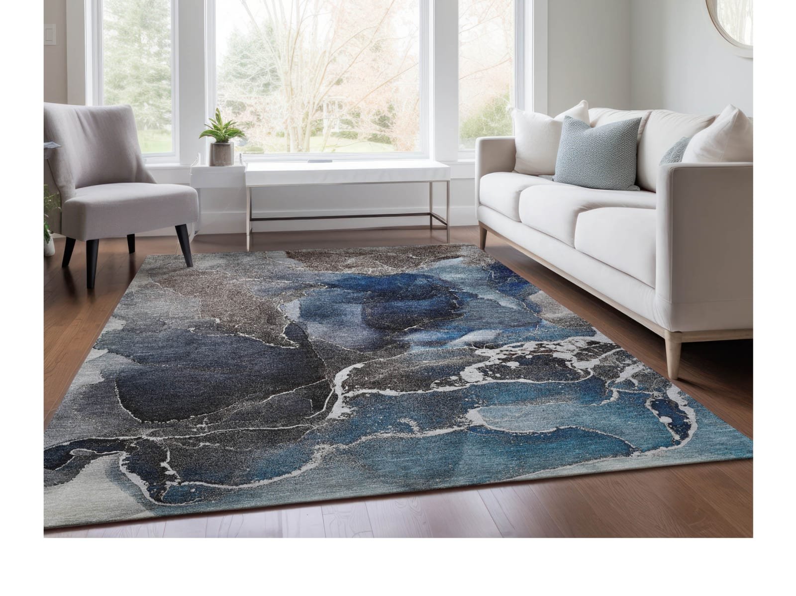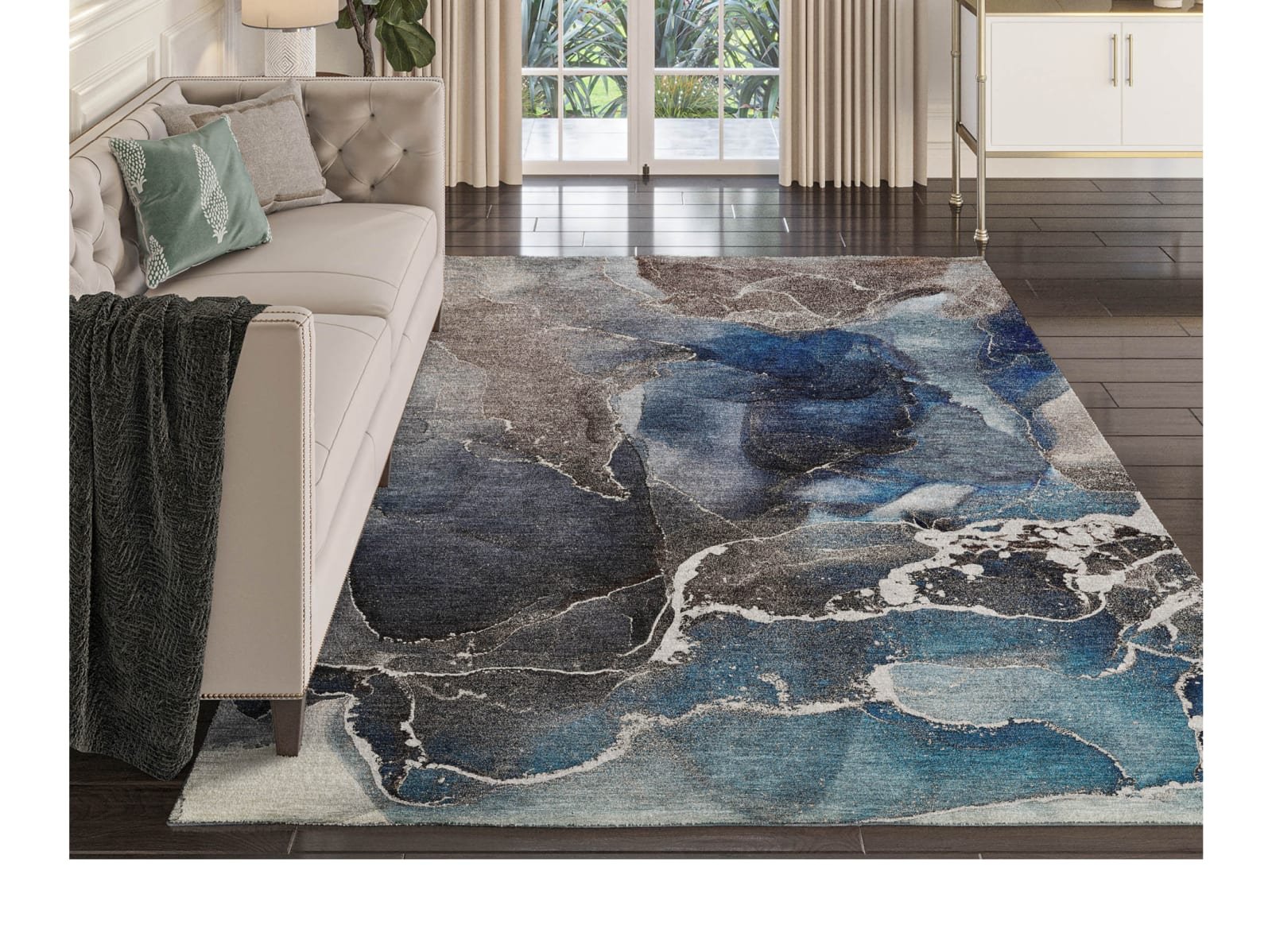 Dive into contemporary design with the Agate Azurite Rug, where alcohol ink-inspired artistry meets everyday functionality. This stunning area rug features soft tonal colors that create incredible visual movement, capturing and reflecting light in the most mesmerizing manner. The luxuriously soft and plush 100% polyester microfiber pile provides comfort as profound as its beauty, while its machine washable construction and indoor/outdoor versatility make it ideal for active households with families and pets. It’s proudly crafted with final finishing in the USA, making it a standout item for years to come. Make movement soft and resilient in your home with the Agate Azurite Rug!