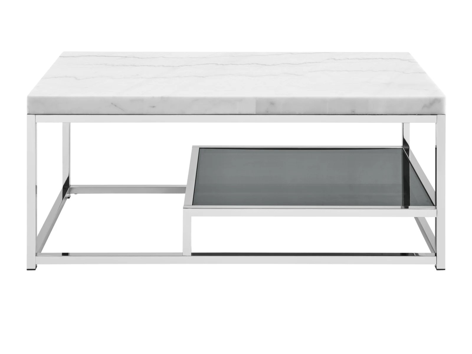 & Free ShippingDetails abound in this asymmetrical masterpiece that centers a room. A sparkling chrome base and modern sled base form a solid foundation for the lustrous marble top that demands attention. Top it off with an offset black tempered glass shelf for display or storage and you have a table centerpiece for the ages. Pair with the matching Alfenas Marble Top End Table for a living room that will be the envy of the neighborhood.