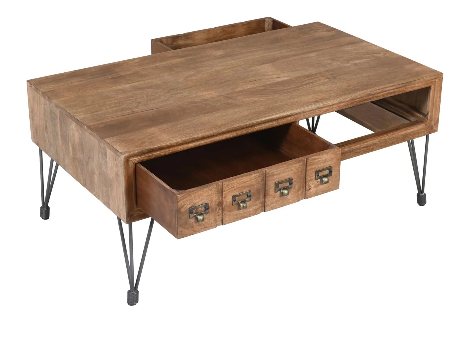 & Free ShippingSolid, kiln-dried mango paired with industrial hairpin legs and apothecary details – our aliso Viejo collection is a gorgeous ad to your space. This coffee table features two pass through drawers.