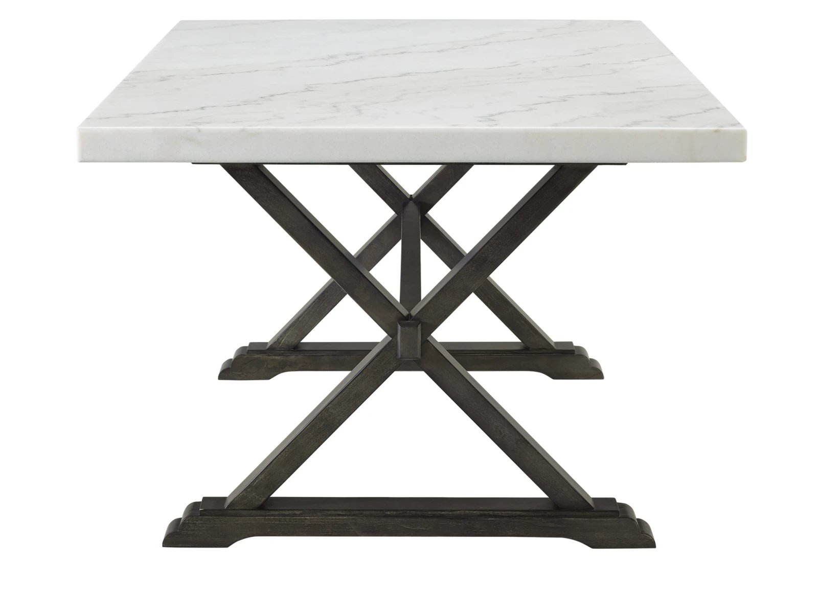 & Free ShippingThe Aliyah Dining Table will look stunning in your home! This rectangular shape dining table features a white, marble table top. The X style base of the table takes the design of this table to the next level. The dark, espresso finish pairs beautifully with the white table top, ensuring this table never goes out of style. Update your dining room today with the look of this transitional, marble dining table!