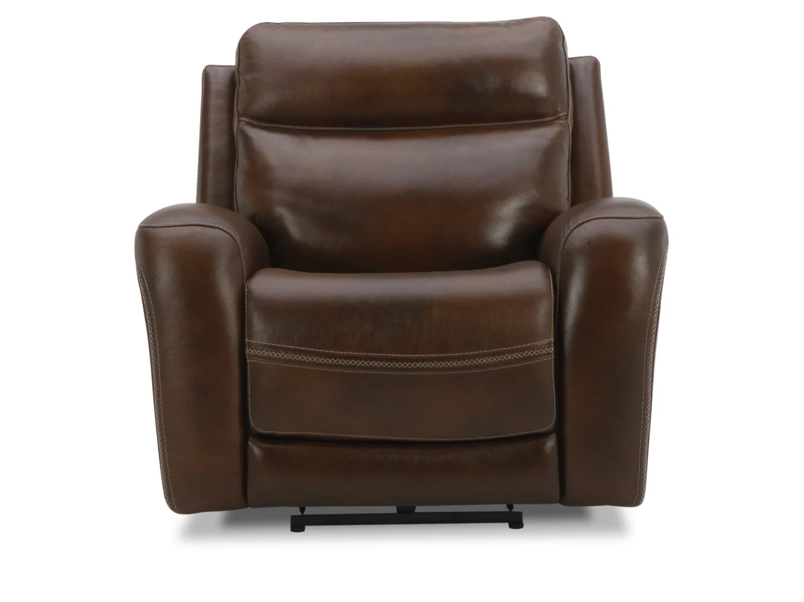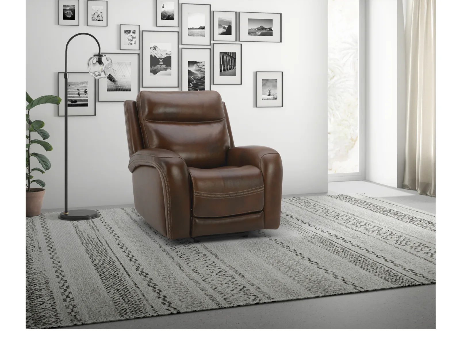 Kick off your shoes and sink into the majestic Amando Leather Power Swivel Recliner. Crafted with Solid Hardwood, Plywood and Laminated Veneer Lumber, this recliner features Semi-Aniline Top Grain Leather with Match in a Cognac finish. PVC Vinyl is matched to the leather and is located on the outside backs and sides, meaning everywhere your body touches is real genuine leather! The Amando recliner offers dual power recline with a power articulating headrest. As comfortable as the Amando recliner is, one cannot overlook the single and cross contrast stitching and the modified bustle back with a French seam that is sure to catch the eye. With today’s technology in mind, USB-A and USB-C charging ports are located on the side of the recliner. With the swivel glide base, you can stay engaged in conversations around the room, without having to strain your neck or leave your seat. A built in stop mechanism is used to protect the wiring during swivel. The Amando Leather Power Swivel Recliner is the definition of when design meets comfort.