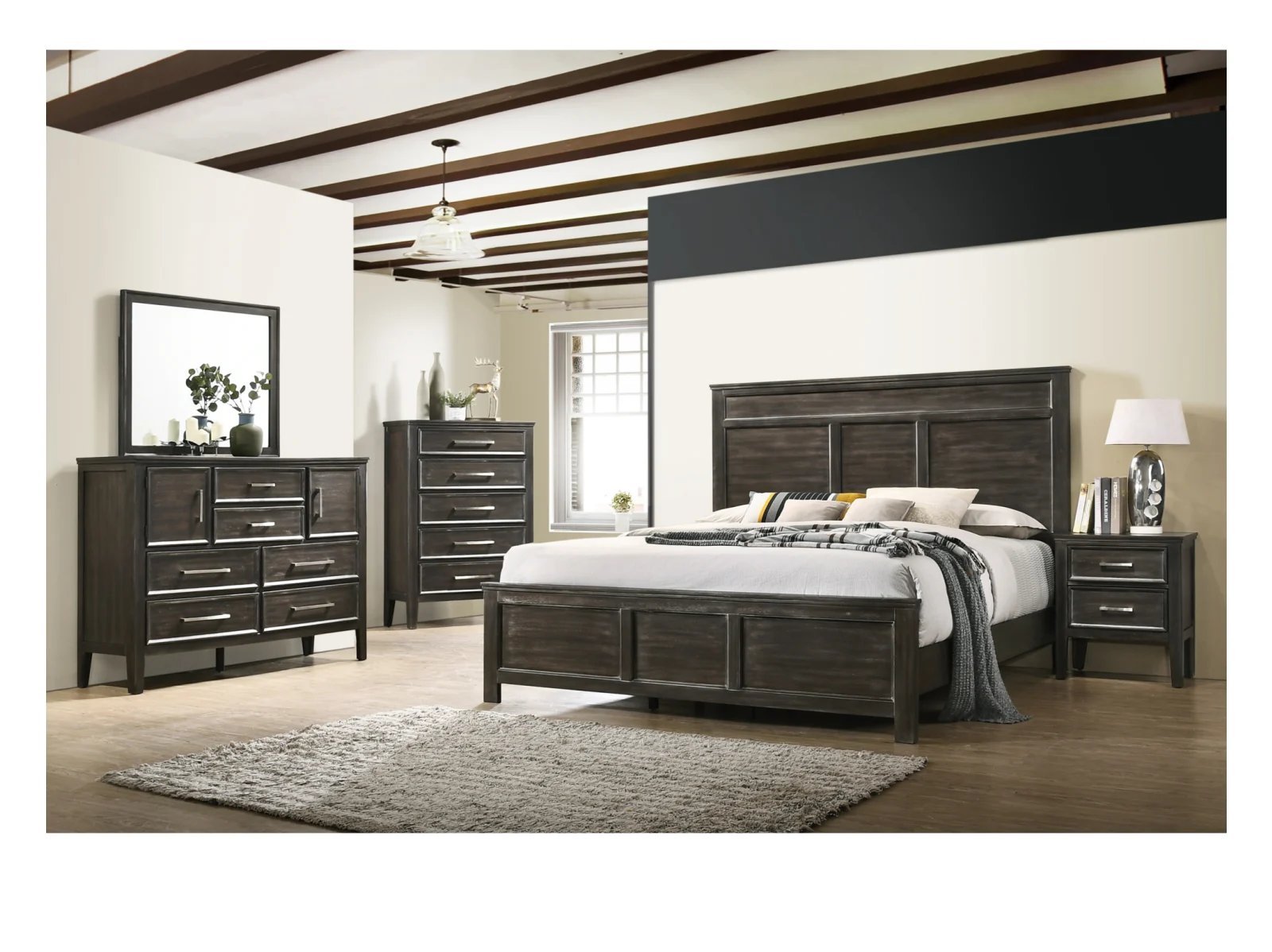 & Free ShippingThe Anamosa bedroom suite is available in a white or nutmeg with brushed steel finish handles that is both transitional and modern. The bed comes in all sizes from twin to king. The high dresser has draws and doors and a available beveled mirror option.