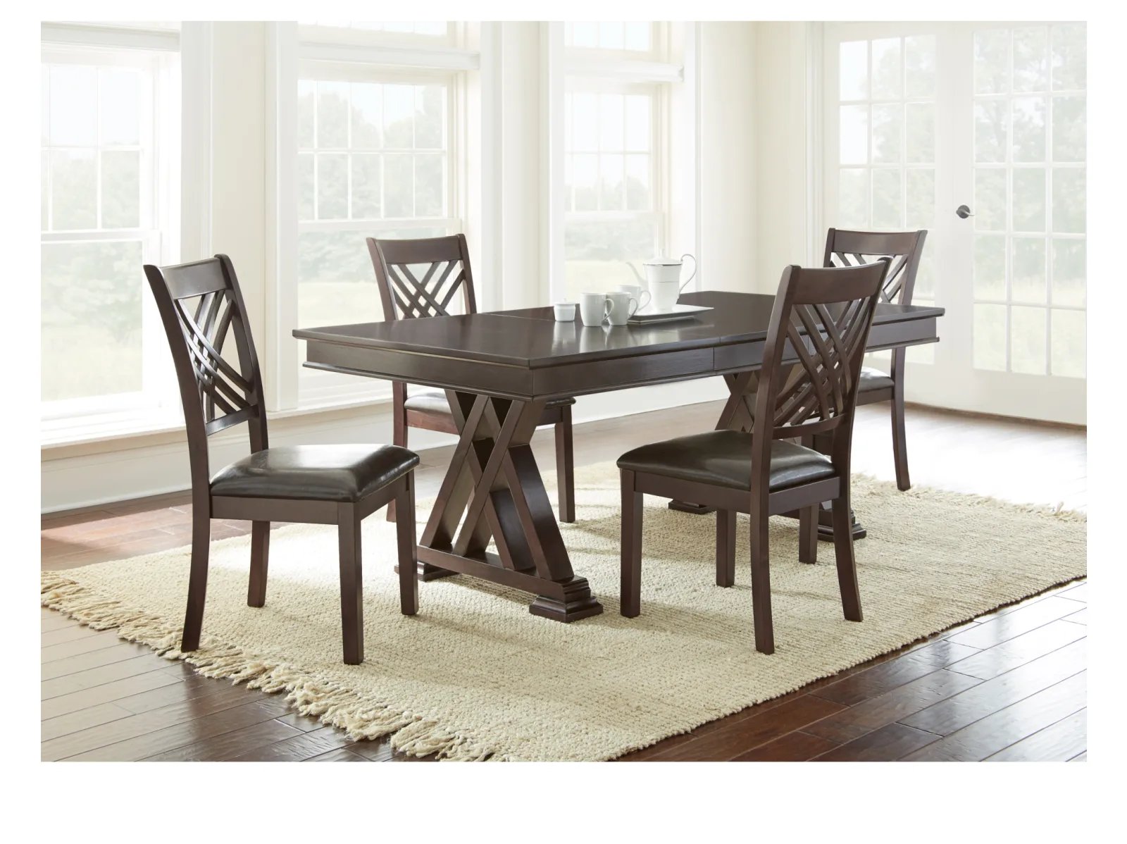 & Free ShippingBold contemporary design in a comfortable dining collection that seats up to eight, that’s Andreas by Steve Silver Company. Stylish “x” back Side Chairs complement the espresso-finished Pedestal Table Base and add a sophisticated element to your dining experience. Upholstered chairs add comfort and Server add storage and serving capabilities to this modern-styled collection.