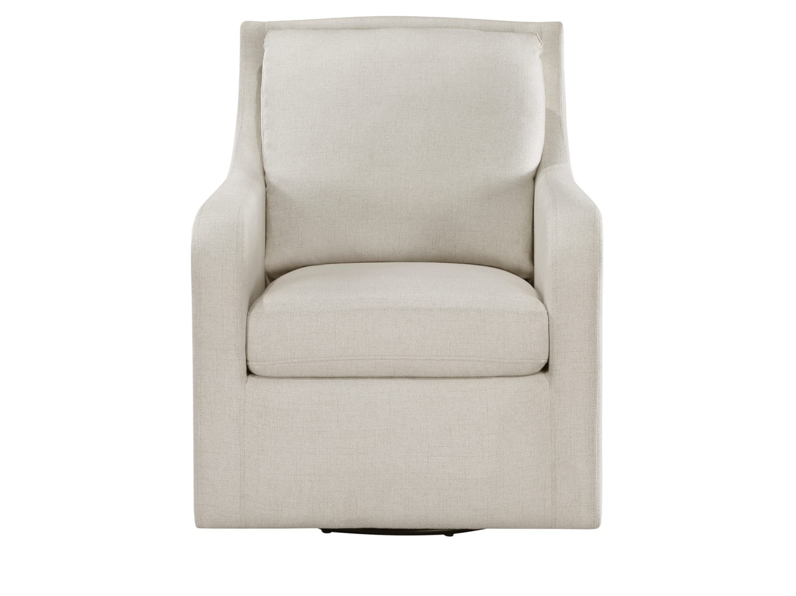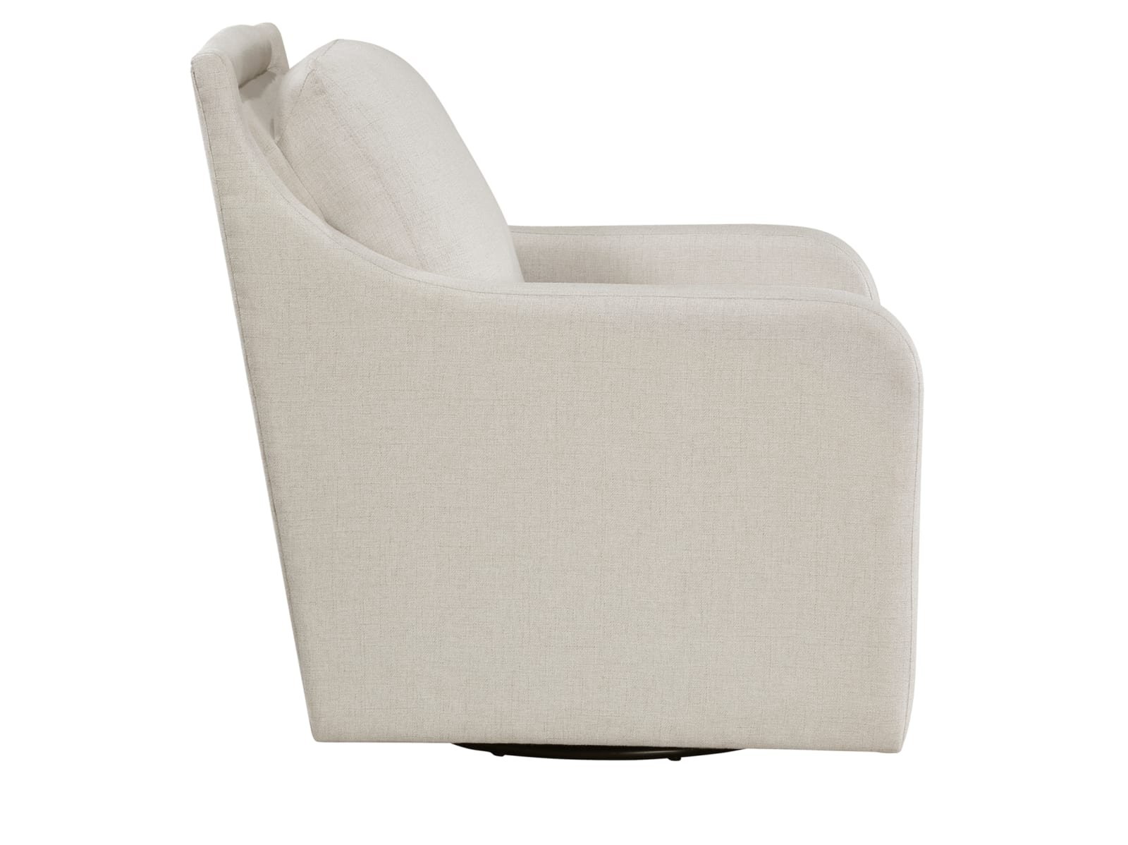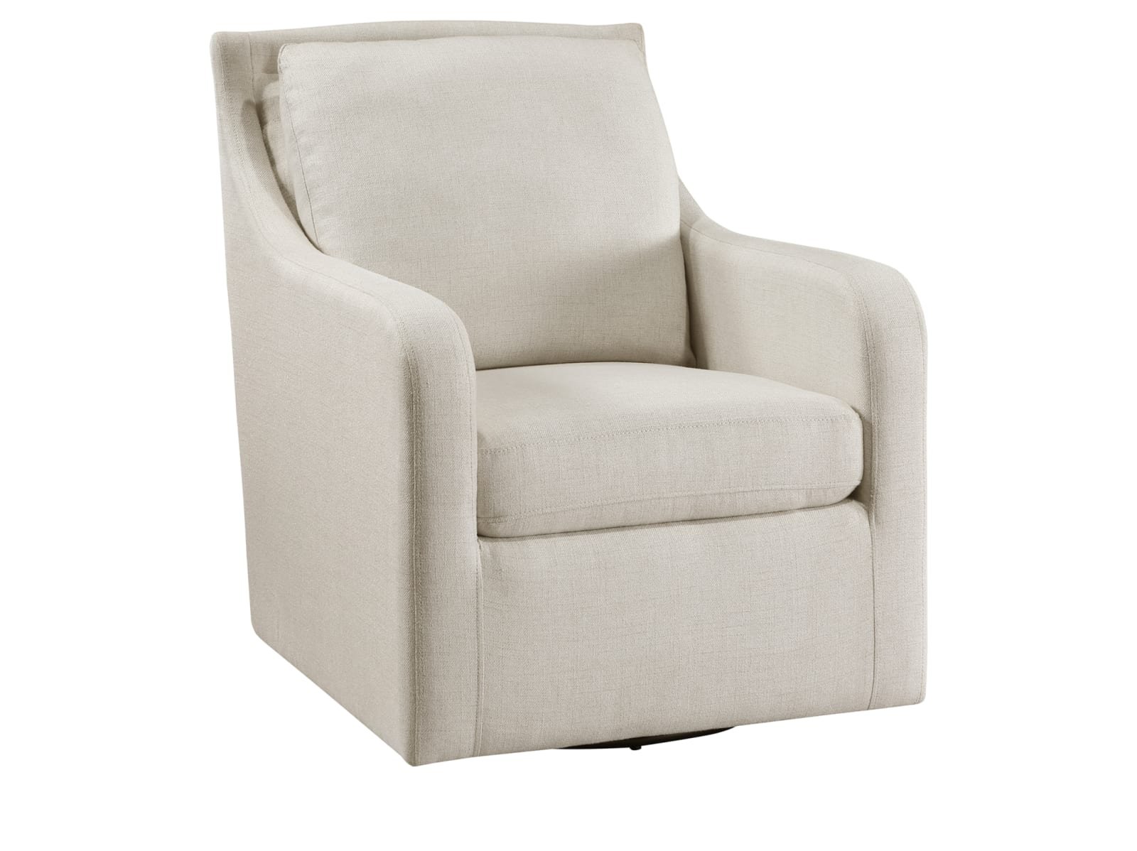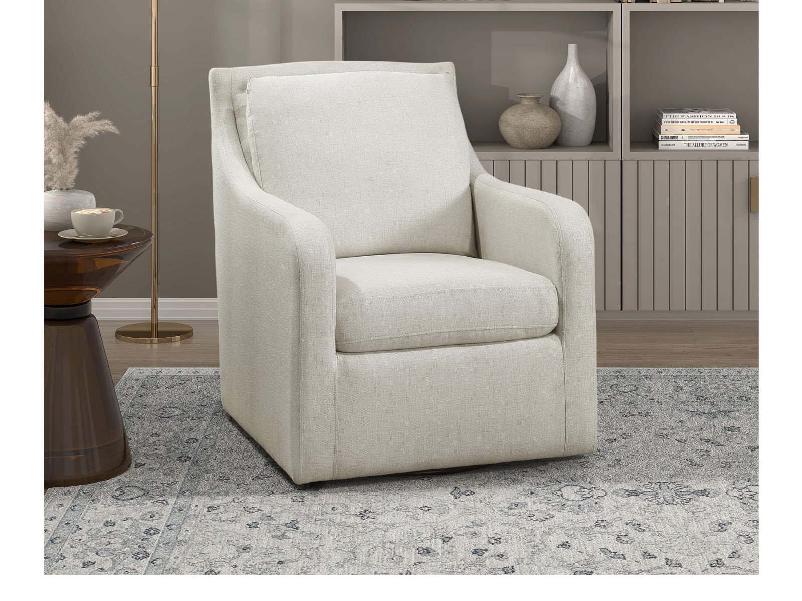 The design of the Ansley Collection features modern lines sensible enough for versatile placement within your home’s décor. Contoured arms define the chair’s profile while a 360-degree swivel base provides full motion as you engage with your surrounding environment. The beige or gray textured fabric that covers the accent chair furthers the decorative versatility of the piece.