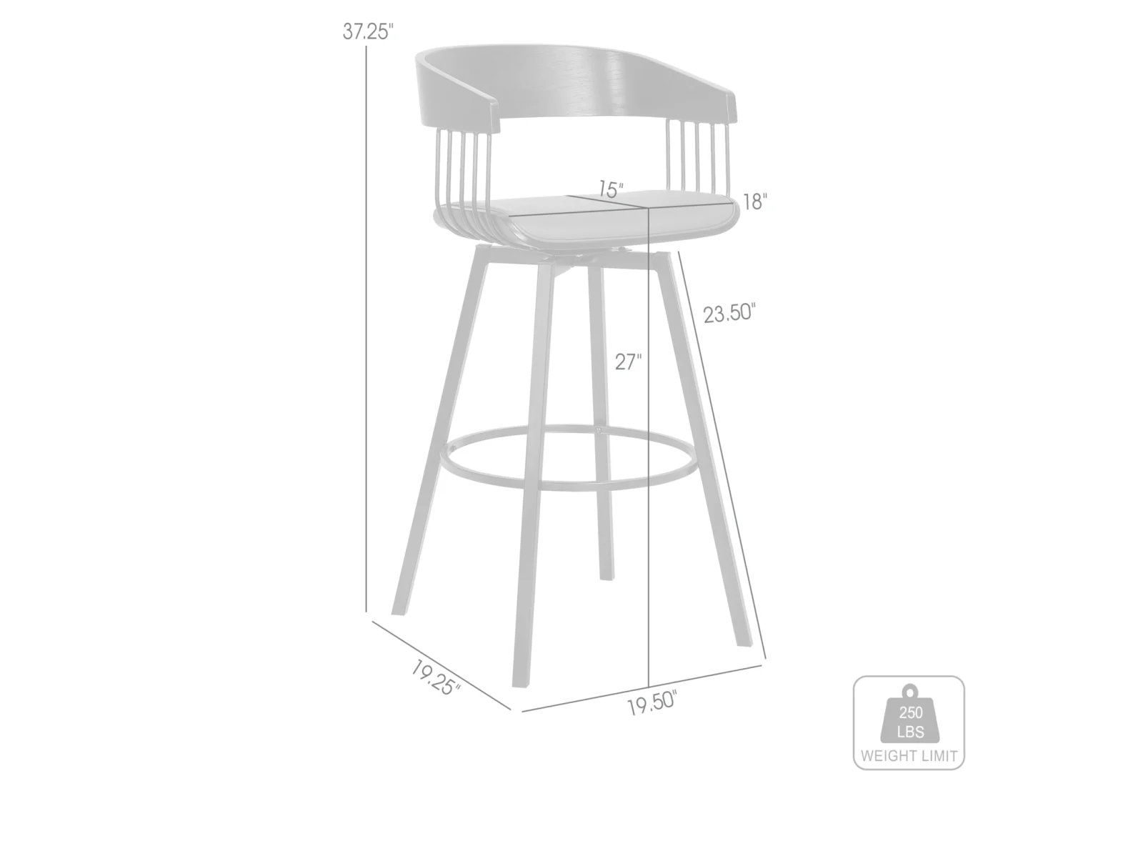 Style meets comfort with the Armen Living Antonio Bar Stool. The Antonio counter stool is a perfect furniture addition to any home or apartment regardless of the design theme. This bar stool features a 360-degree swivel function which increases mobility and allows you or your guests to stay engaged regardless of their place in the room. The sleek, smooth lines featured throughout the body of this chair combined with the look of the soft faux leather upholstery create harmony throughout this piece. The Antonio bar stool is available to you in two heights 27″ and 31″ which makes it easy to use at your kitchen island, peninsula counter, or home bar.