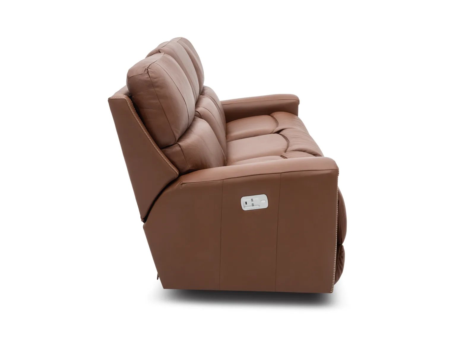 The Apollo Power Reclining Sofa takes modern-day lounging to new heights! This luxuriant sofa boasts a durable hardwood and engineered wood frame, and it invites you to sink back and relax atop its delightful bucket chaise seats filled with plush, blown-fiber cushioning. Along with its sophisticated modern look, the Apollo also features power reclining mechanisms and power headrests, and it all comes together in ravishing leather upholstery that’s available in two versatile colors: Slate grey and Caramel brown. Level up your lounging with the Apollo Power Reclining Sofa today.