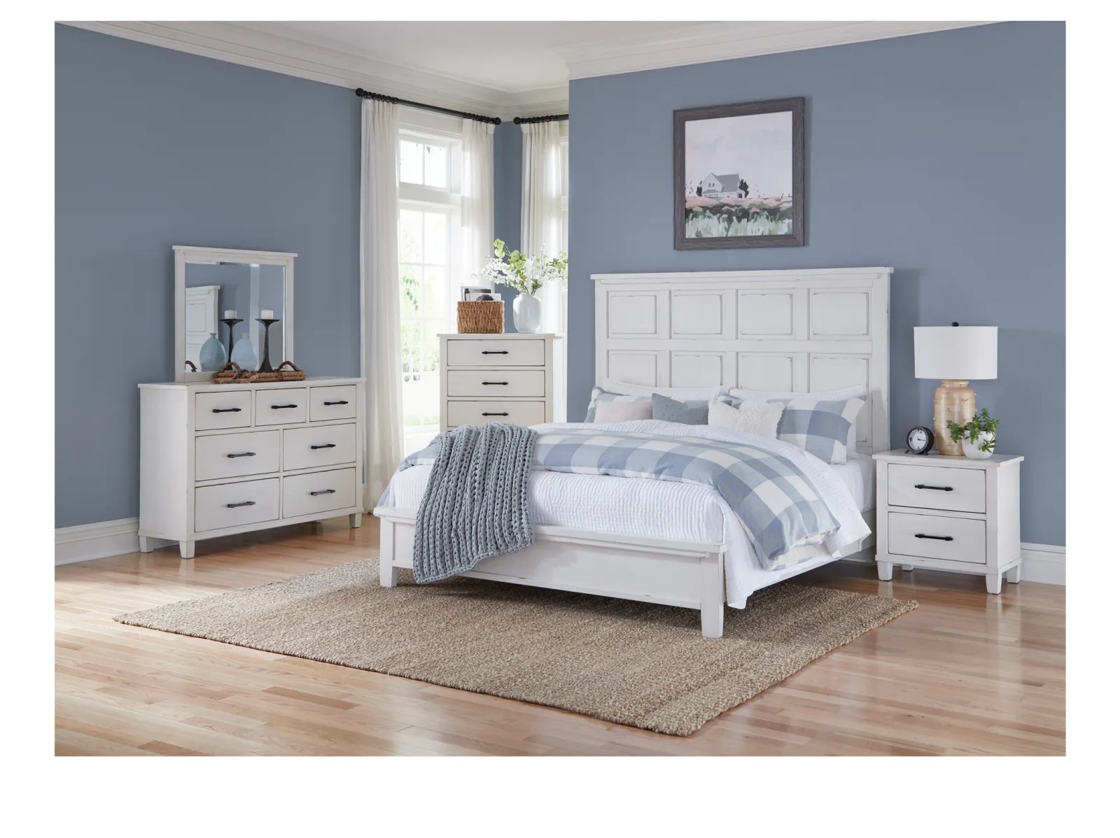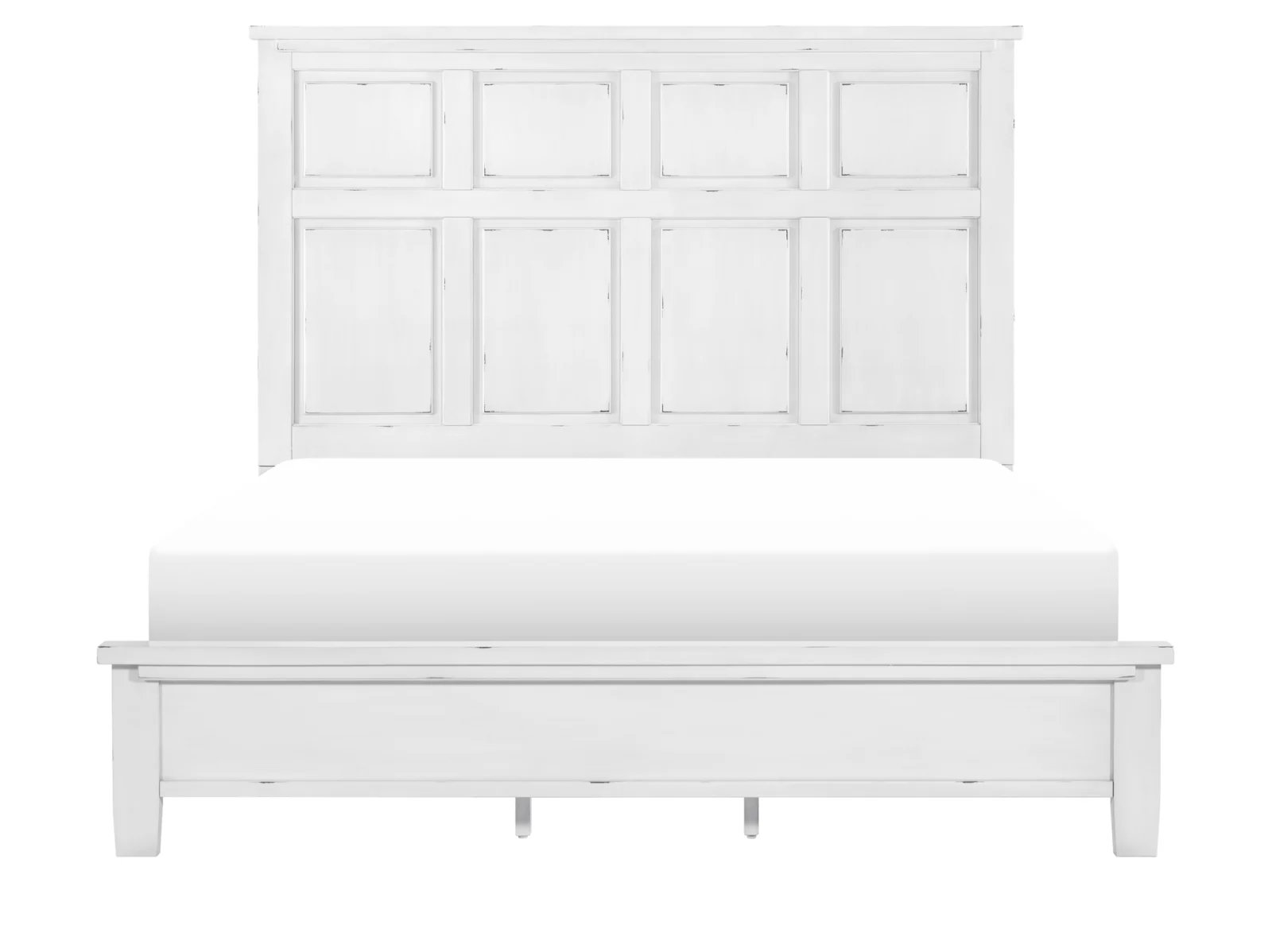 & Free ShippingWith a design that looks like it was pulled out of a country cottage, the Aquone Collection is a timeless addition to your bedroom’s décor. An antique white rub-through finish is utilized to create an airy aesthetic to the transitional lines that define the bed’s profile. The panel headboard of the low-profile bed features picture frame molding completing the transitional look.