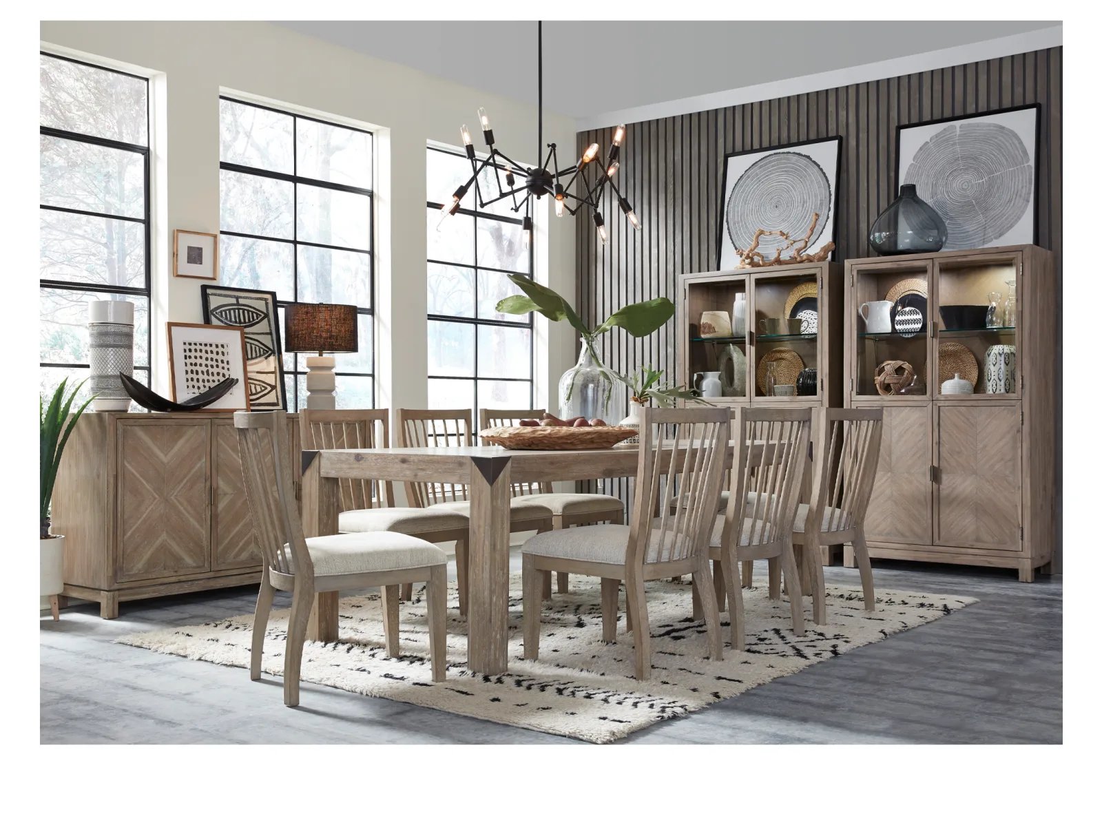 & Free ShippingIndustrial style gets a light and airy vibe with the soft organic color palette of the Arcata Dining Collection, featuring a tactile Cerused Khaki finish with a subtle gray wash on exotic, elegant Acacia Solids and Veneers. Adding character to this collection are exquisite book-matched veneers in an X-motif on case fronts, metal ferrules on the base of the round dining table and metal brackets on the edges of the rectangular Parson’s leg Dining Table and the Parson’s Leg Bench, all in an Industrial Bronze finish. The Display Cabinet combines the book-matched pattern at the bottom of the two doors with glass on the top of each door. Chair choices in the collection include a modified Windsor chair with an upholstered seat and upholstered host and Dining Chairs. Create an uplifting setting in soothing natural colors and textures for memorable meals with the Arcata Collection.