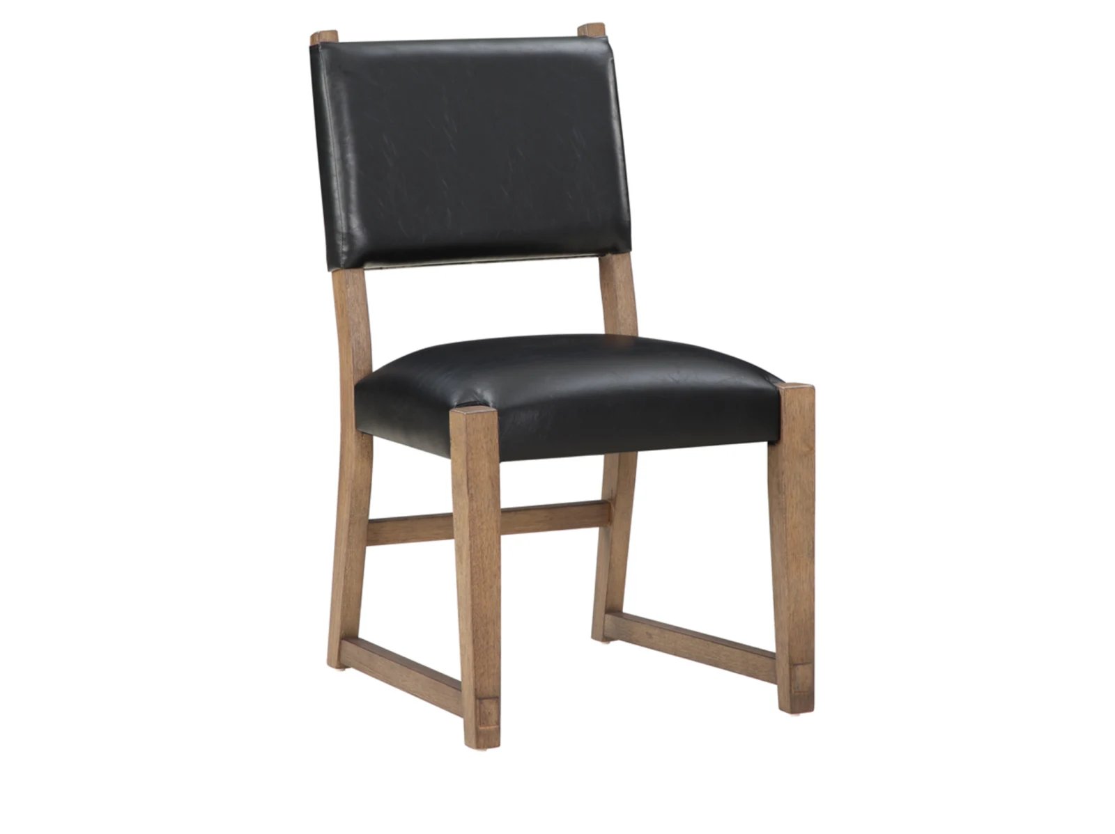 & Free ShippingRustic styling and soft seating in a chair comfortable in a dining, guest or office setting. The Arkdale Dining Chair features a beautiful easy-care black leatherette seat and back accented with a hand-stained deep driftwood finished solid wood frame. A semi-sled base and wood score distressing add elements of industrial design and primitive chic to fit casually sophisticated interiors.