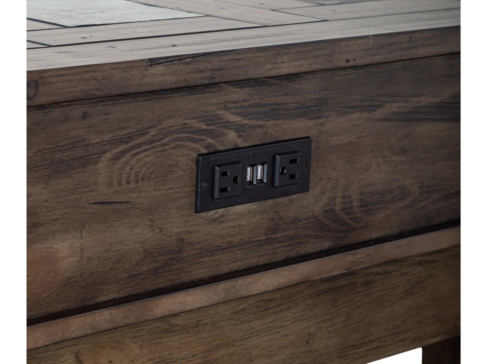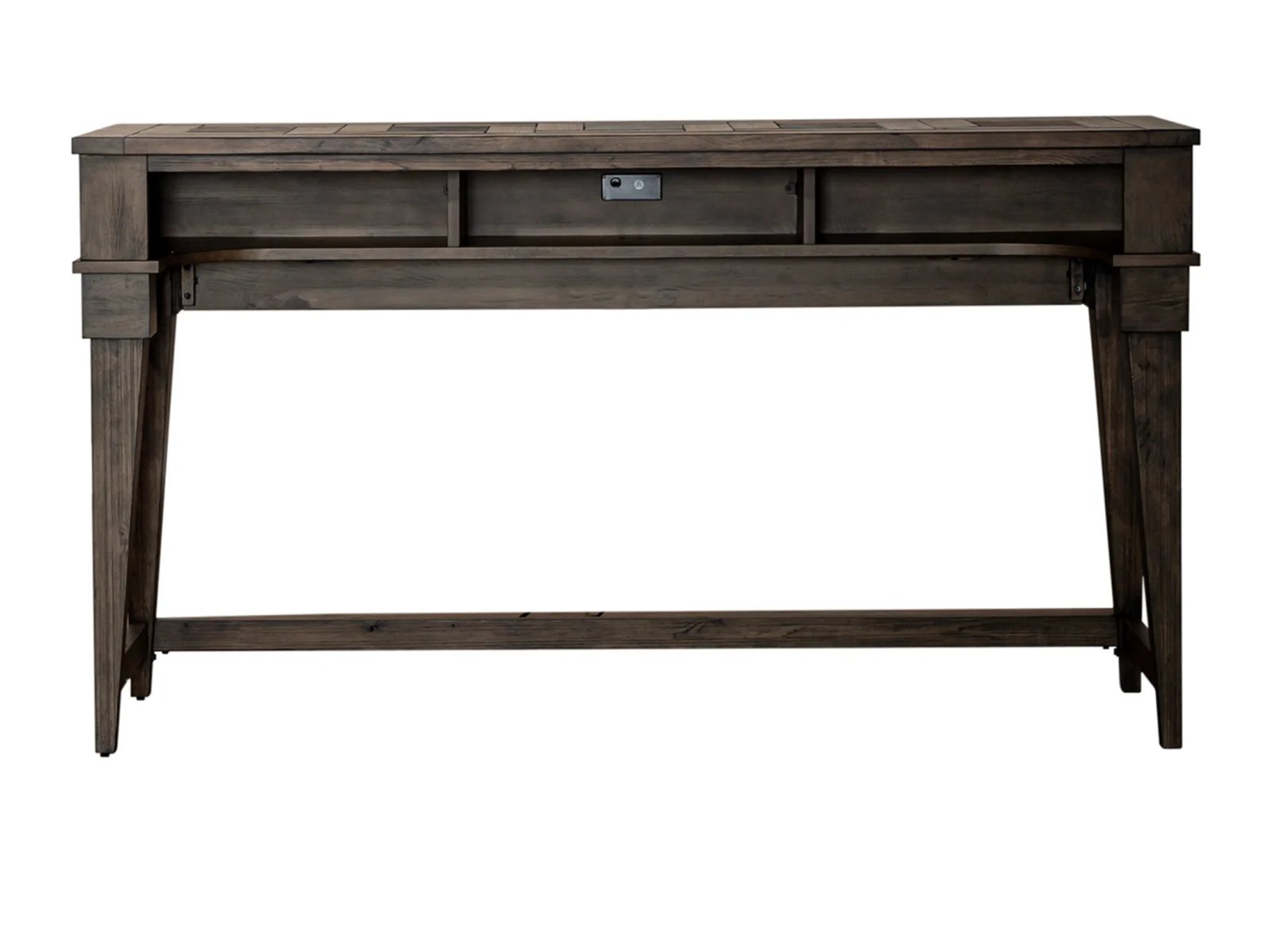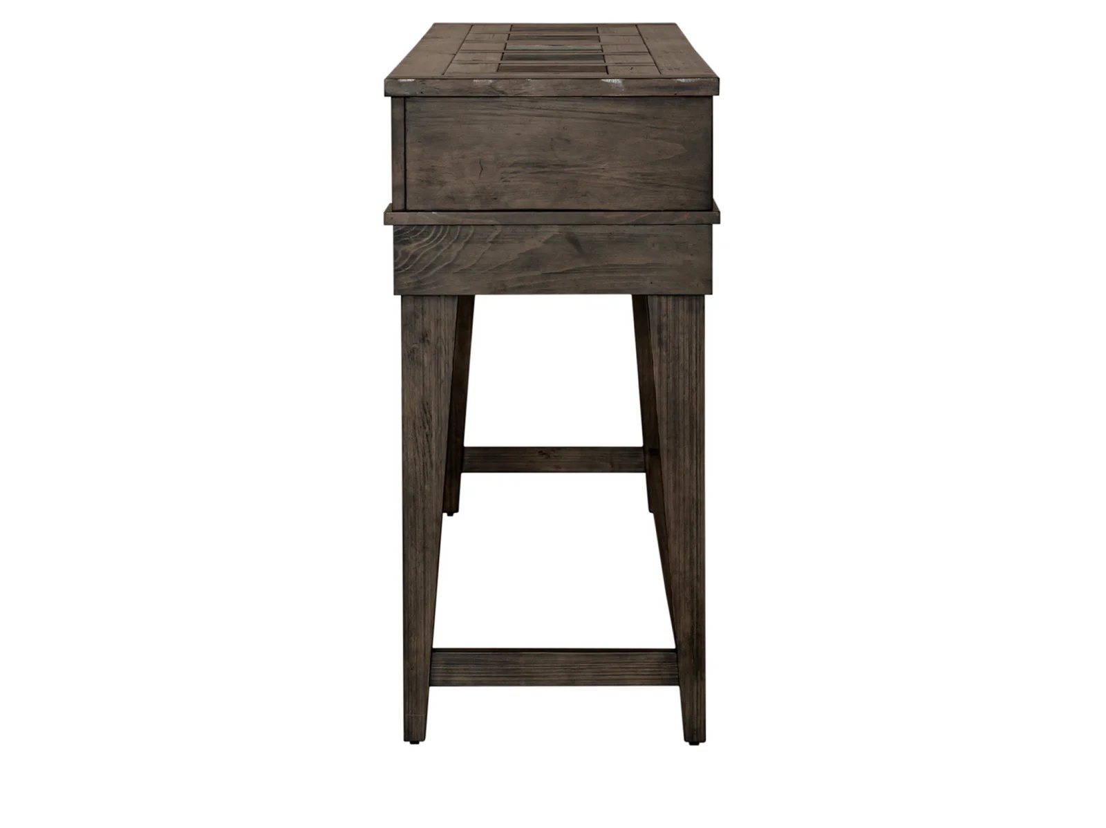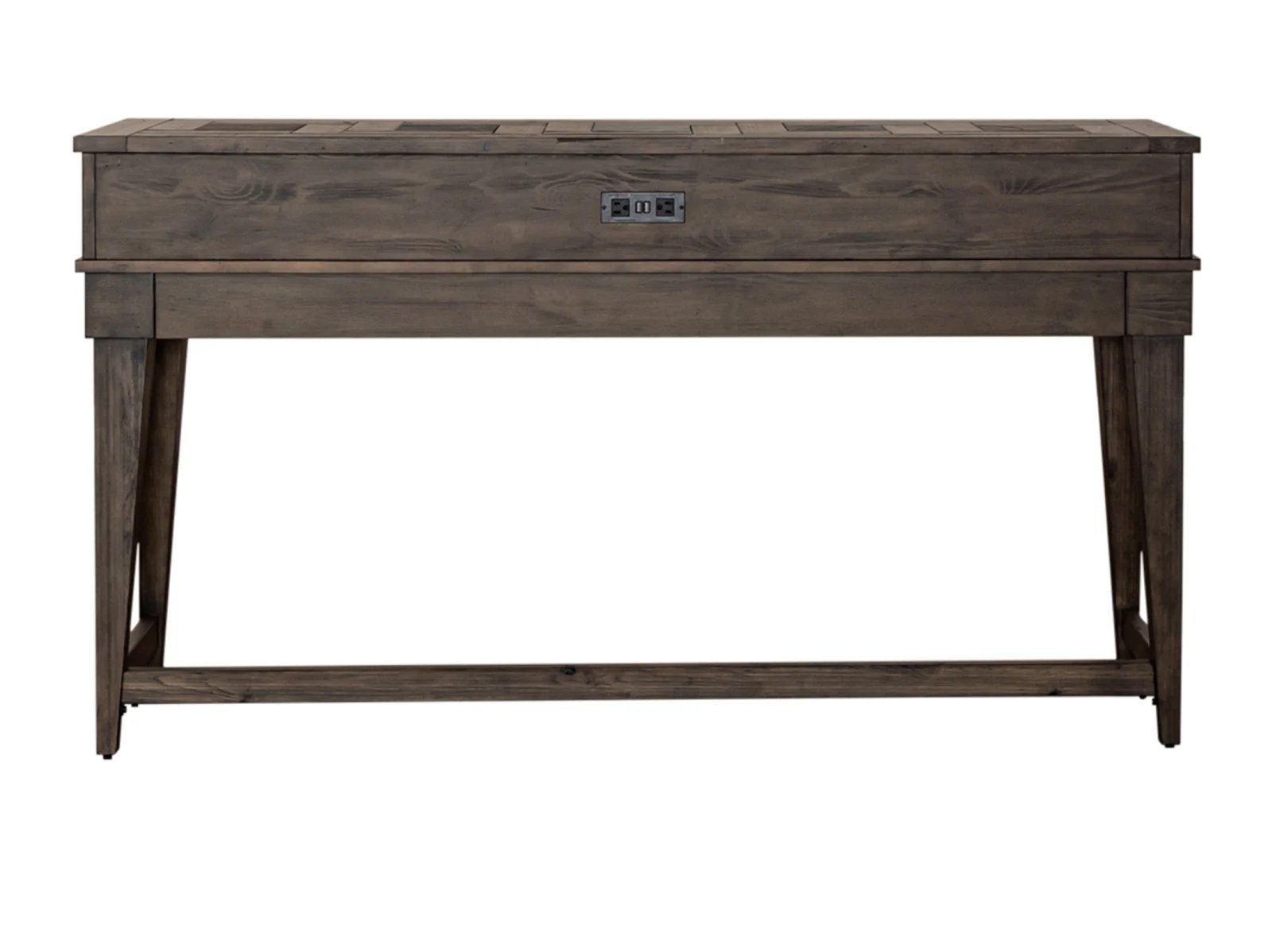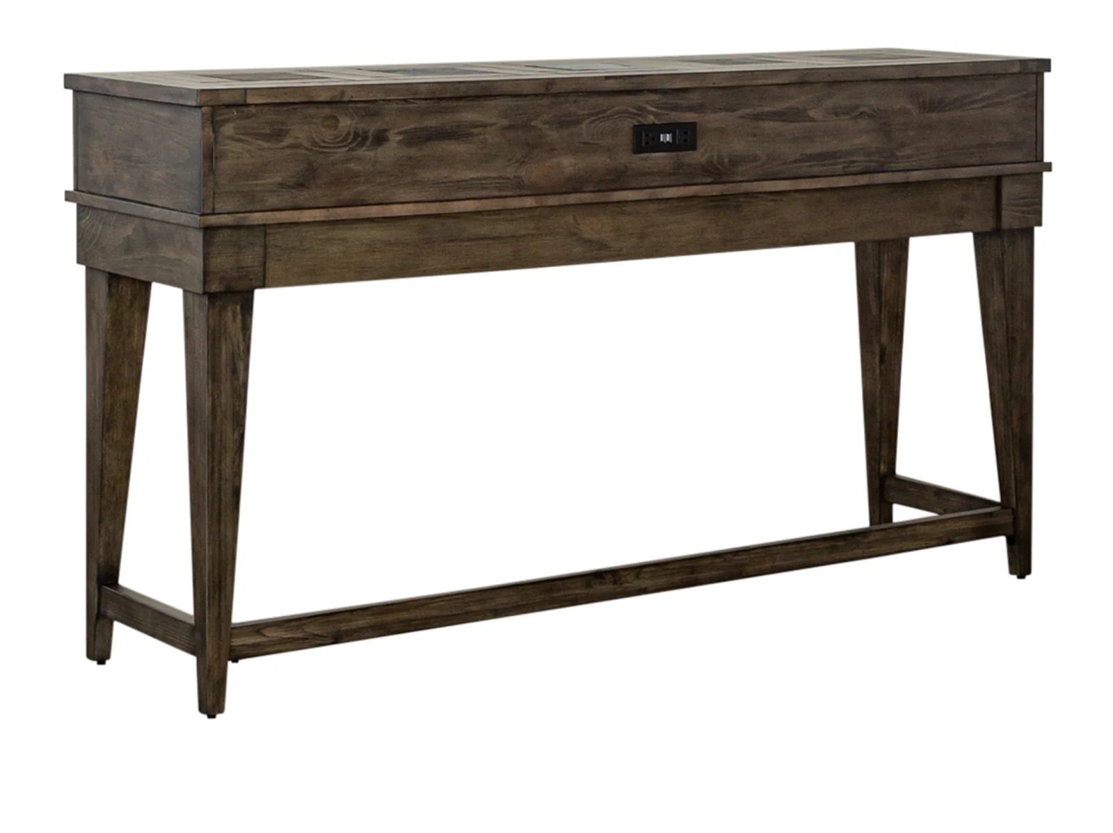 & Free ShippingIf you enjoy rustic the Armonk console bar sofa table is for you. Finished in a weathered stone finish with slate tile inserts in a basket weave design on top. Crafted of solid reclaimed pine and pine veneers. Another amazing feature is it has two power outlets and two USB ports convenient for all your electronic devices. Can be placed anywhere in your home, from the kitchen to a spot behind the sofa.