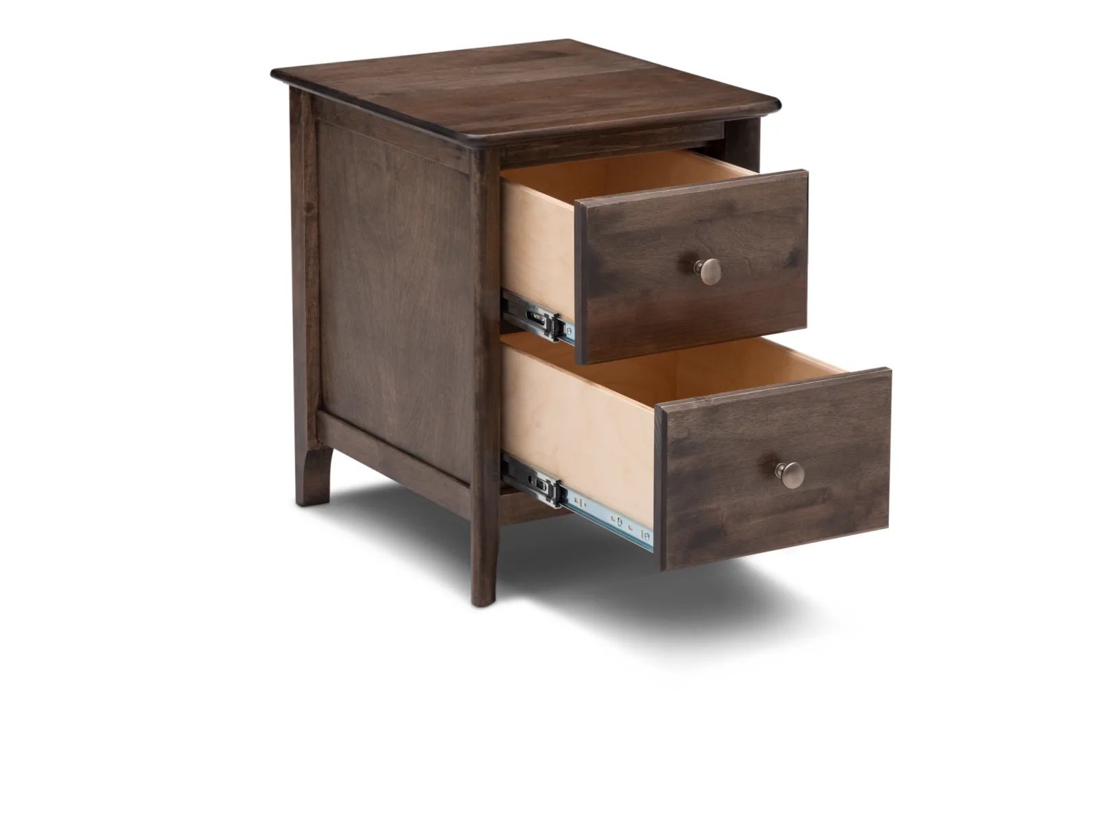 The Arrowhead 2-Drawer Nightstand combines charming rustic design with modern functionality for a unique addition to your bedside. Built from solid birch wood and protected by a catalyzed lacquer finish, this small nightstand features two spacious drawers with English dovetail construction and full-extension guides for reliable, easy storage. Metal pull hardware adds a glimmering final touch, making storage as stylish as it is simple. Complete your bedroom with the Arrowhead 2-Drawer Nightstand- a stylish and practical piece designed to keep your essentials organized and always within arm’s reach.