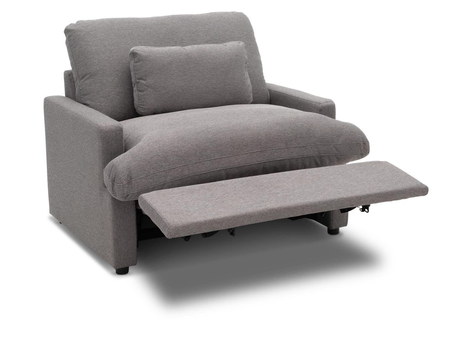 & Free ShippingIntroducing the Artemis Power Recliner, your new favorite spot to unwind. This chair boasts a sturdy hardwood frame and is upholstered in a versatile grey performance fabric that looks great anywhere. The Artemis’s smooth power reclining mechanism allows you to lay back and relax, and its low-lined backrest and pillow-like reversible cushions perfect its impressively comfortable seating experience.