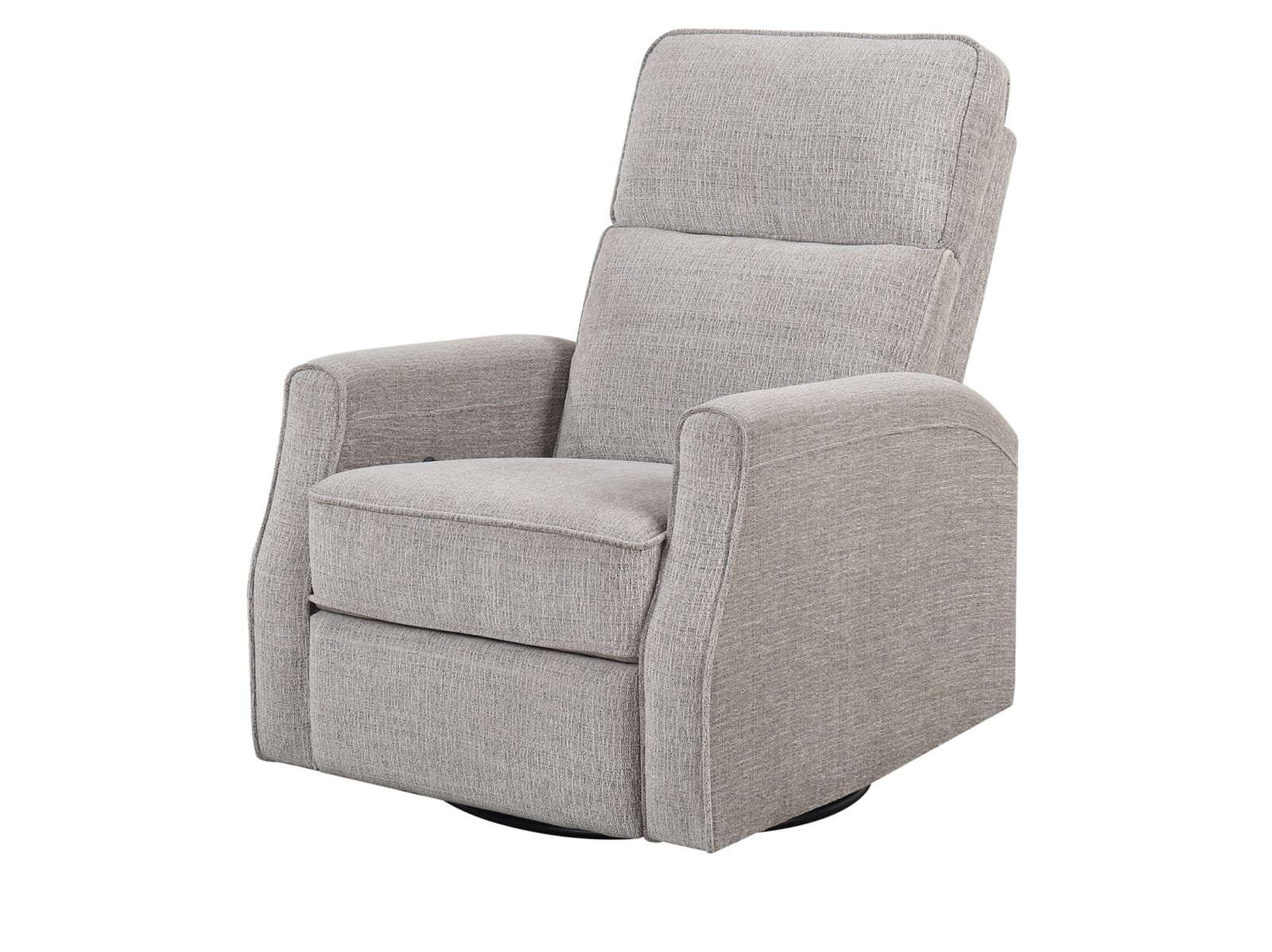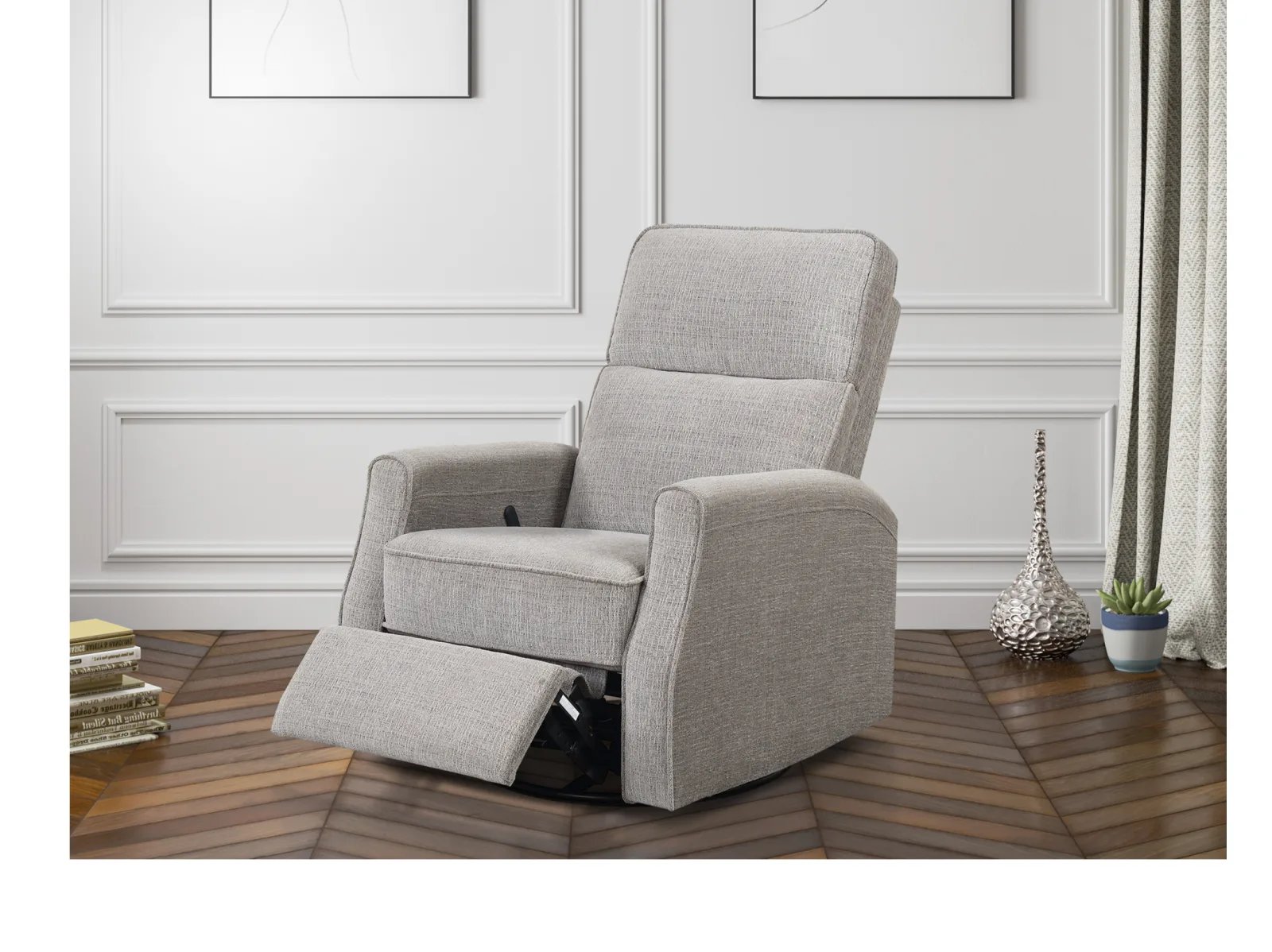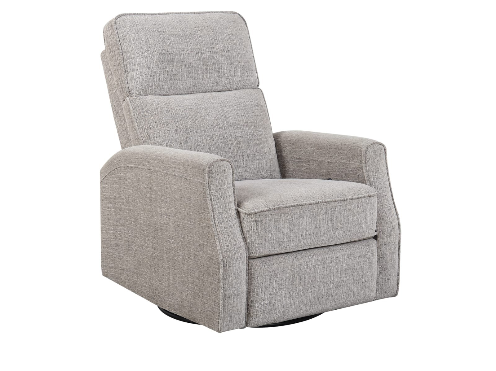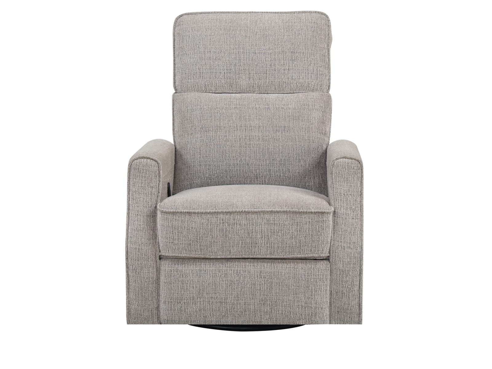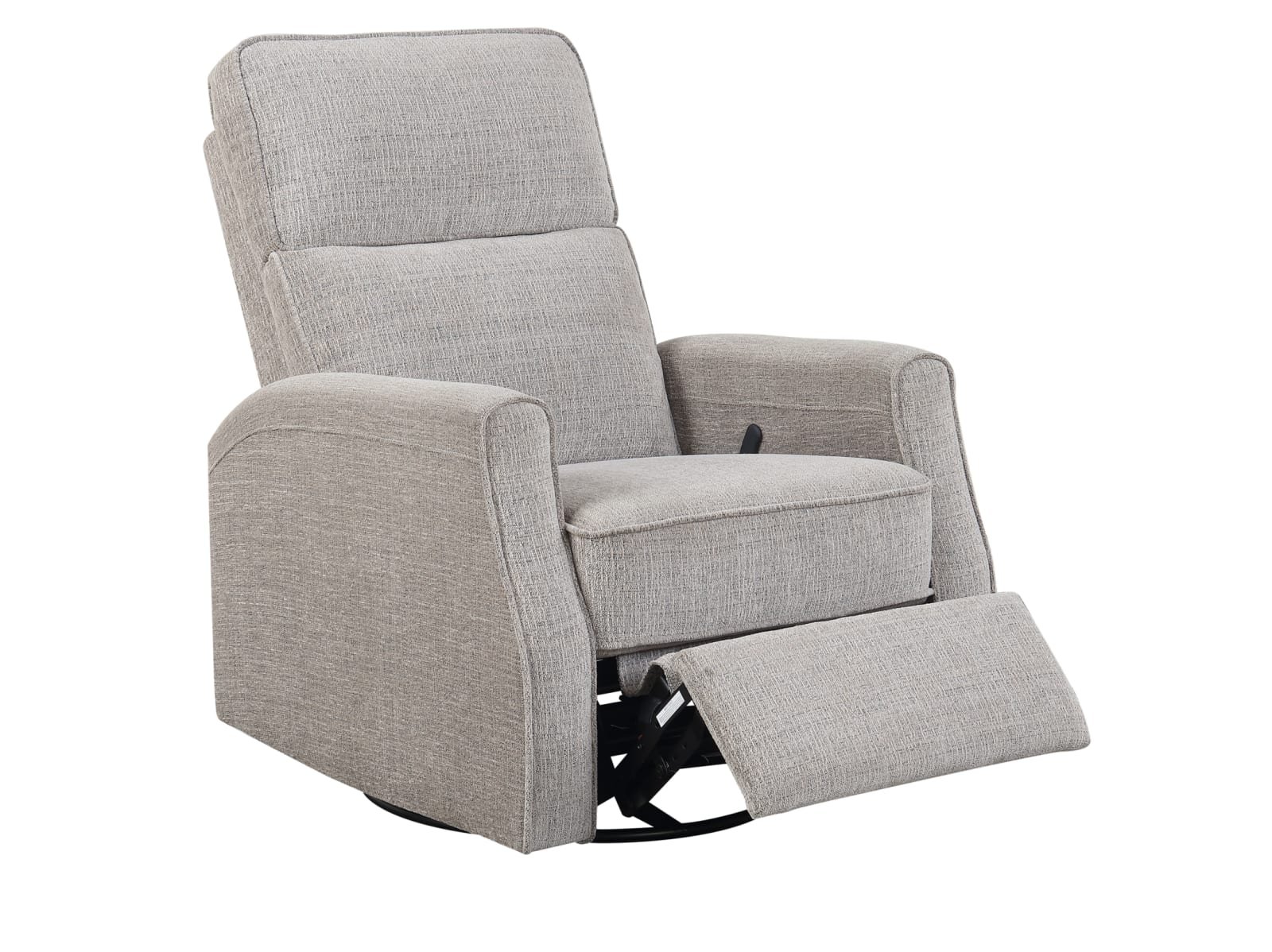 & Free ShippingThe Arwin Swivel Gliding Recliner from Emerald Home has a narrow profile for the perfect fit in smaller spaces. Features rounded track arms, padded back and head cushion, and convenient inner recline lever to provide ultimate comfort and added style.