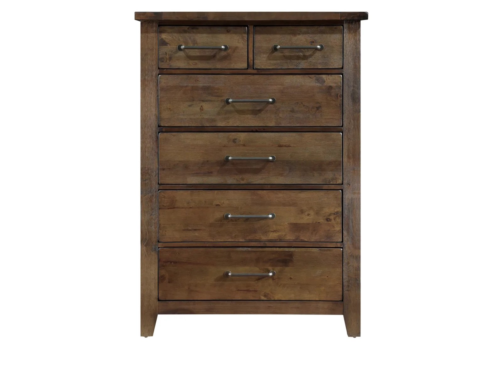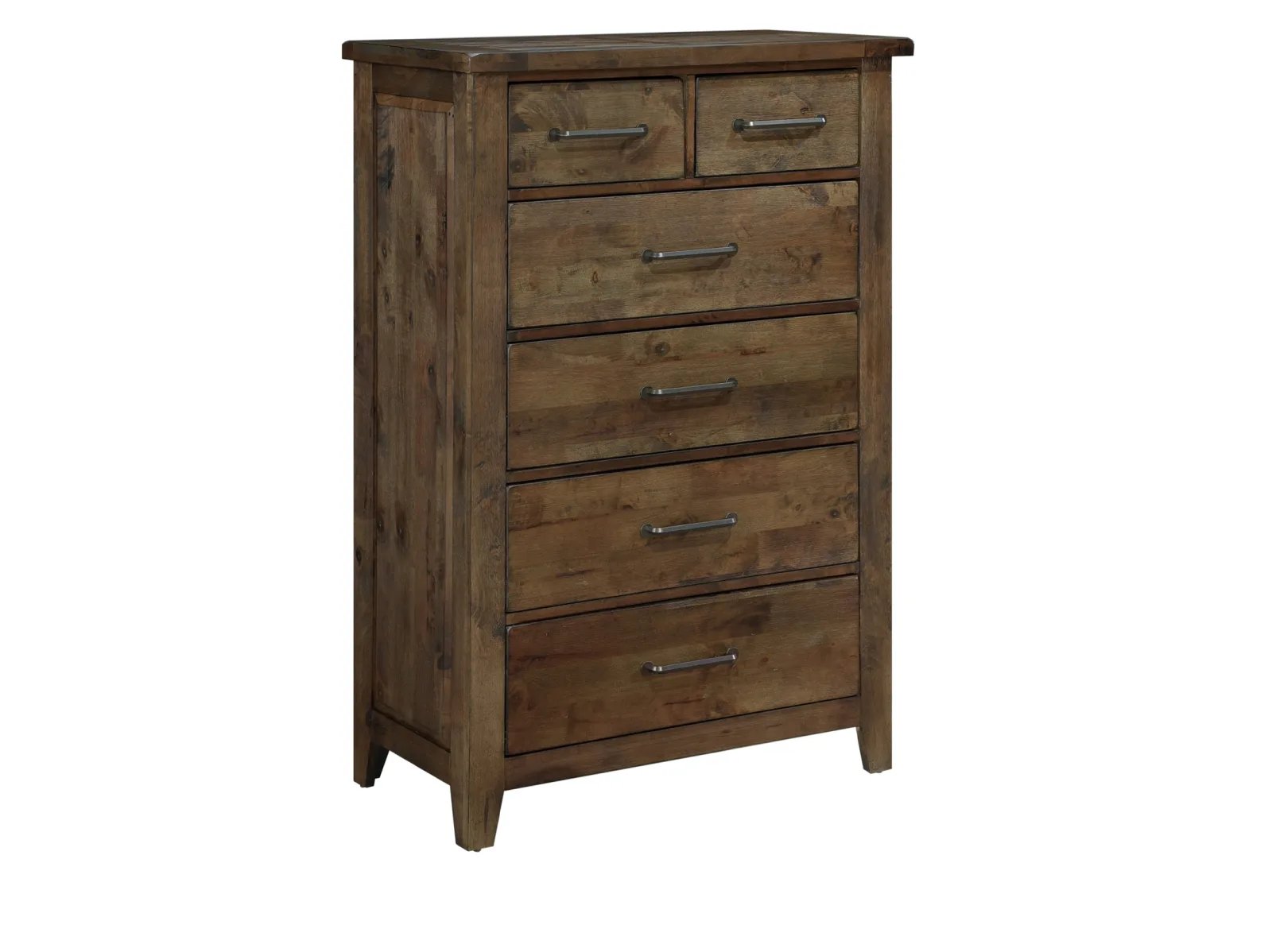 Classic transitional design serves as a base for the natural qualities of the solid wood utilized to create the rustic look of the Ashden Chest. Metal hardware furthers the authentic rustic look of the chest while a burnished finish serves to highlight the solid wood grain while allowing each plank to serve as a unique accent to the overall design.