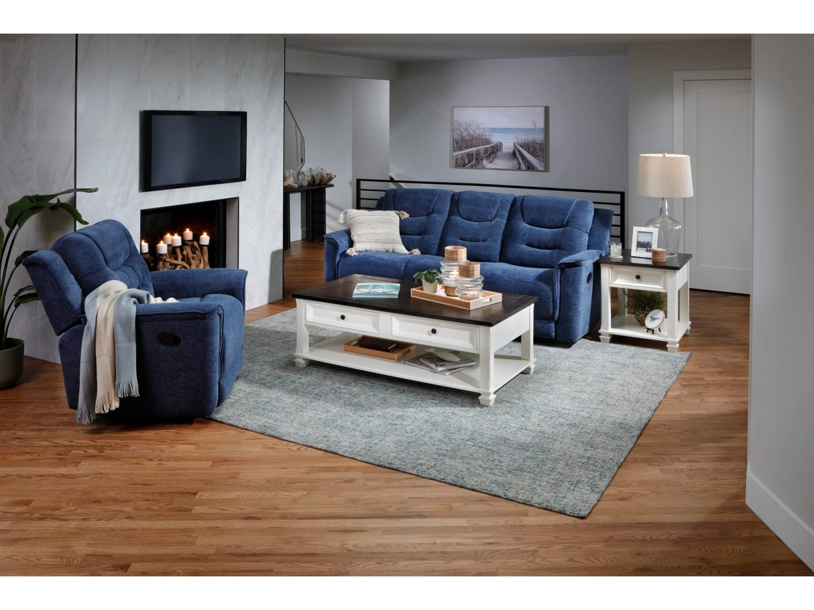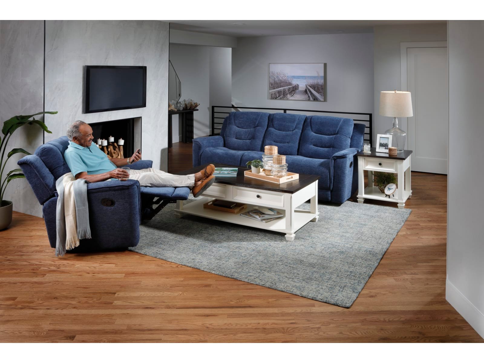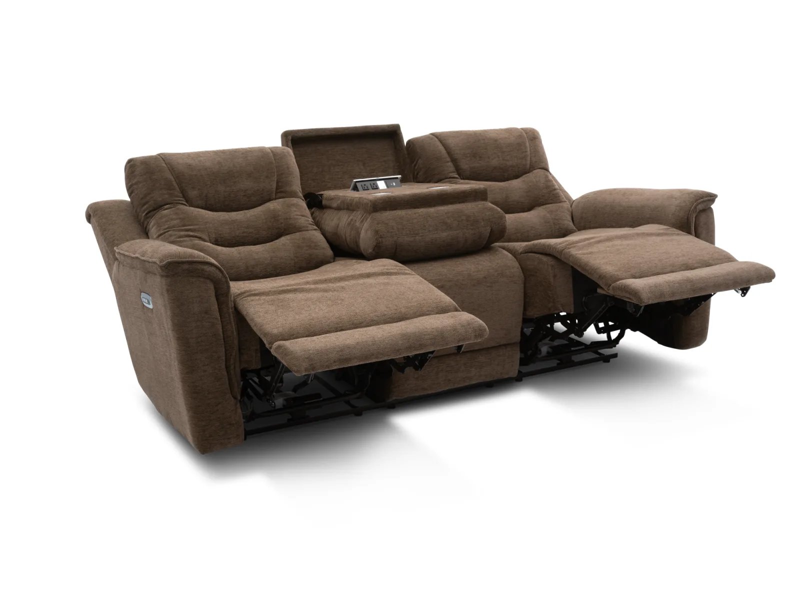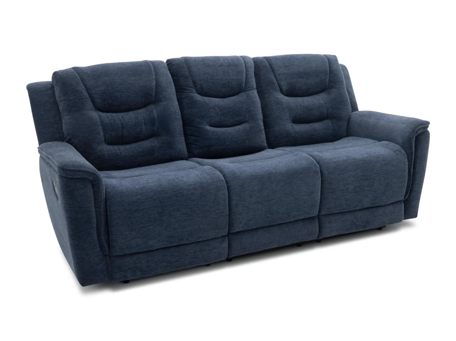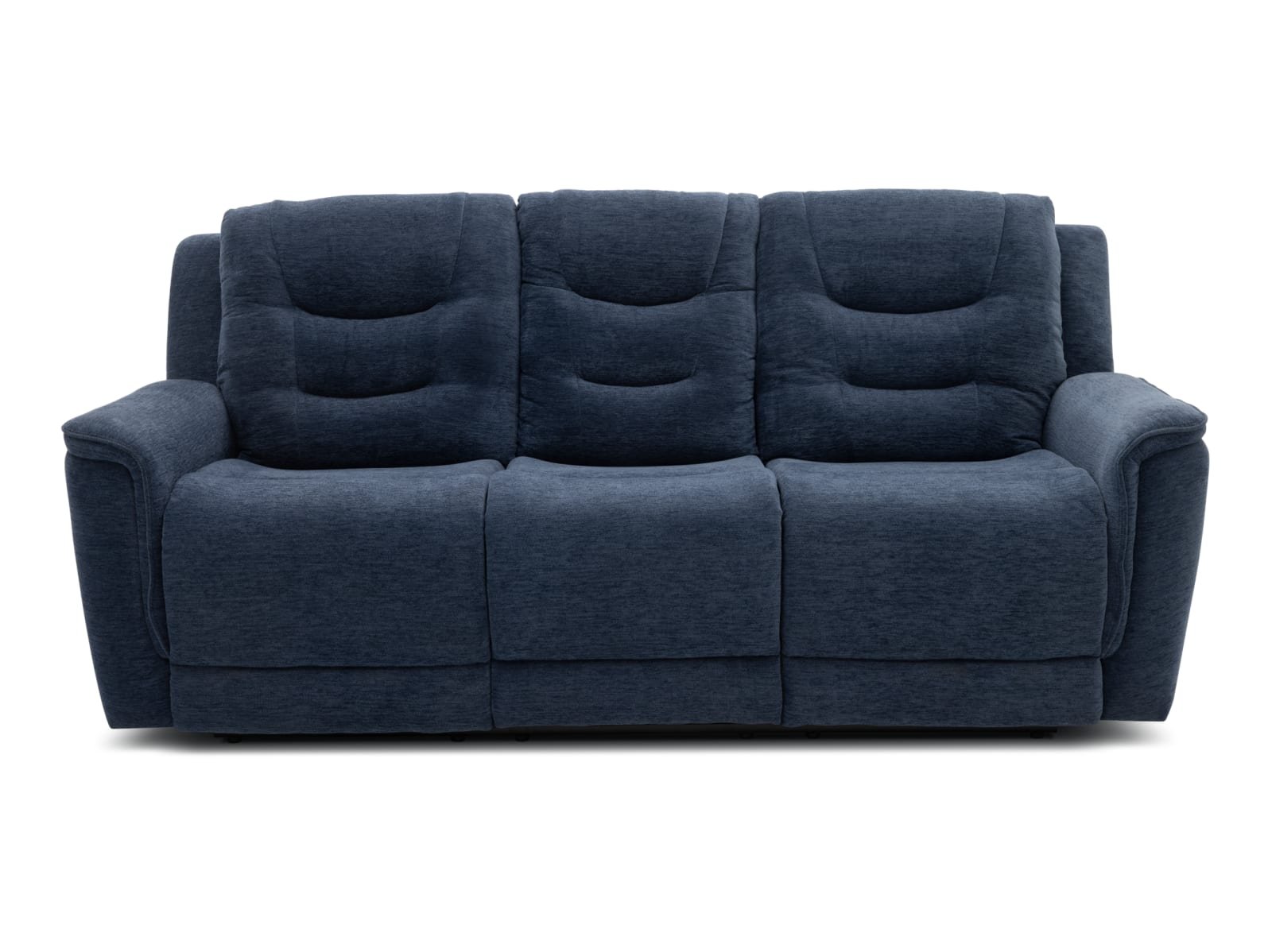 Experience contemporary comfort and personalized relaxation with the Astoria Reclining Sofa, available as a manual recliner or as a power recliner with power headrests. Plush attached cushions and pillow top arms provide exceptional support, while the soft, easy-care upholstery in your choice of blue or bronze adds a modern touch to any living space. The Astoria also features a convenient drop down tray equipped with chargers and cupholders, making it perfect for gatherings or movie nights. Enjoy style and functionality designed for today’s busy households.
