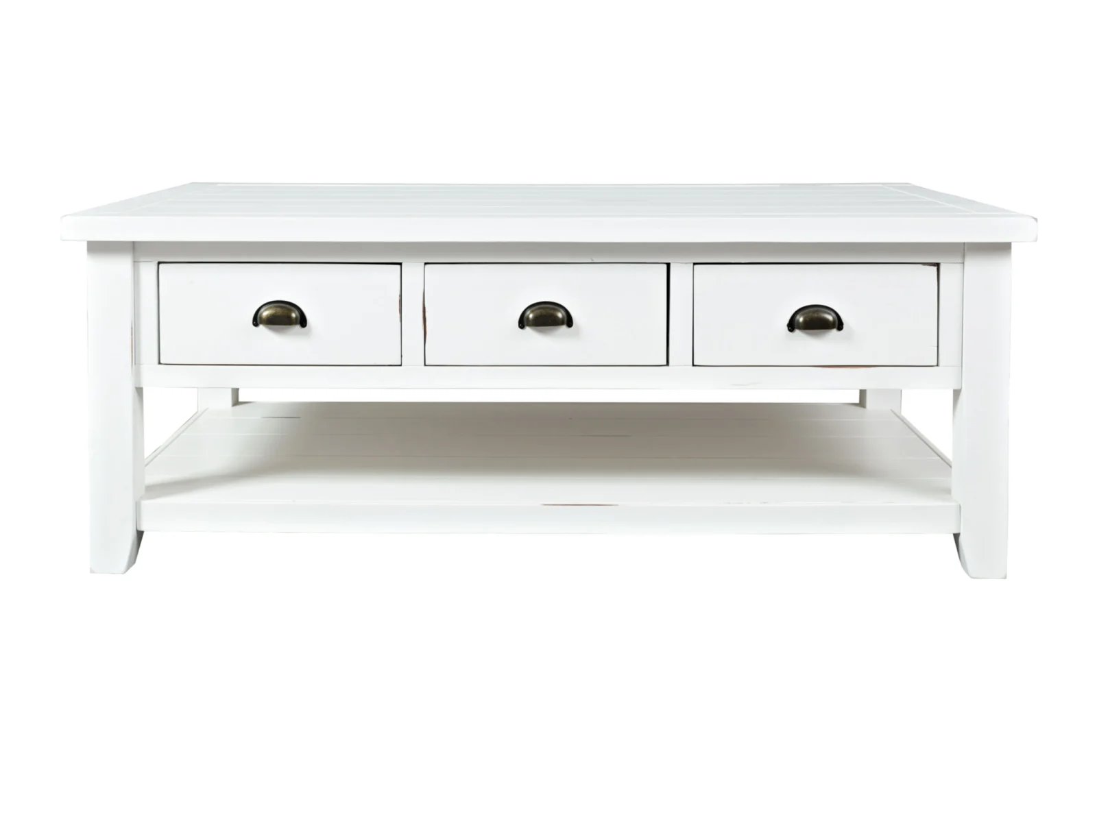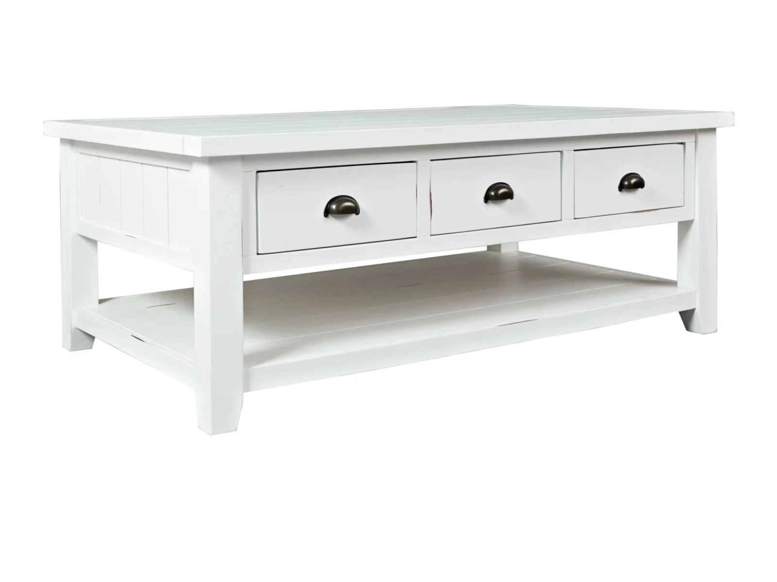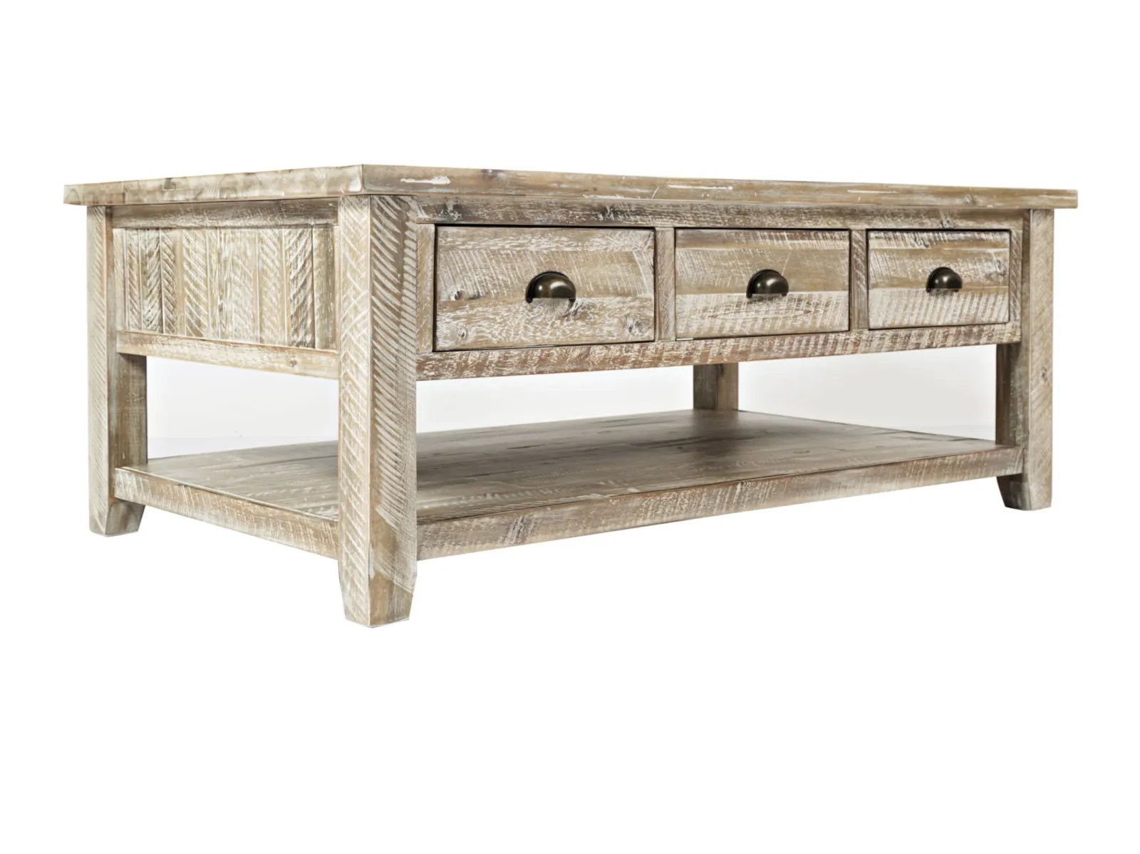 & Free ShippingThe Atticus Collection has been carefully hewn to showcase the rich character of its Solid Hardwood construction. Each piece features entirely unique distressing and personality- bringing vibrant accent pieces to any room in the home. This coffee table features three drawers, a shelf, and casters.