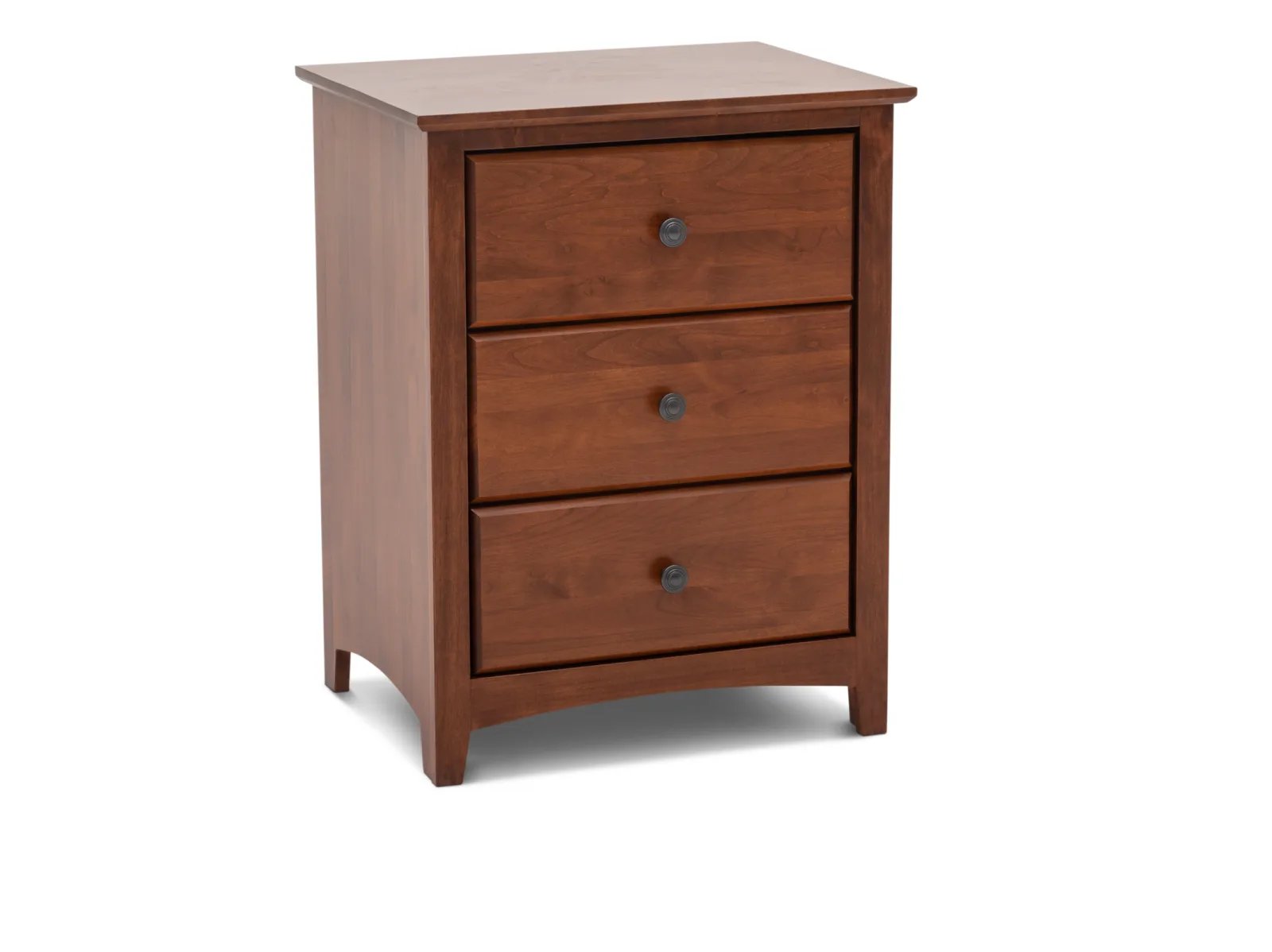 & Free ShippingBoasting durable solid wood construction, the Atwood Nightstand is deceptively simple and effortlessly sophisticated. This captivating nightstand offers a timeless Shaker silhouette crafted from hearty alder wood, and it’s finished with a resilient catalyzed conversion varnish in a warm Antique Cherry color that looks great in any setting. For storage, the Atwood is outfitted with three full-extension drawers with English dovetail corners, and each is topped with a graphite-colored pull knob to complete the look.
