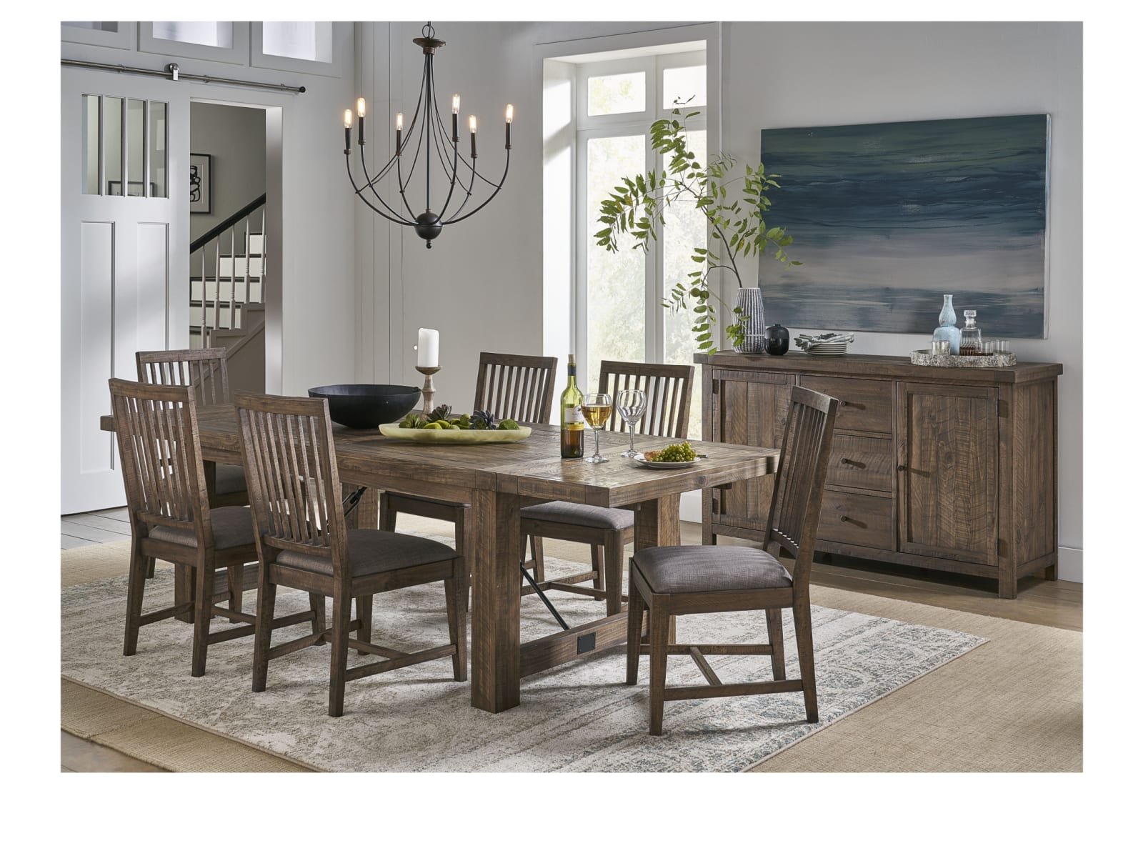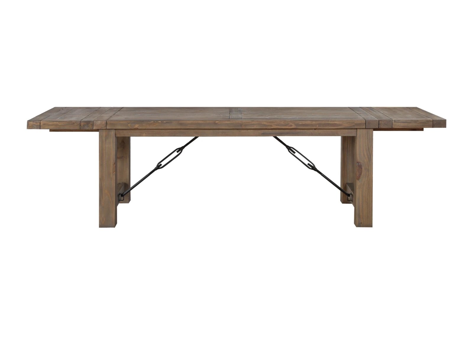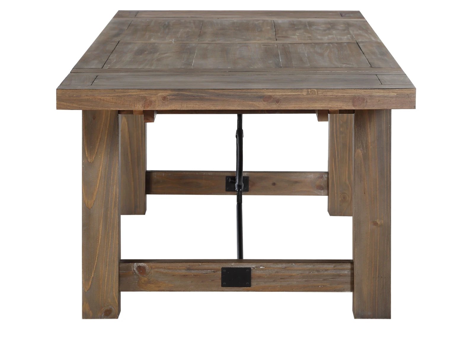 & Free ShippingWith all-solid wood construction, clean lines and functional appeal, the Auburn Hills collection replicates the look of historical farmhouse with the warm appearance of reclaimed wood. Thick, naturally rough-hewn planks of solid pine form the table top with black cast iron tension rods and cross-bracing providing a durable industrial-style foundation.