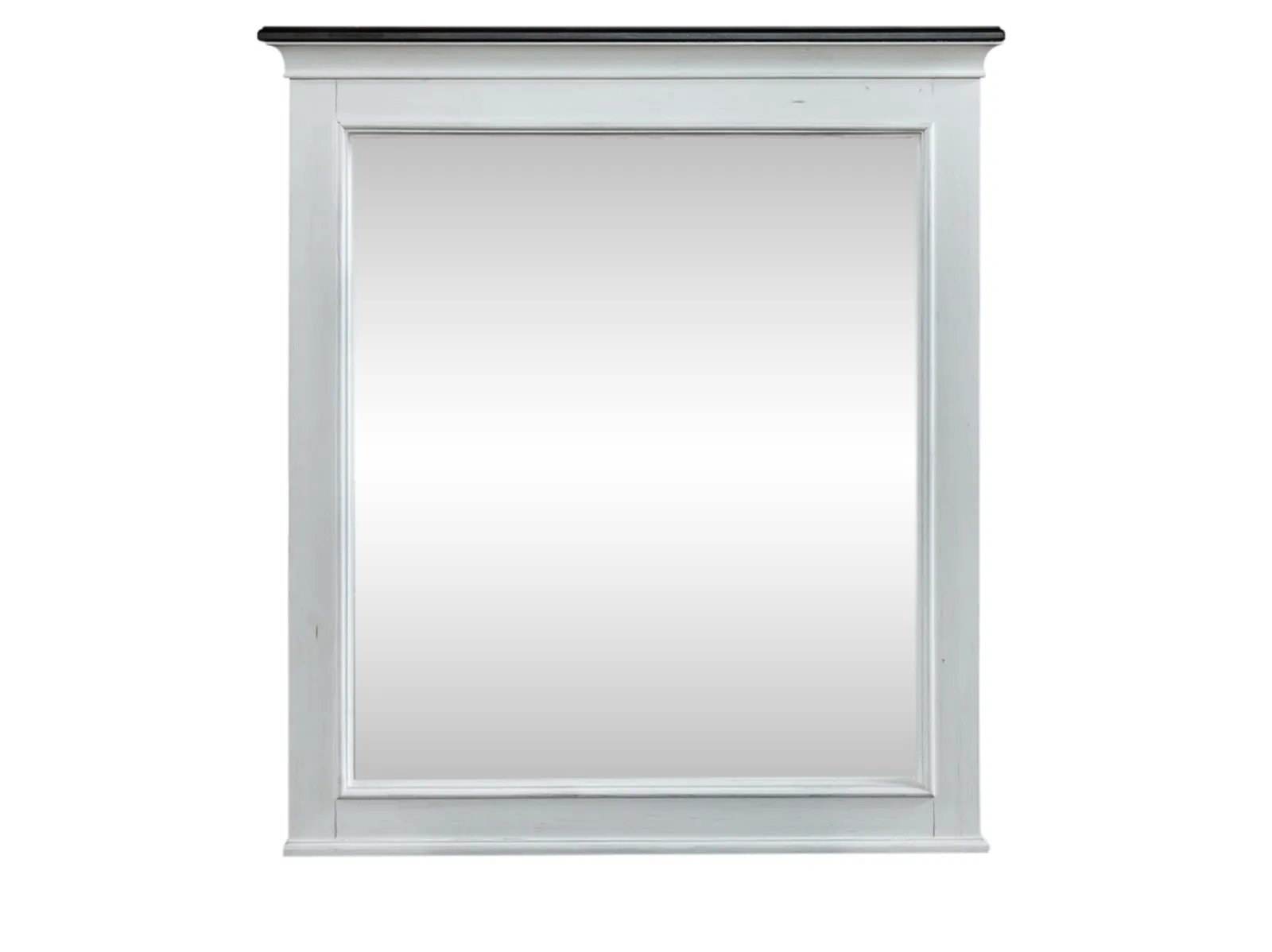 & Free ShippingCreate a classic look with a casual feel using the Averill crown mirror. Crafted of poplar and rubberwood solids with cathedral white oak tops, the two-toned wire brushed white finish with a charcoal top creates a cottage style that works anywhere from the beach, all the way to the mountains. This mirror has beveled edges and offers bolt on support and a wide landscape view that is sure to capture every angle.