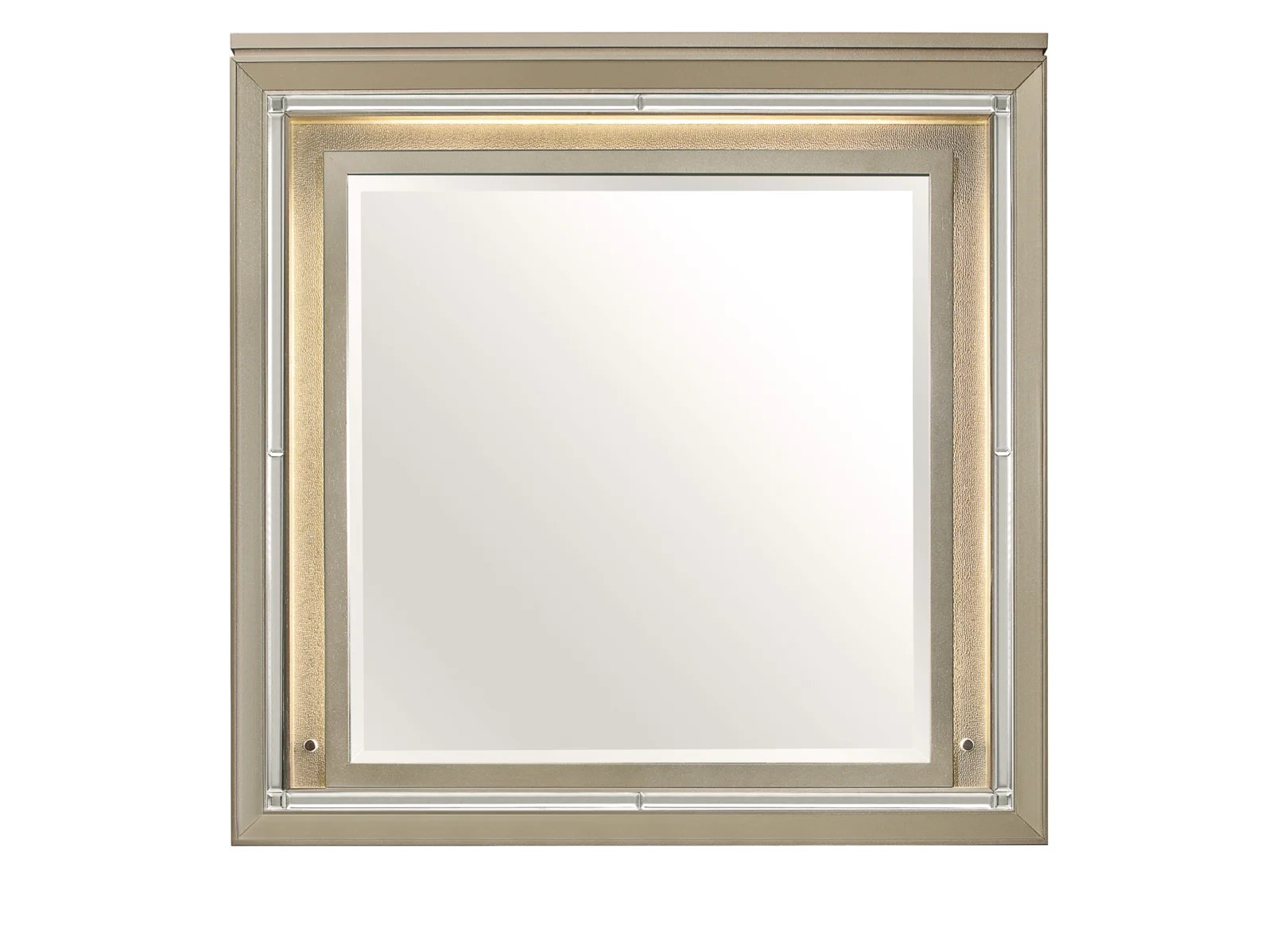 & Free ShippingThe striking design of the Averny Collection presents as a bold statement of your glamorous inclinations. The champagne metallic finish of the mirror frame shimmers with touch engaged LED backlighting. Pairs with the Averny Small Dresser.