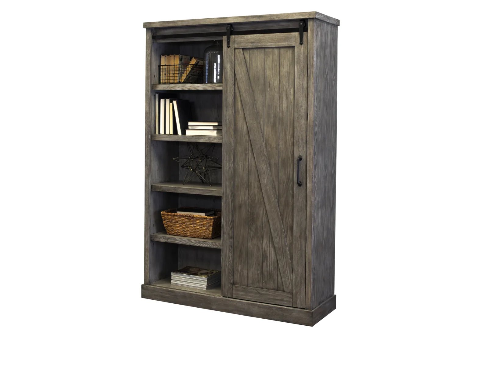 & Free ShippingThe Avondale 72″ Door Bookcase is ready to accommodate book collections in inviting farmhouse style. The Avondale is crafted from hardwood solids and oak veneers in your choice of finish, Weathered Oak, Rustic Oak, and Farmhouse White. Its eye-catching sliding barn door adds an amazing hand-built feel which is expertly complemented by its exposed mortise and tenon construction and rustic steel hardware. The Avondale 72″ Door Bookcase speaks to simplicity and adds a touch of craftsman style to any home, don’t hesitate to take yours home today.