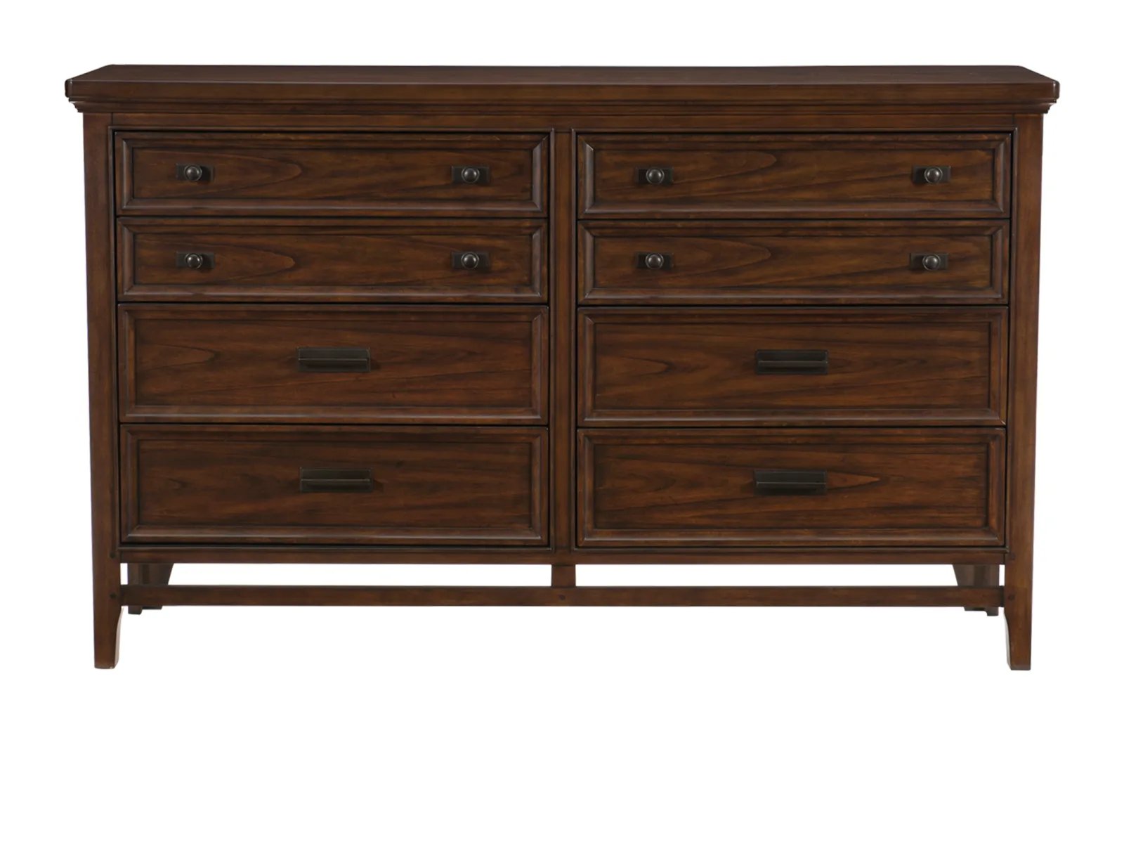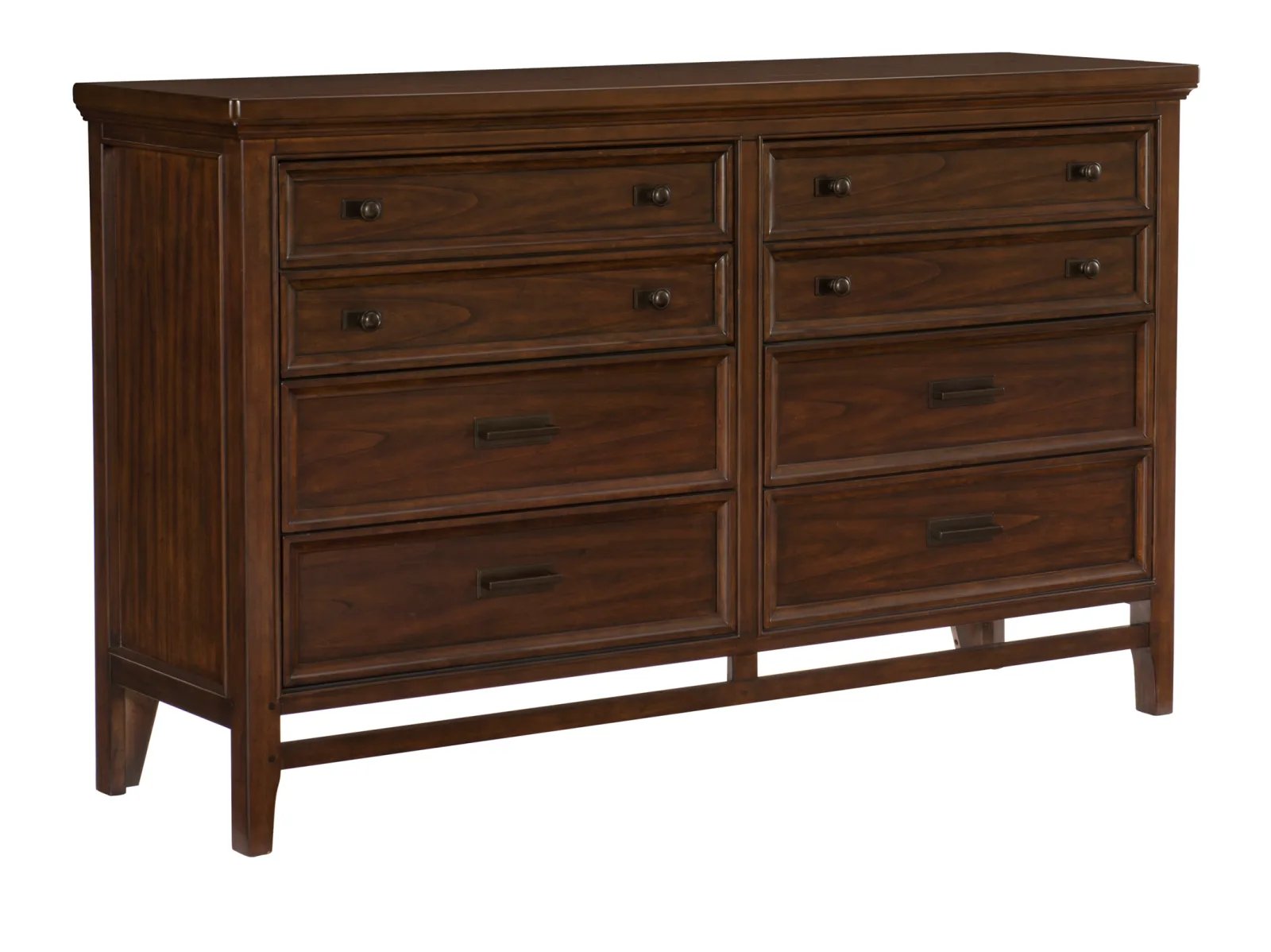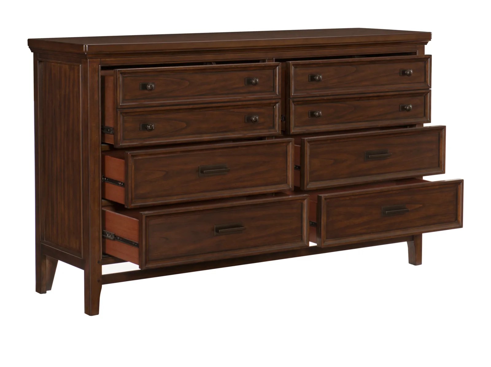 & Free ShippingWith a subtle lodge look that takes inspiration in design history, the classic styling of the Avondale Collection will help you create a bedroom environment that is a reflection of your preference for traditional spaces. The brown cherry finish that highlights the mindy veneer provides rich character to the wood’s grain. Cut away detail on the bed and case goods provides a visual break the transitional lines of the collection. The platform bed provides additional space beyond the case pieces for storage of your personal items. Knob and pull hardware front the drawers lending subtle contrast the collection’s finish.