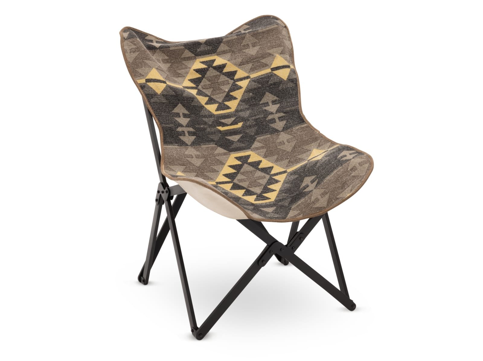 & Free ShippingBring a bold southwestern flair to your space with the Azteca Butterfly Chair. This accent chair features a unique patterned fabric in warm earth tones, instantly adding character and color to any room. Its classic butterfly silhouette is paired with a sturdy KD metal frame and a comfortable sling-style seat, creating the perfect blend of style and support. The foldable design makes it easy to move or store, making it as versatile as it is eye-catching. Reshape how you lounge with the Azteca Butterfly Chair.