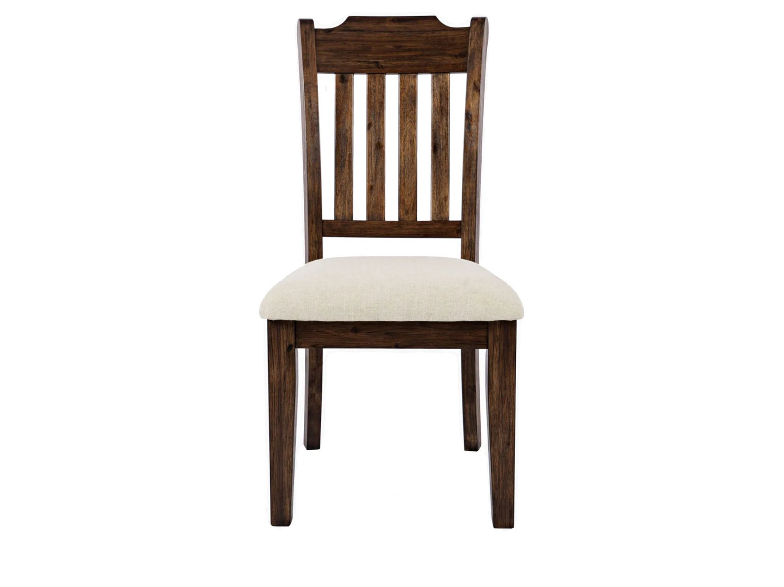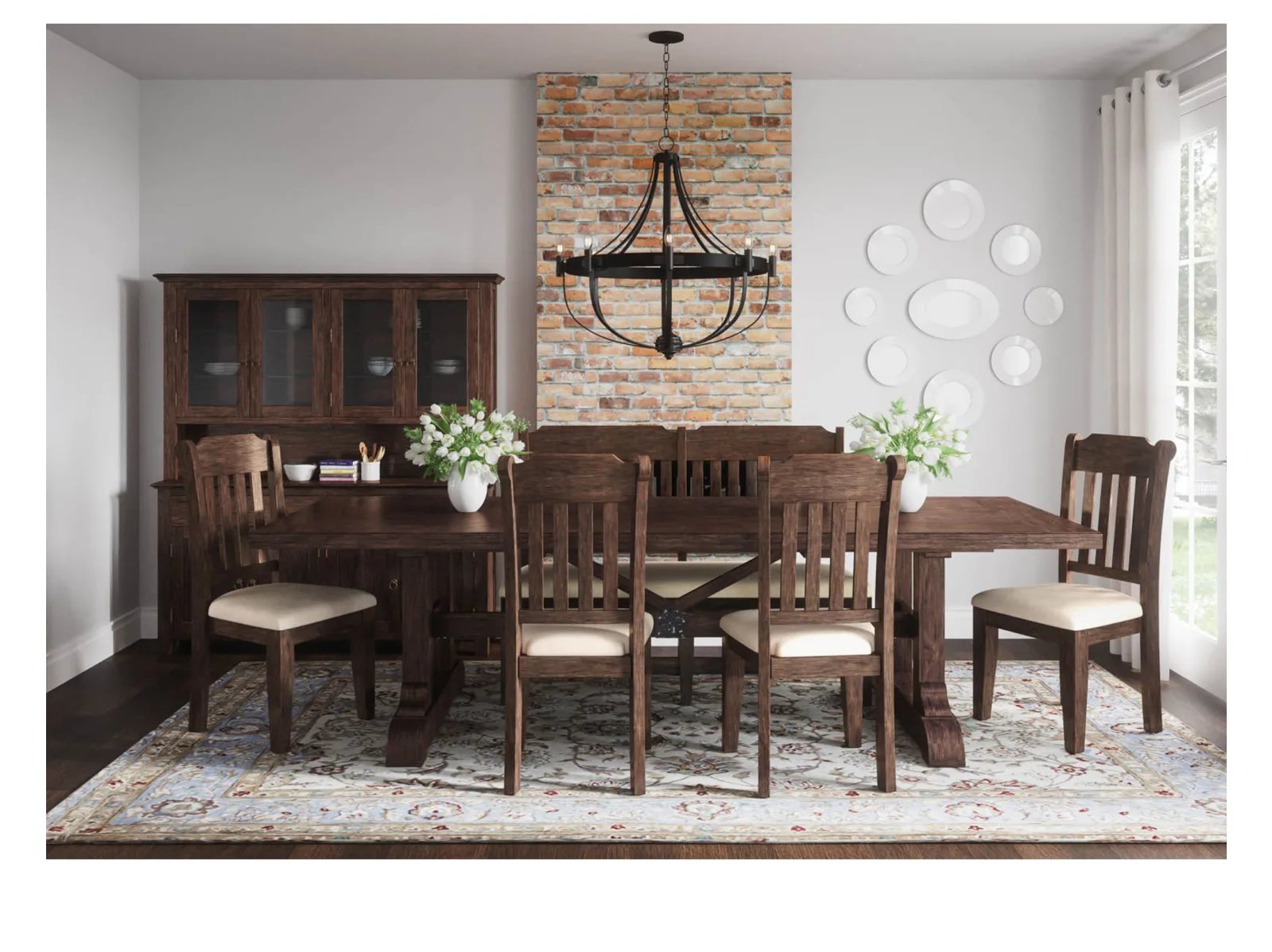 Centered around the attention grabbing table, with a trestle bar with two angled supports and metal detailing, the Baker Mills Collection is simply stunning. These chairs features an upholstered seat.