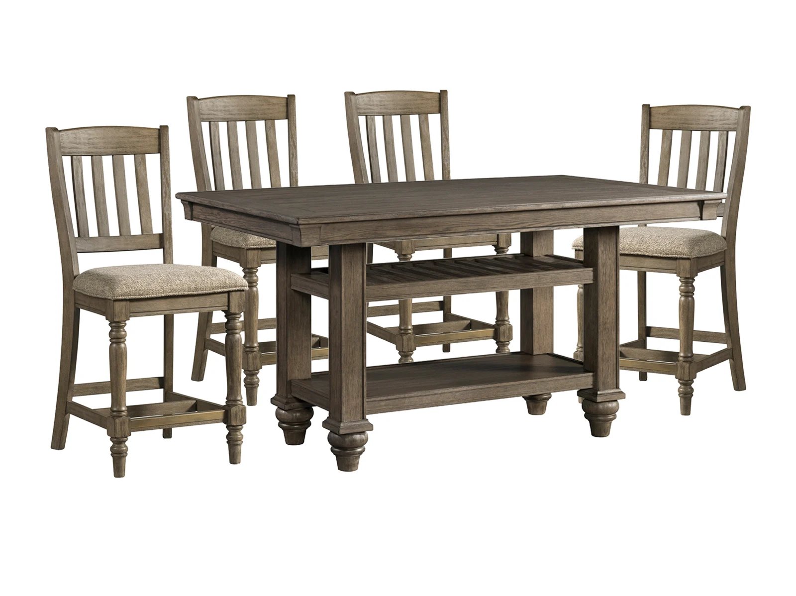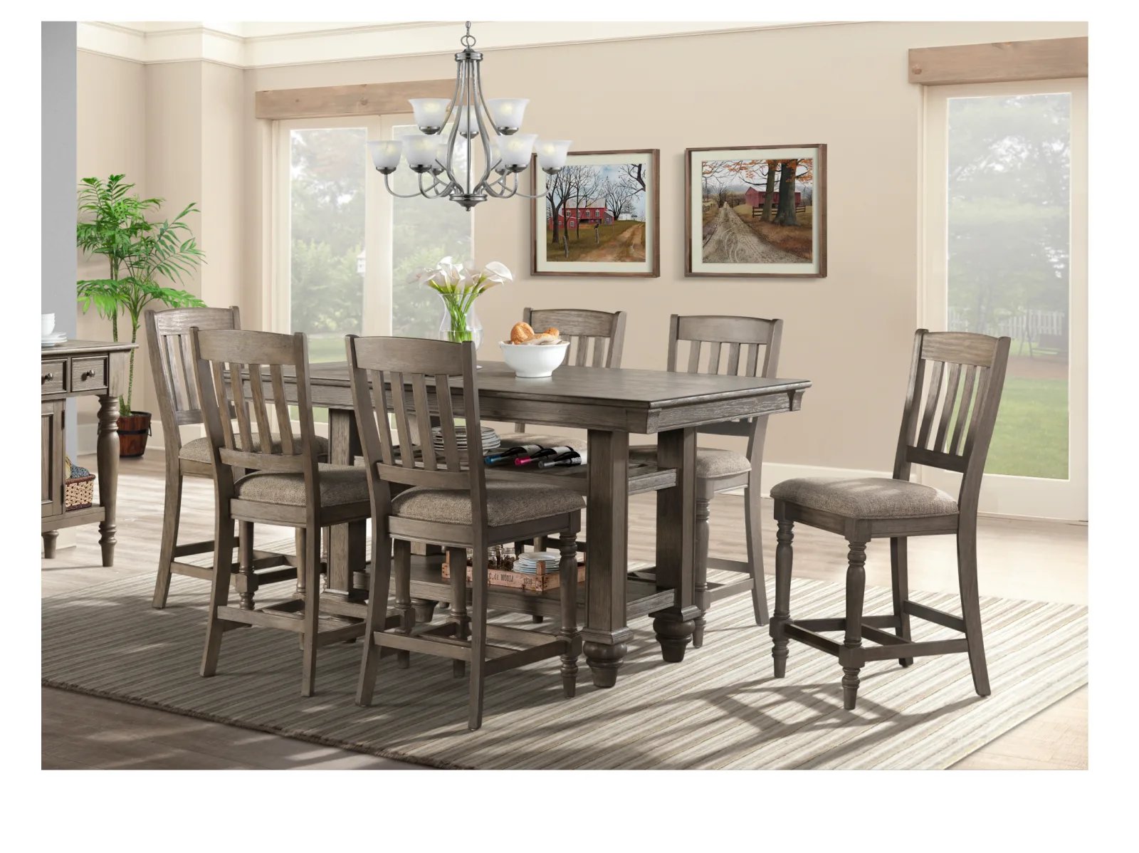 & Free ShippingThe Ballantyne Collection features oak veneer tops with an intricate, planked pattern and a solid wood edge. Chair and barstool seats are heavily padded for comfort and feature stretchers to assure a long life.