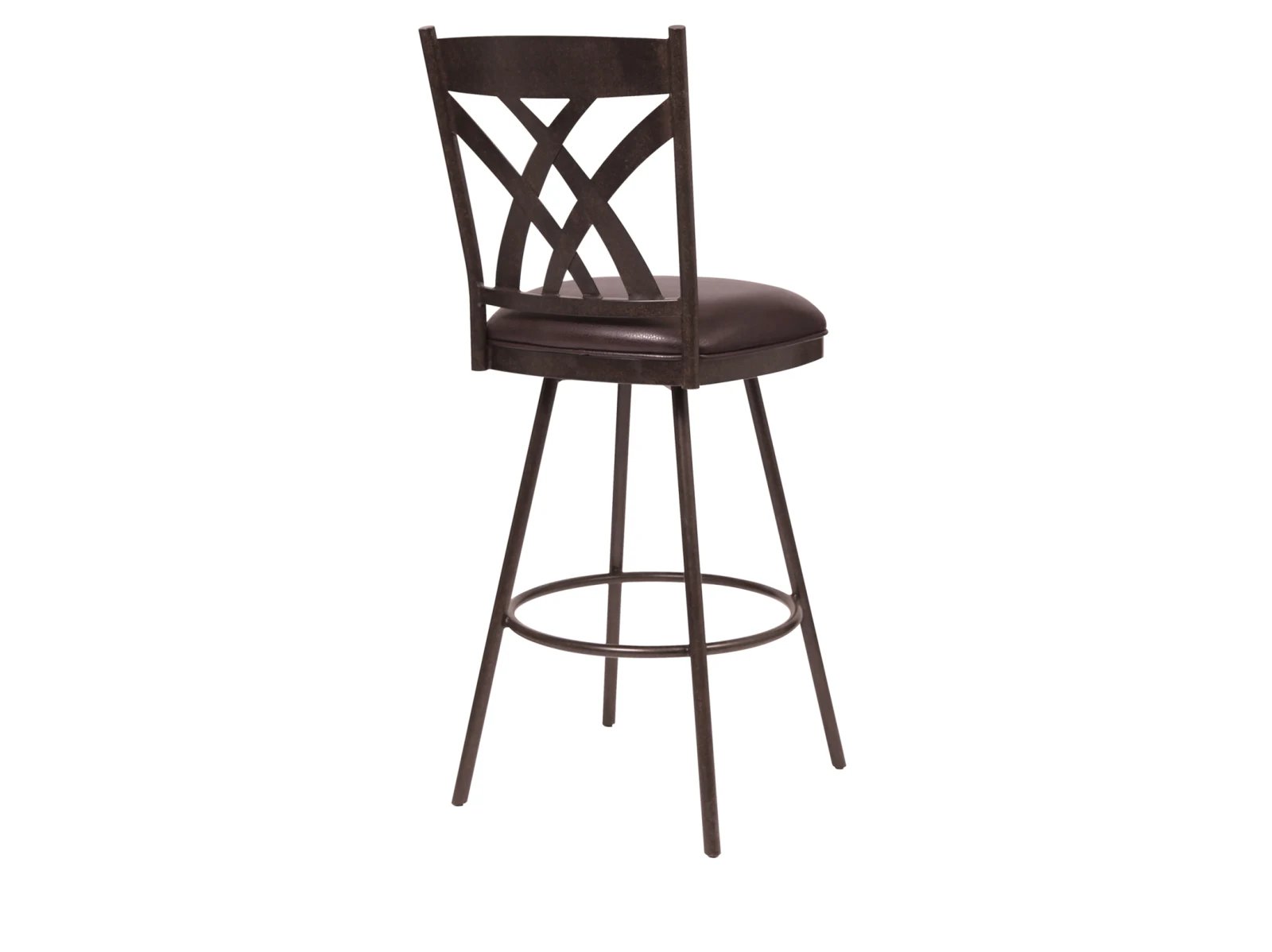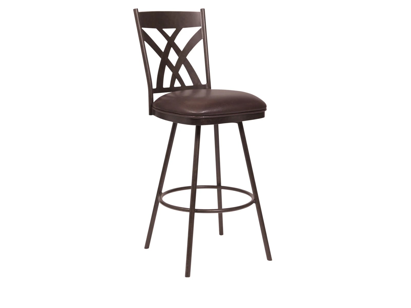 & Free ShippingThe Armen Living Ballinger Swivel Bar Stool is an essential piece for any modern household. The durability of the Blaine’s Auburn Bay finish metal frame construction is matched only the comfort of its Brown faux leather upholstered seat. The Blaine’s tall, ornate back offers an exceptional degree of comfort while the 360 degree swivel seat allows for exceptional user mobility while seated. The included footrest provides an excellent accent to the straight leg design while also acting as a support piece. The Blaine’s legs are tipped with floor protectors, assuring that the bar stool will not slip on or scratch hardwood or tile floors.
