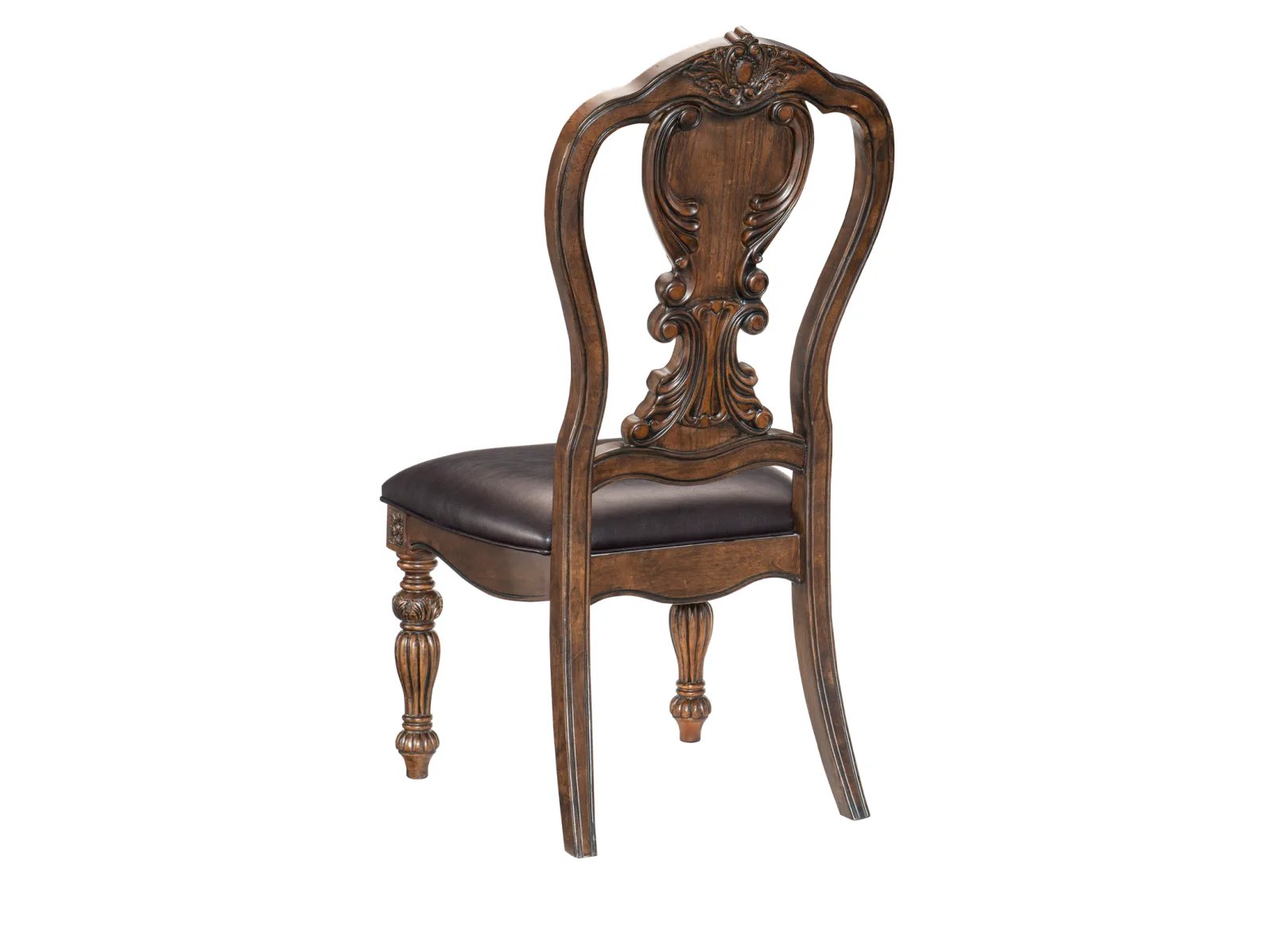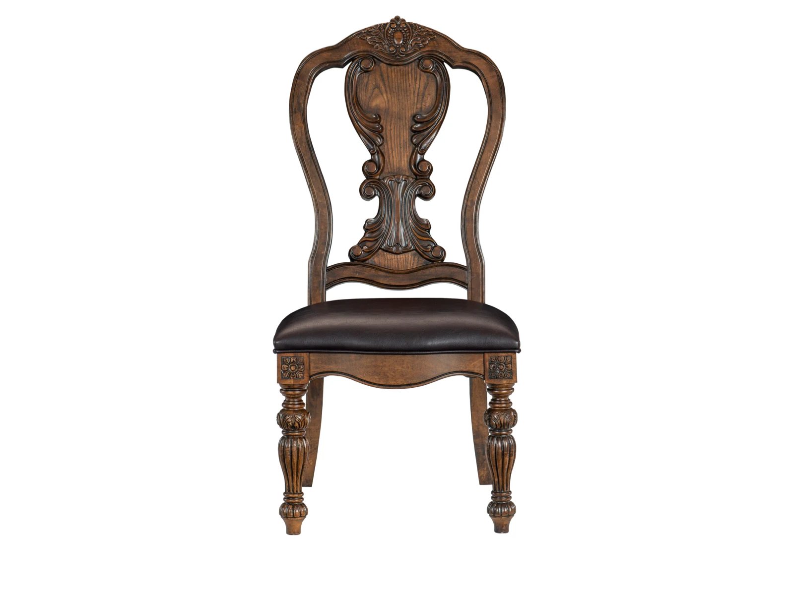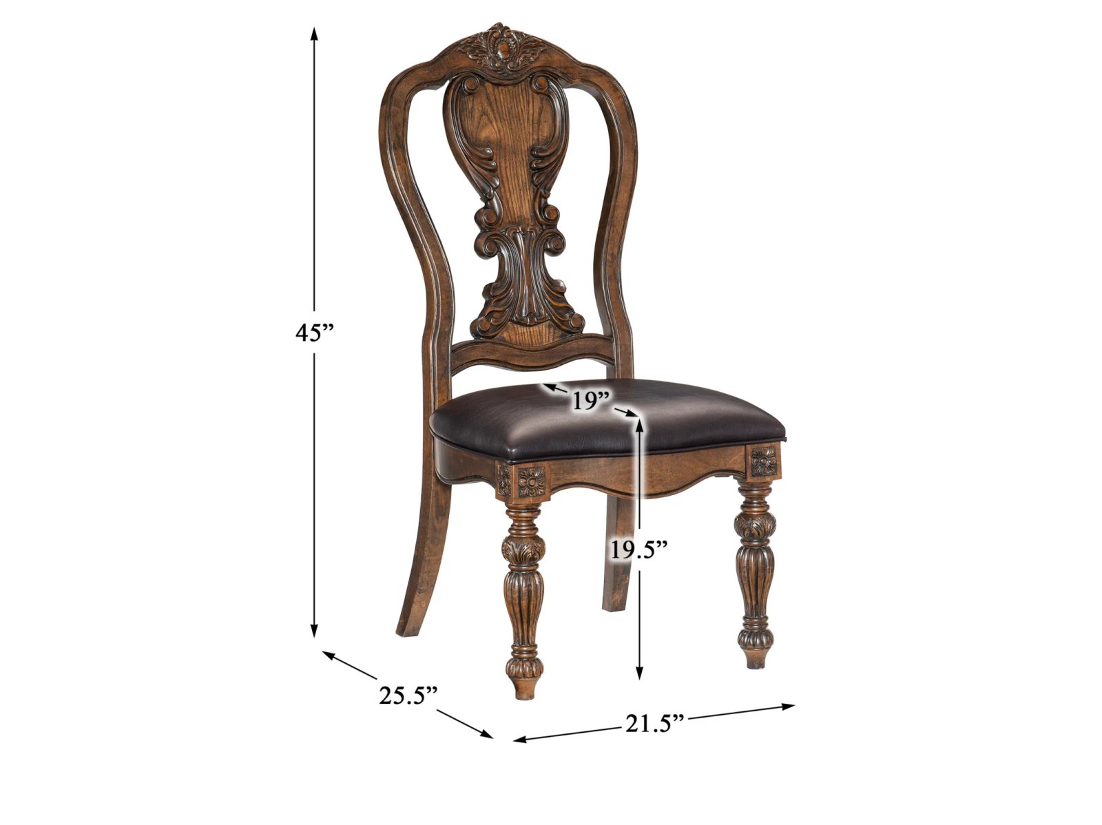 & Free ShippingThe grand scale of the Bannock Collection invokes a timeless aesthetic for your home’s traditional dining room. The Dining Chair’s dark oak finish highlights the distinct oak veneer with a dark brown faux leather upholstered seat providing complementing contrast. Traditional accenting abounds throughout the chair with legs that feature classic routing, moldings, and decorative pediments gracing the design.