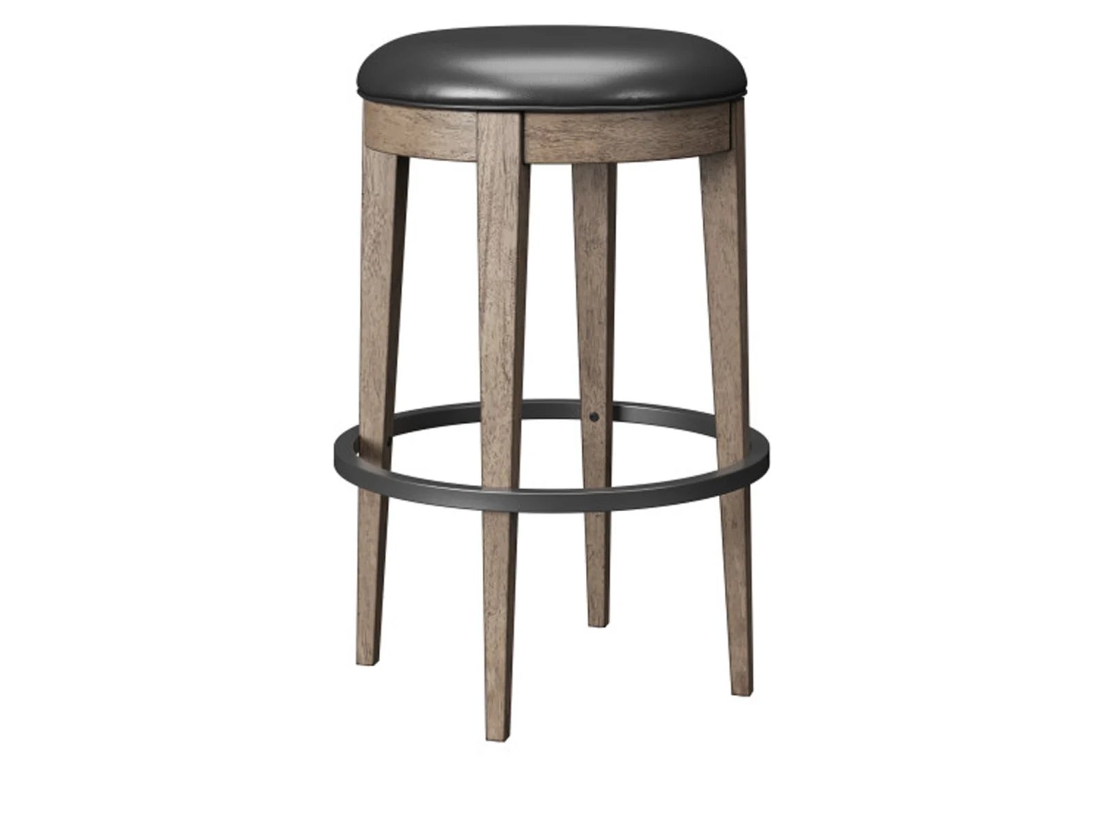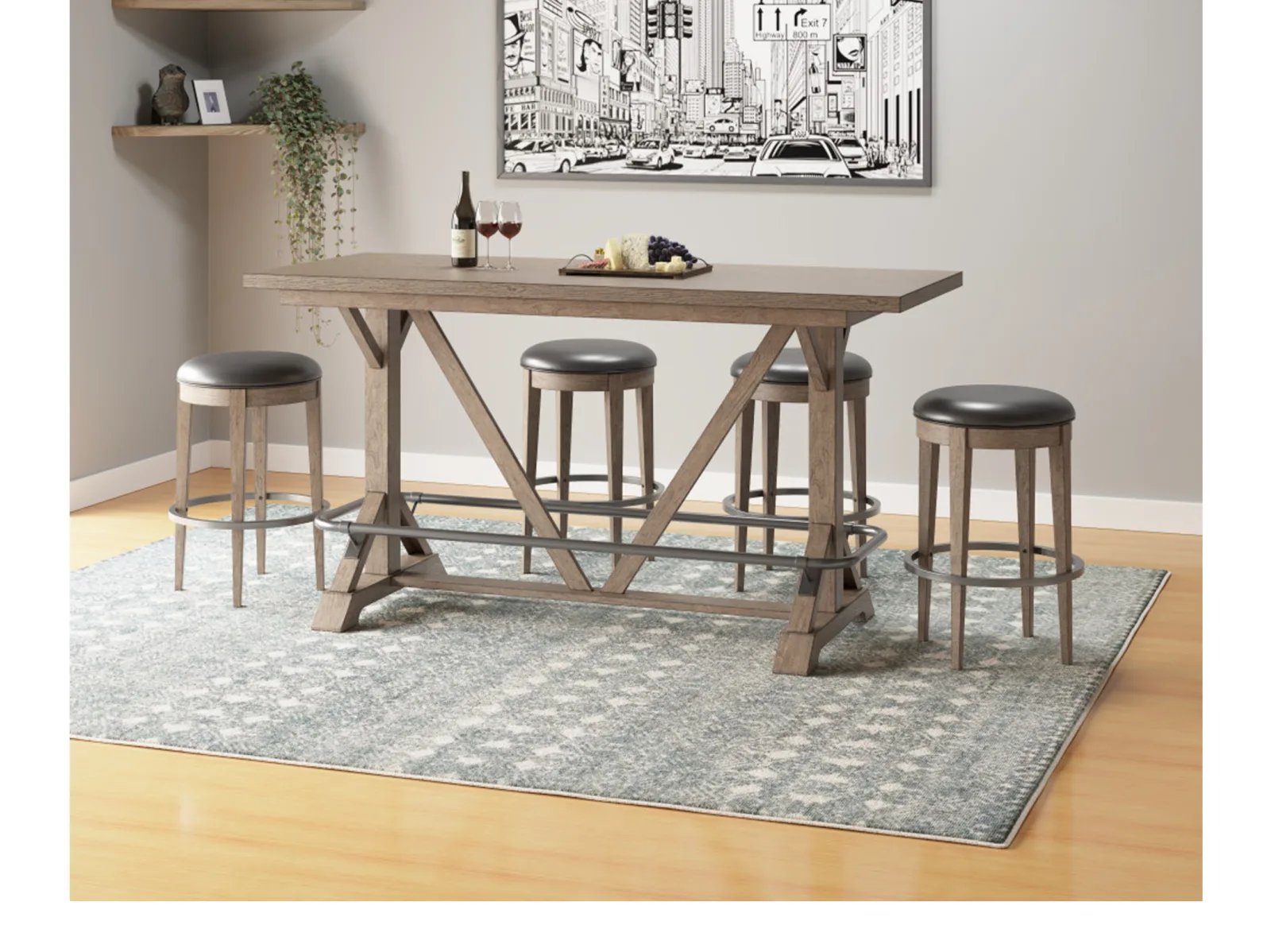 Belly up to the bar of your choice with the Beckley. Options abound for the perfect spot to gather with friends and family with this casual, bar height dining collection. Randomly matched oak veneers finished in a warm, pecan brown create a laid-back appeal while hardwood solids, easy-to-maintain Polyurethane faux leather upholstery, and metal foot rails and kick plates assure the Benton collection will stand up to the rigors of everyday use.
