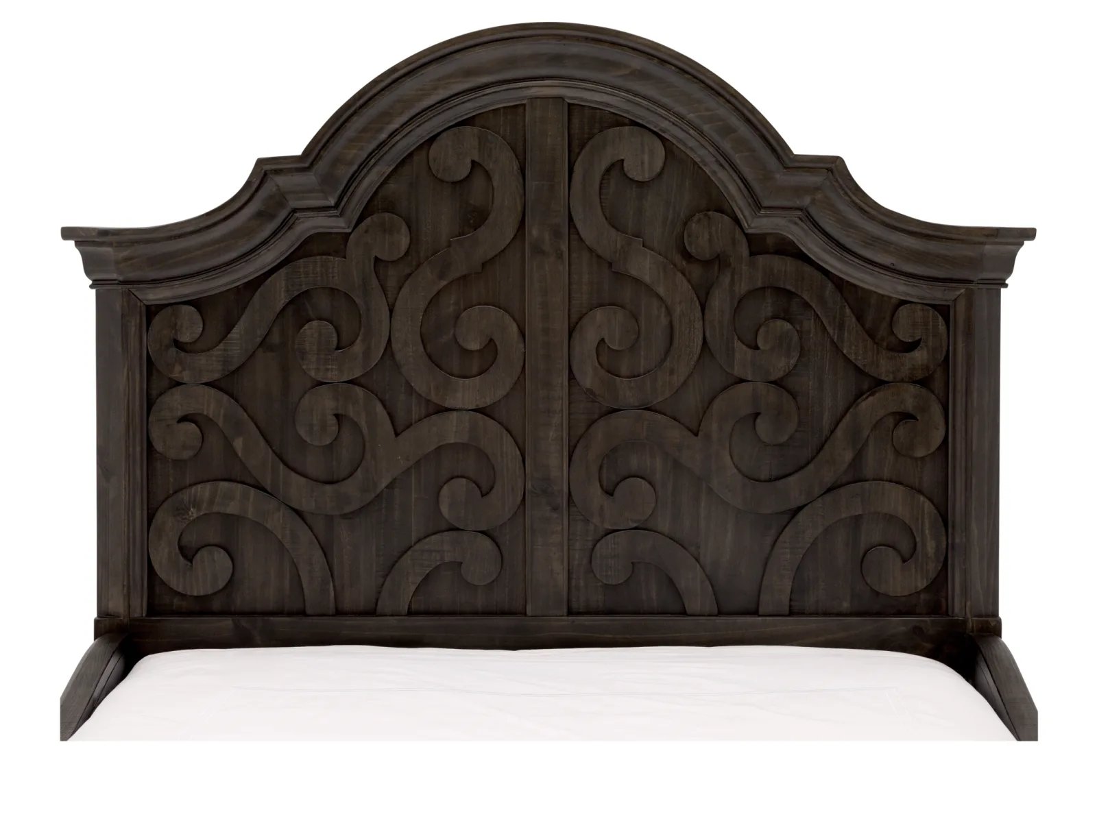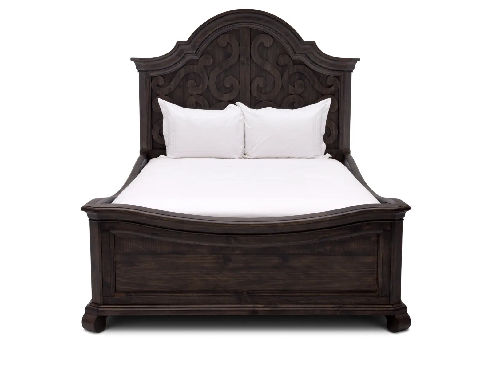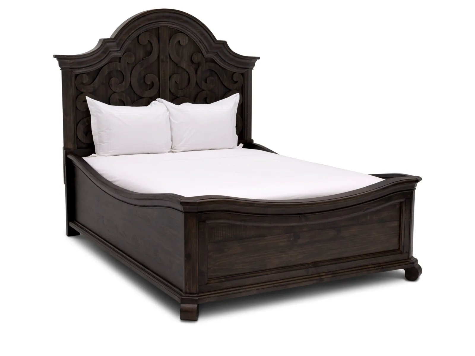 & Free ShippingBring home the enchanting design of your dreams with the Belcaro Panel Bed. Elegantly crafted of solid pine in a black peppercorn finish, this romantic, Sleeping Beauty style bed boasts the best of rustic and traditional trends. A headboard with sweeping curves and scrolled fretwork makes the Belcaro stand out in terms of sophistication. Add this beautiful panel bed today. The Belcaro comes in queen, king or cal king sizes.