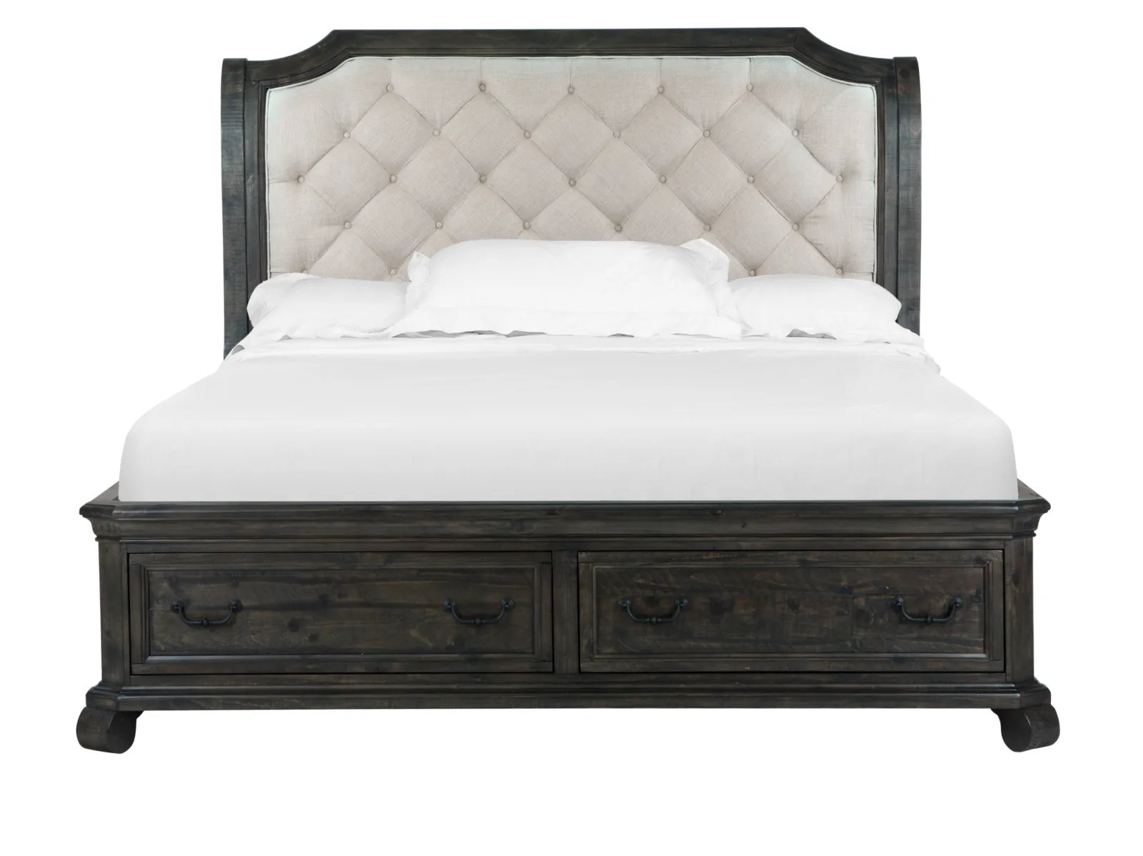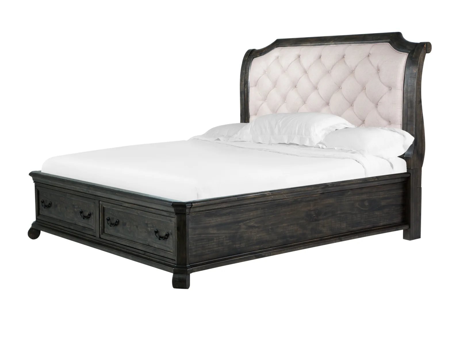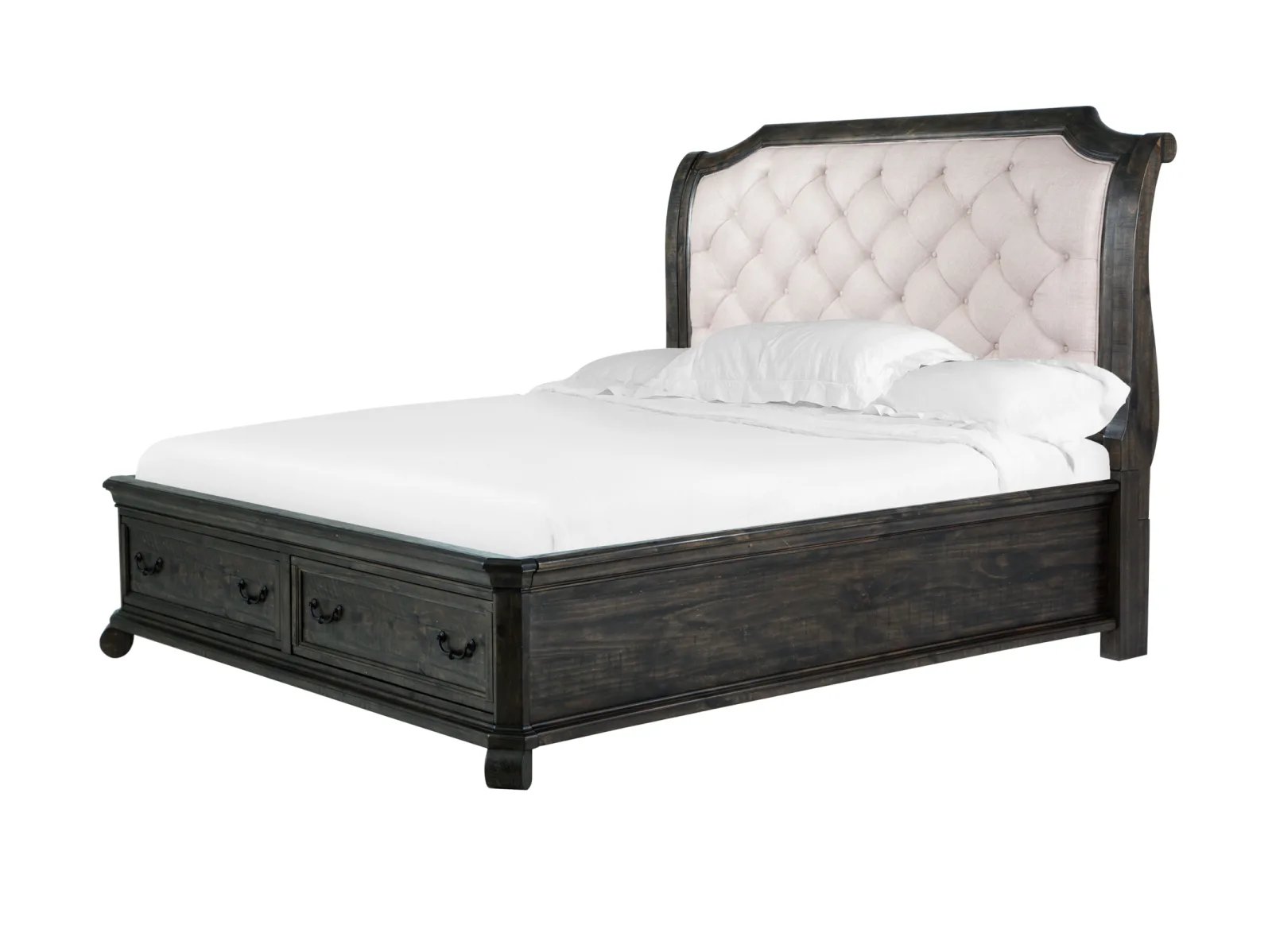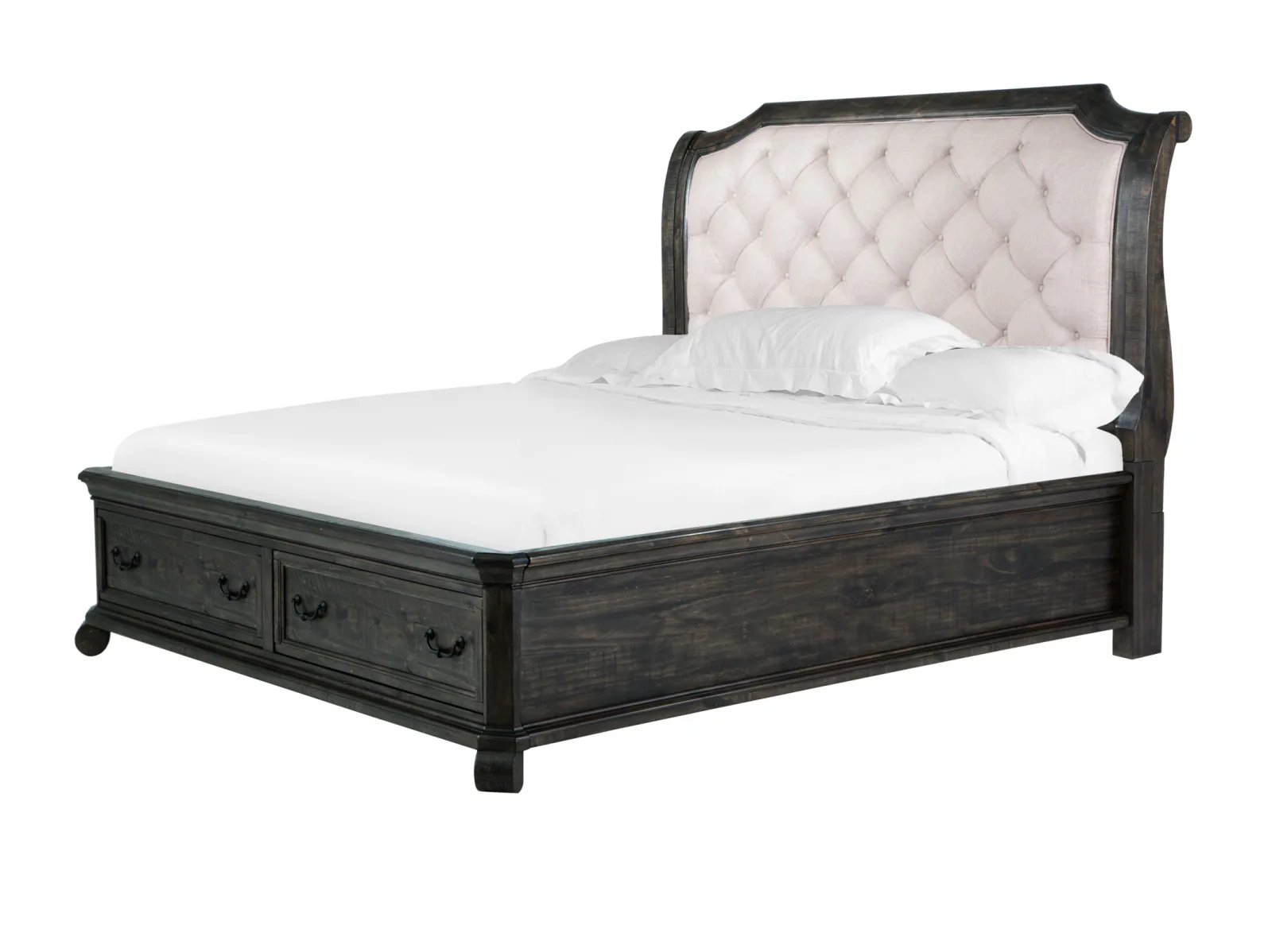 & Free ShippingWarm and inviting like an old French friend, Belcaro welcomes with European inspired styling in a unique Peppercorn finish and matte black pewter accented hardware. Scrolling open woodwork adorns the well appointed media chest doors while roomy dressers and chests feature rounded corners atop rounded bun feet. A plethora of bed options offer upholstered tufted headboards, storage footboards, panel headboards and gorgeous shaped panels with or without sumptuous scrolled design work for a Chateau feel for any taste.