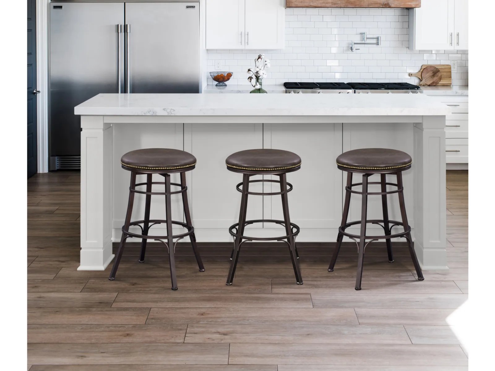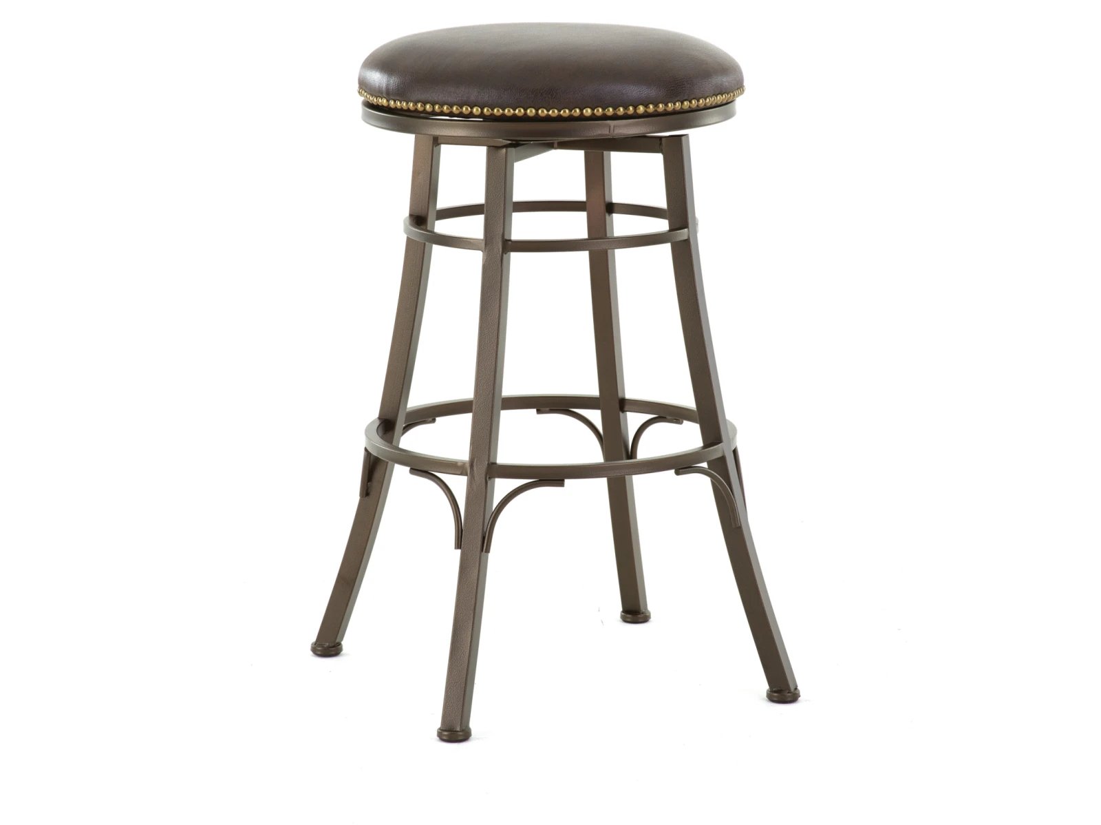 Enjoy casual comfort with the Steve Silver Bellini Backless Swivel Bar and Counter Stools. Upholstered in brown bonded leather, the seats are padded for comfort and studded with nail head trim for a rugged, relaxed look. A great option for bar or brunch area.