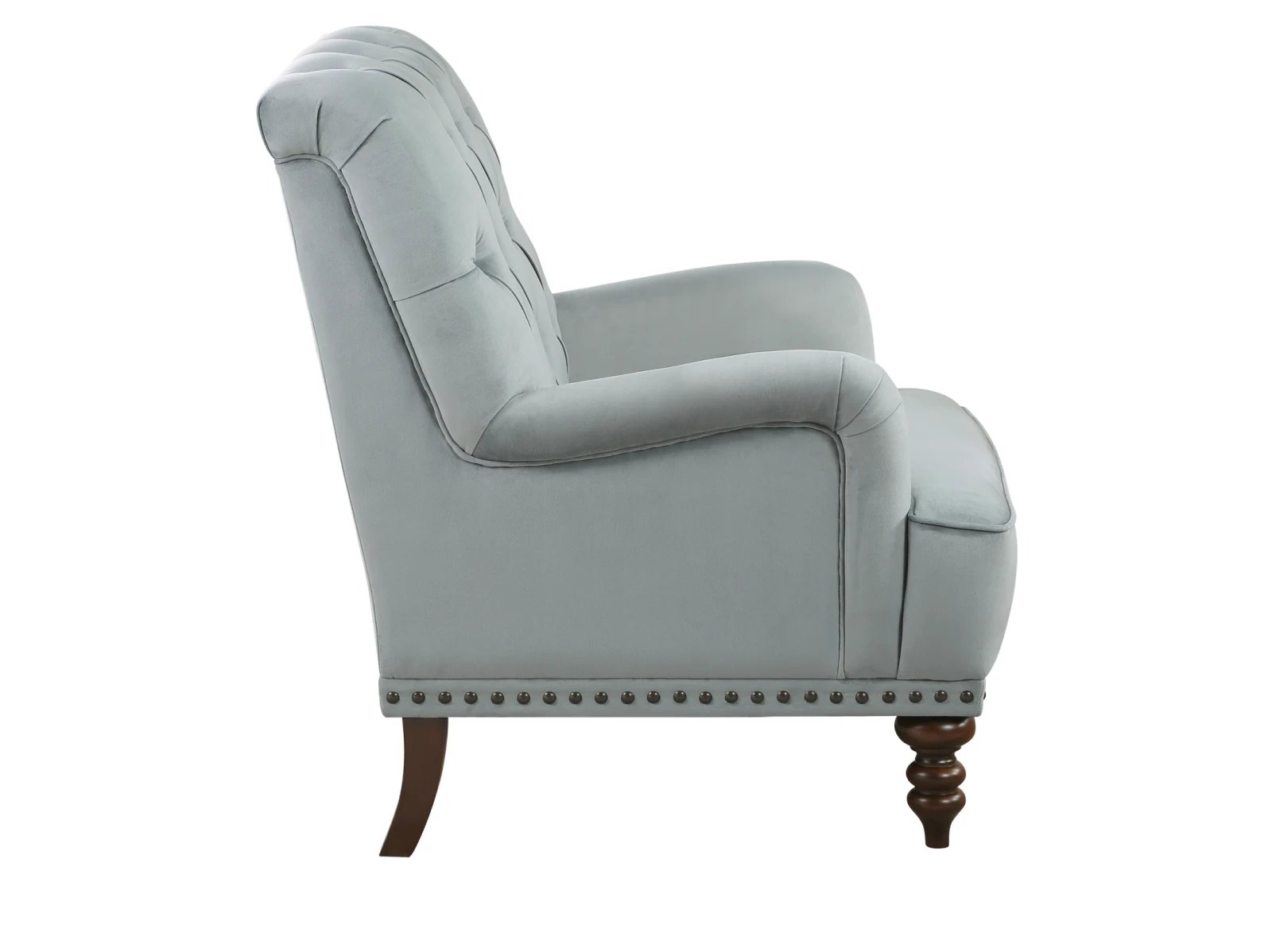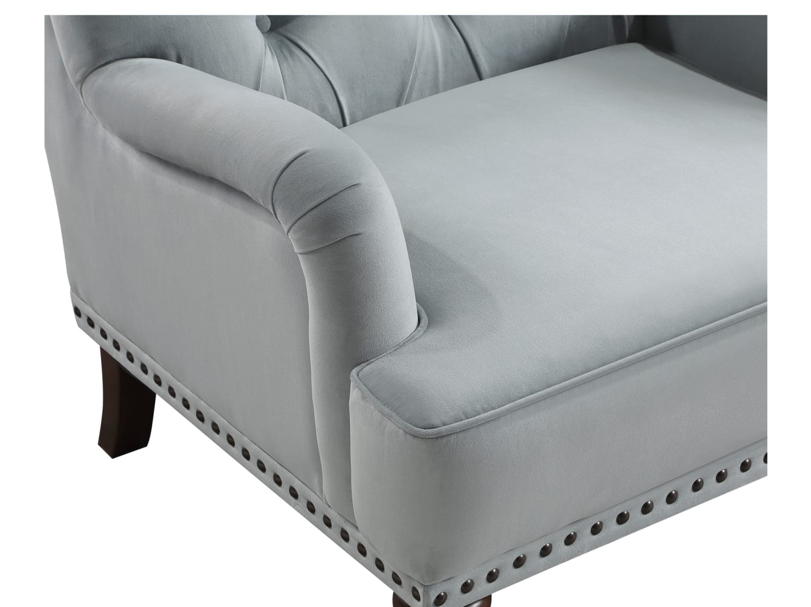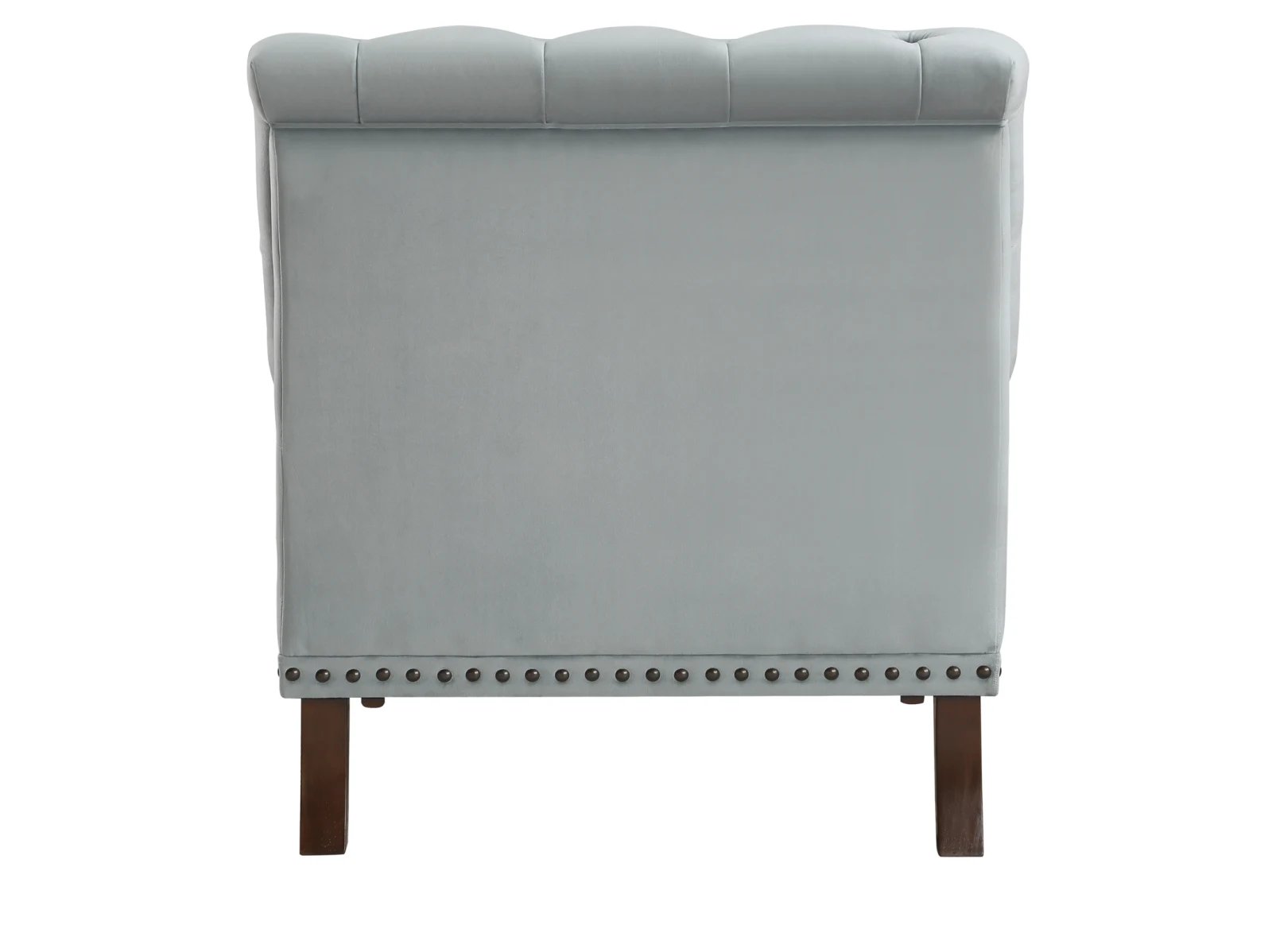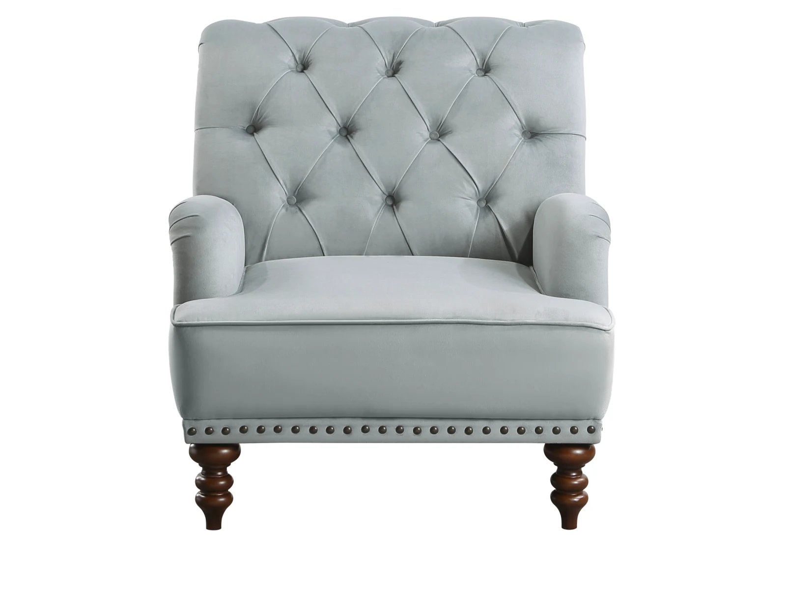 & Free ShippingAn air of refined tradition lends its elegance to the design of the Bellmead Collection. Tailored to enhance the graceful curves of the chair’s profile, classic accenting in the form of turned legs and button tufting further the timeless look of the piece. Dark blue or gray velvet upholstery covers the chair, its rich hue a perfect complement to your space.