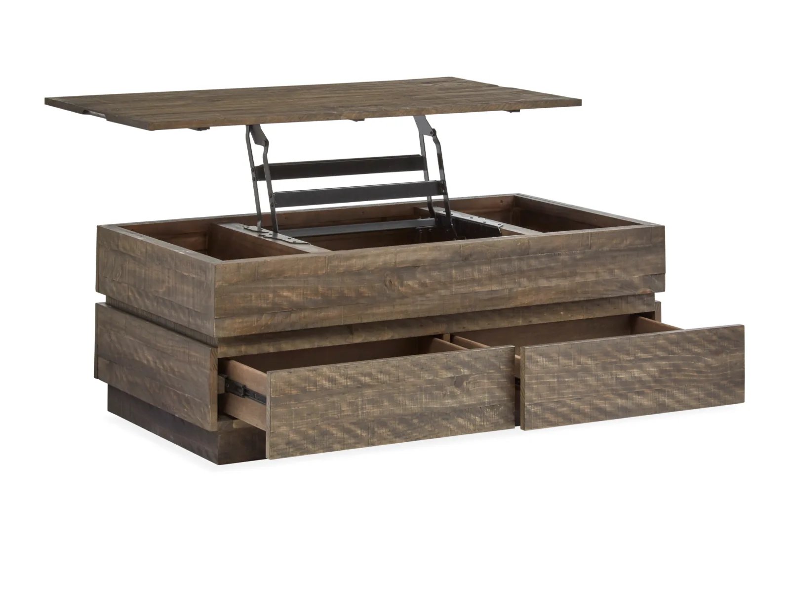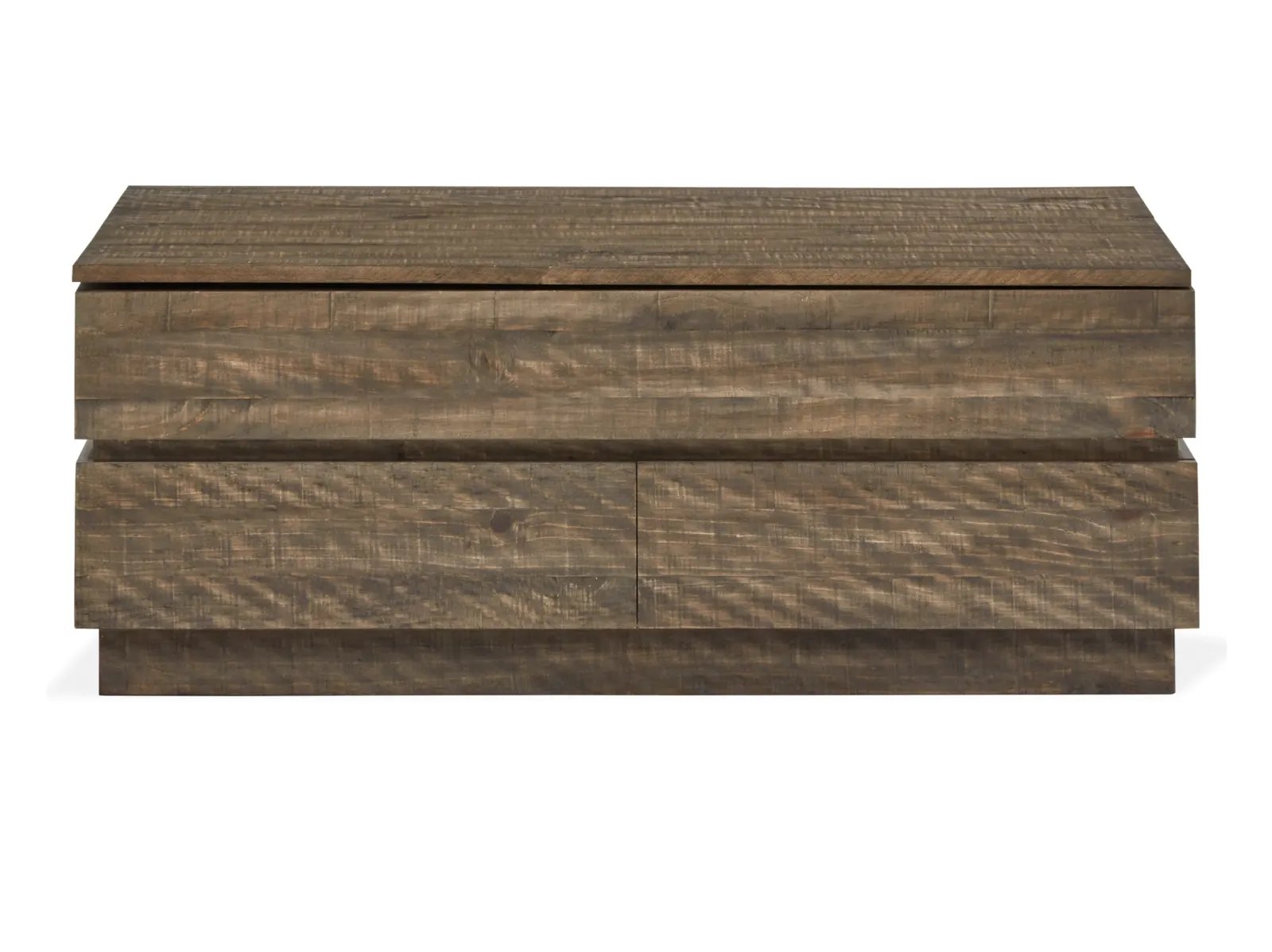 With plenty of homespun country character and a touch of contemporary appeal, the Bendigo Lift Top Coffee Table is sure to impress in any setting. This captivating coffee table is crafted from pine in a rich tobacco finish with distressed accent marks, and it showcases planked detailing along its top and sides to perfect its fashionably-rustic look. More than just a simple accent piece, the Bendigo also boasts discreet drawers along its front as well as a roomy storage space beneath its modern lift top. Add this one-of-a-kind coffee table to your collection today.
