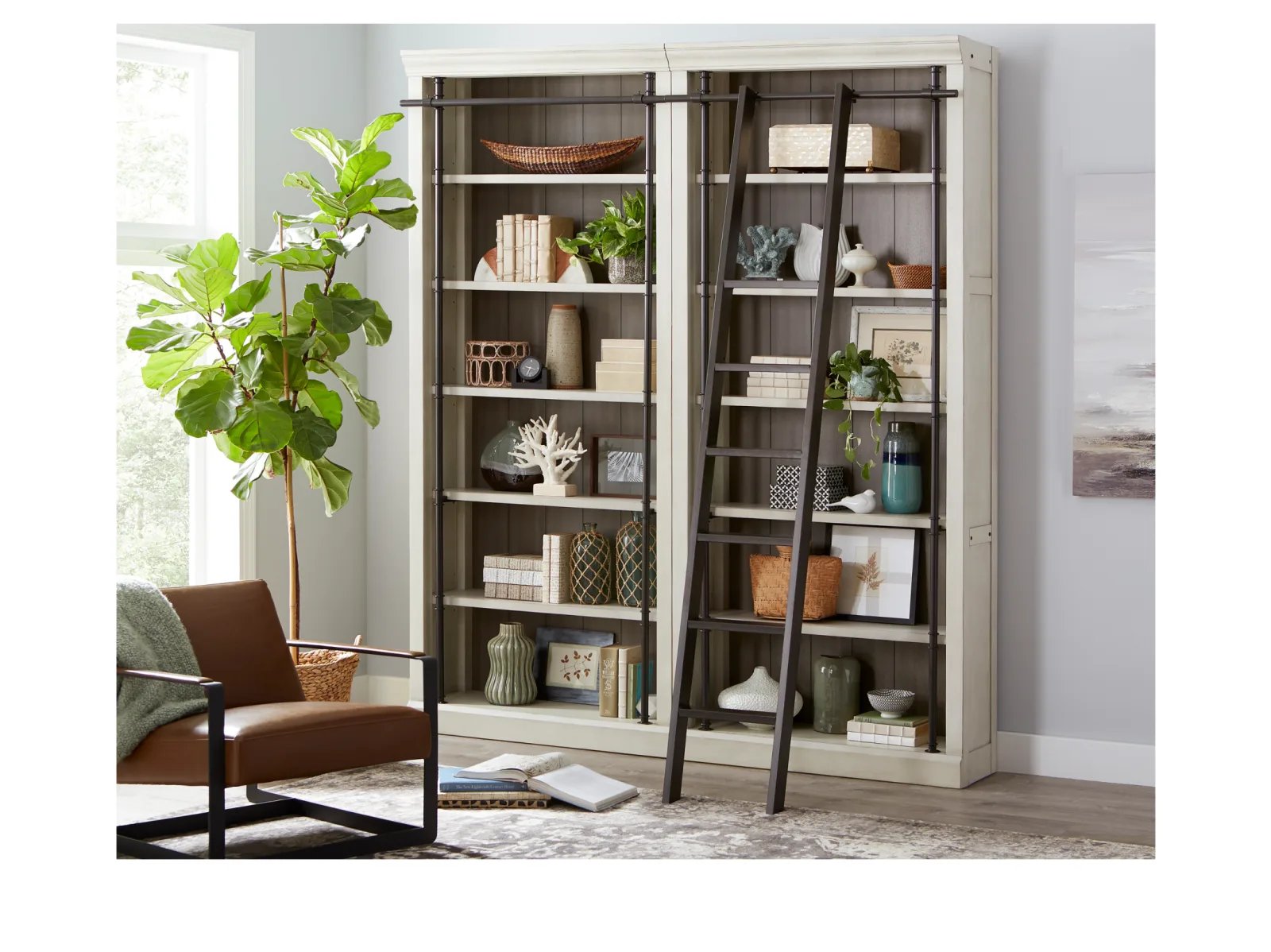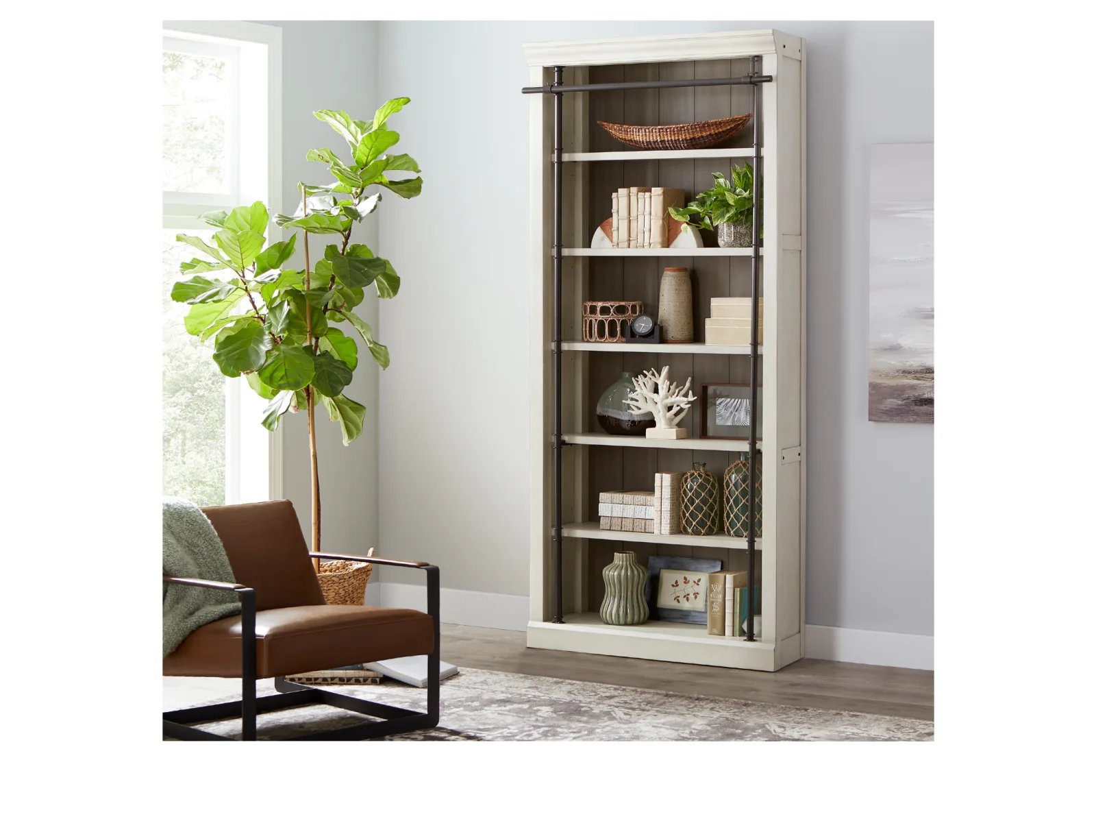 & Free ShippingReminiscent of a quaint French library, the Berlioz Bookcase transforms any office or home into an elegant chateau. With its ringed steel frame, white painted finish, and warm gray finished interior made of poplar solids and pine veneers, the Berlioz Bookcase creates an ideal showcase for cherished memories and collectibles discovered over a lifetime. You will love this refined piece in your home. Build a complete wall with multiple bookcases, and add the Toulouse Metal Ladder (sold separately) for a complete bookcase set.