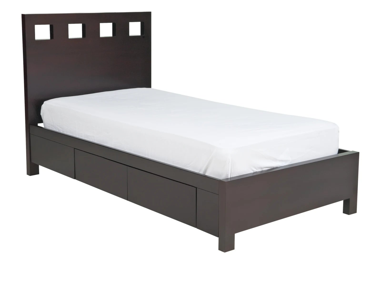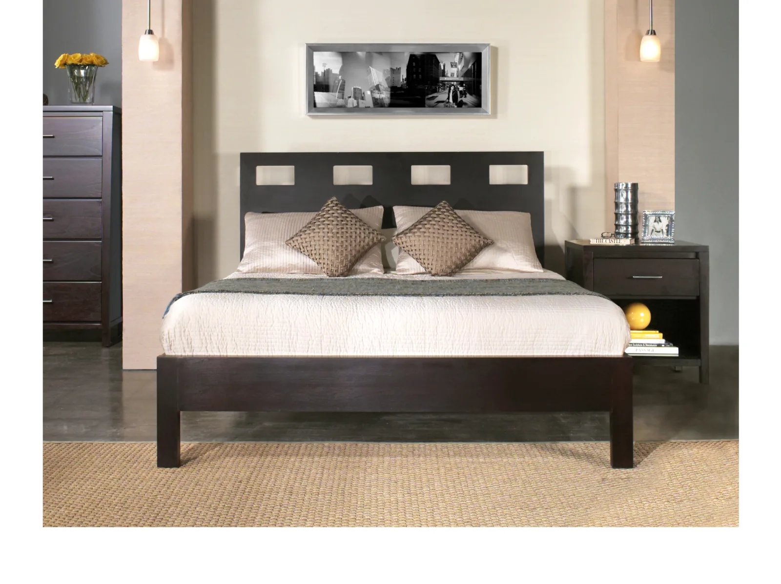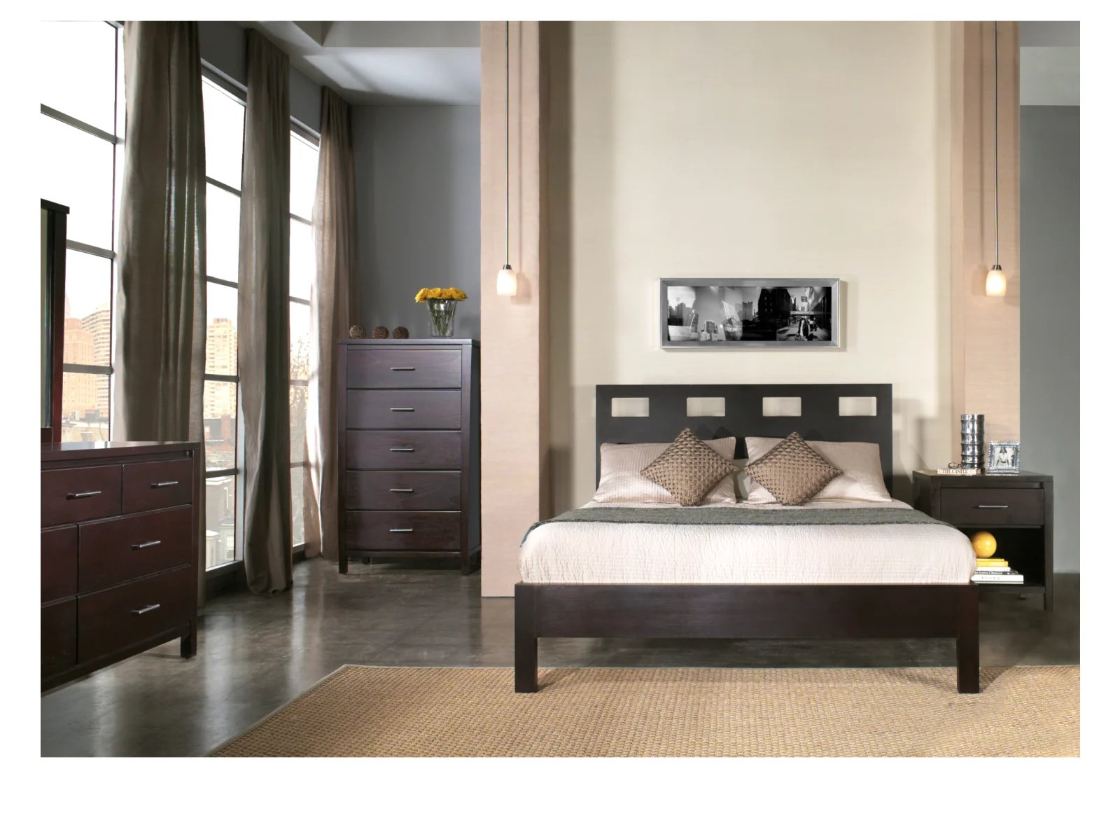 Crafted from Tropical Mahogany solids and a variety of beautiful veneers, the Besser collection features solid wood drawer boxes with English dovetail joints on both front and back, full extension ball bearing drawer glides, and are corner blocked to ensure rigidity, making them as functional as they are sleek. The wide variety of pieces are enhanced by an elaborate American finishing process in either a rich Spice or a deep, dark Espresso, both complimented by brushed chrome hardware. Together with a vast array of contemporary platform, low profile and sleigh bed styles, the Besser collection blends the sleek and exotic with the functional.