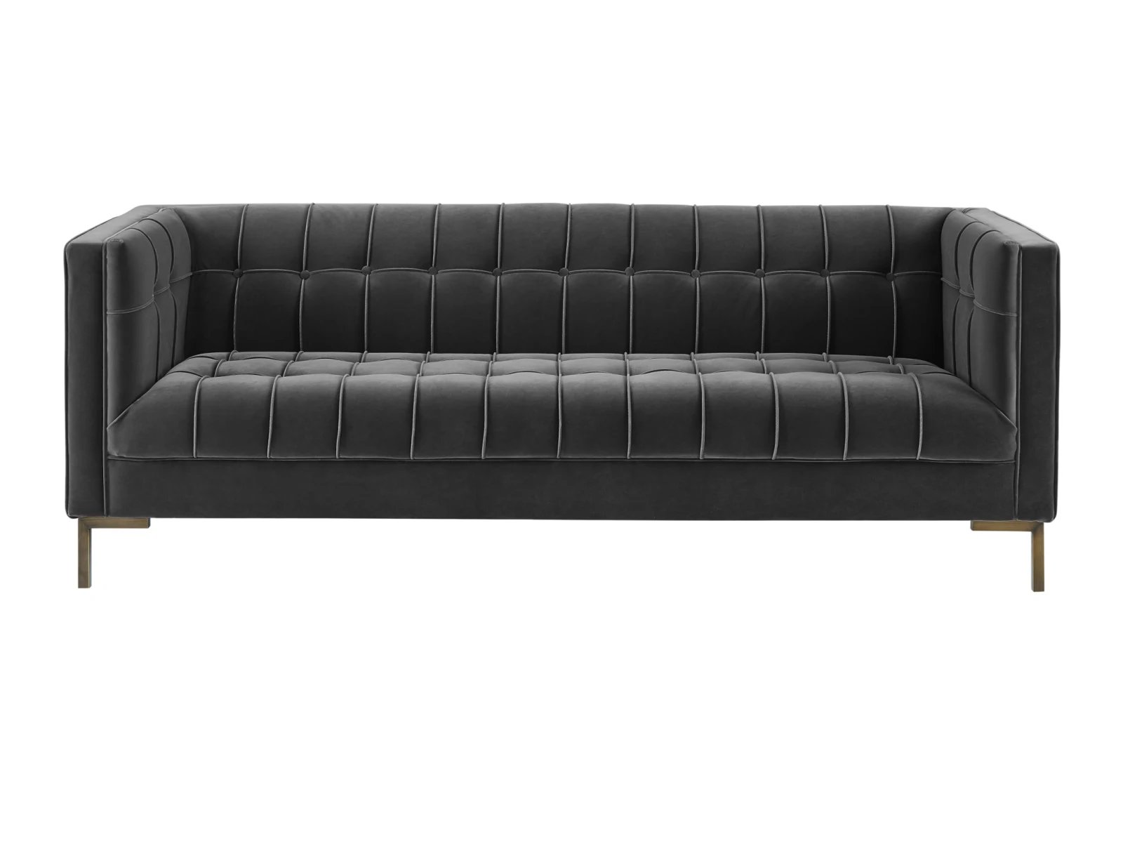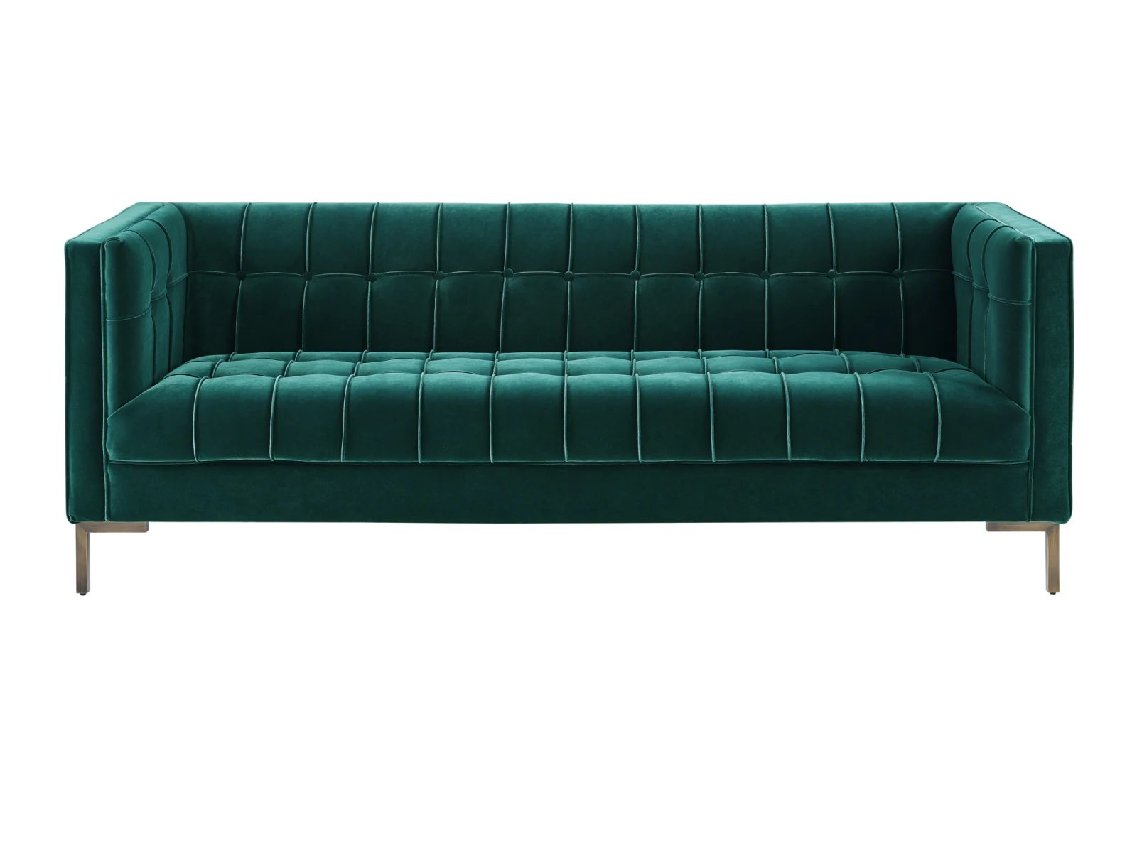 Designed for luxe living, the Beth velvet sofa combines sleek lines and sumptuous finishes to create the ultimate opulent effect. This alluring sofa follows a classic mid century modern design but updates the style with features such as brass, angular legs and rich velvet fabric. The channel stitching in a vertical and horizontal pattern is an elegant design detail that is sure to draw the eye and attention of onlookers. As engaging as the style itself is, this sofa is also built for everyday family life. The fabric is treated to to help guard against sticky fingers and muddy paws.