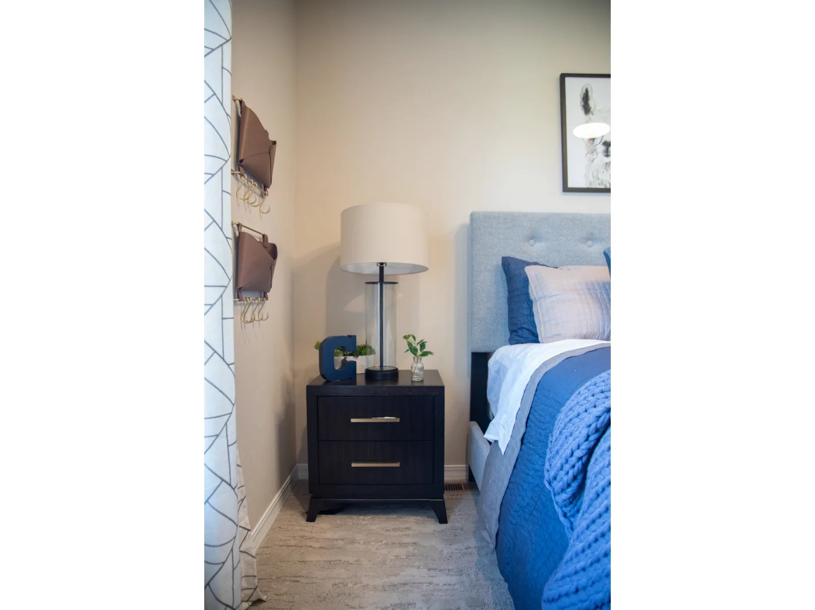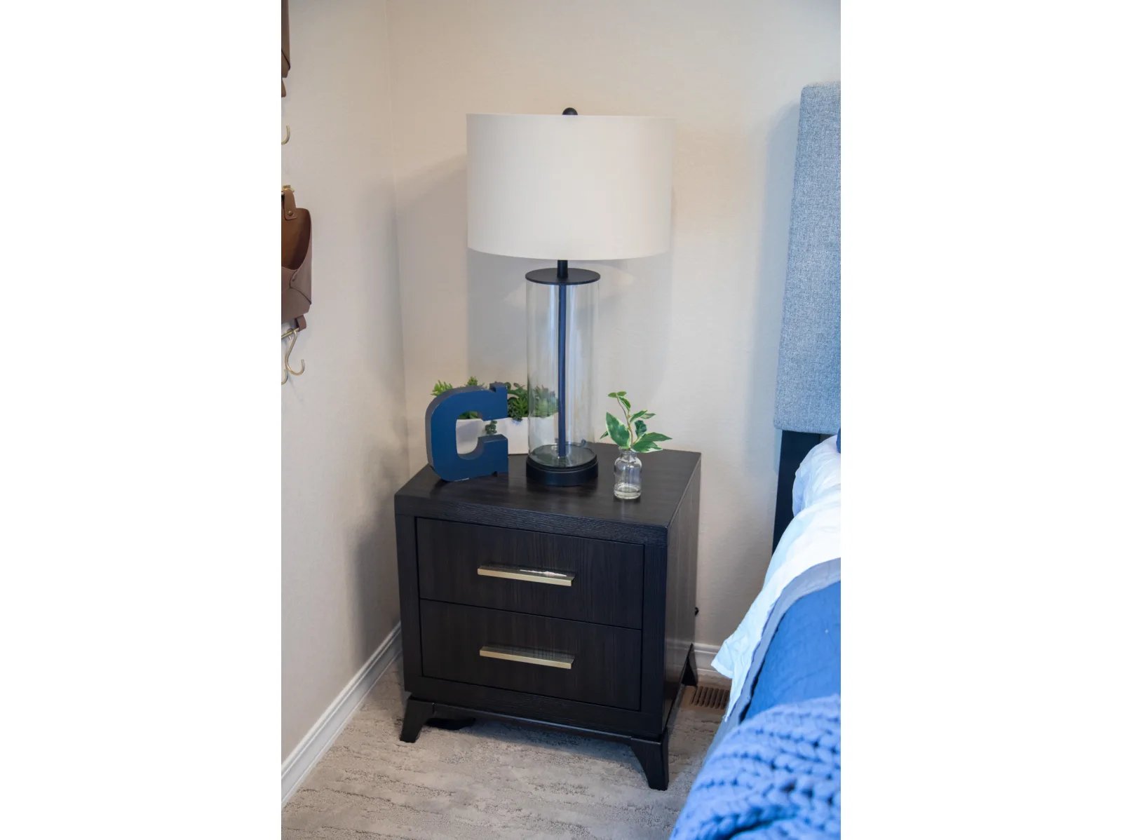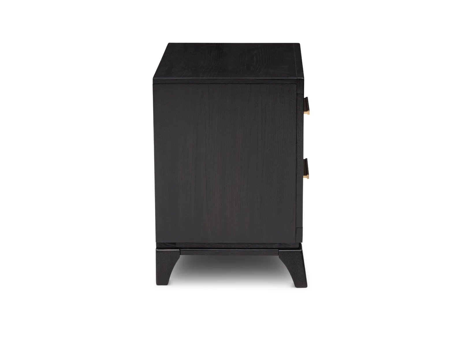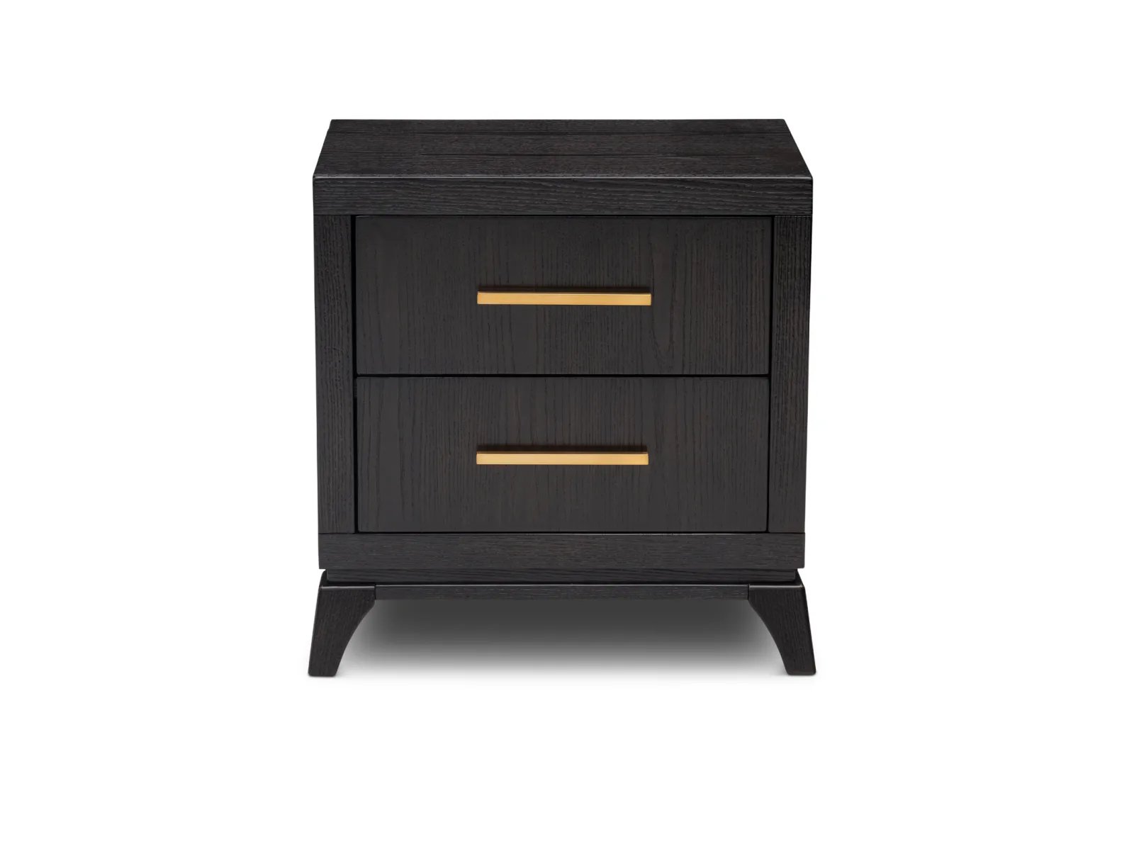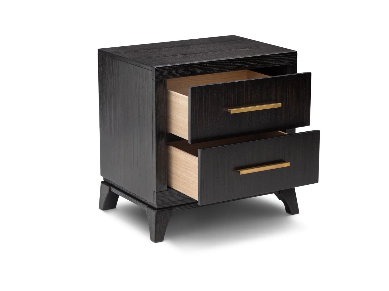 End your night on an elegant note with the Bexley Nightstand . The Bexley is a stylishly sturdy option for your bedroom, a bedside table composed of oak and birch veneers with an embossed oak finish. With its two dovetail drawers and metal center glides, this bedside table’s effortless functionality complements relaxed lifestyles perfectly. The rich brown tone of the oak finish is complete with brass pull hardware for a sophisticated touch. Sleep and relax in style with the Bexley Nightstand.