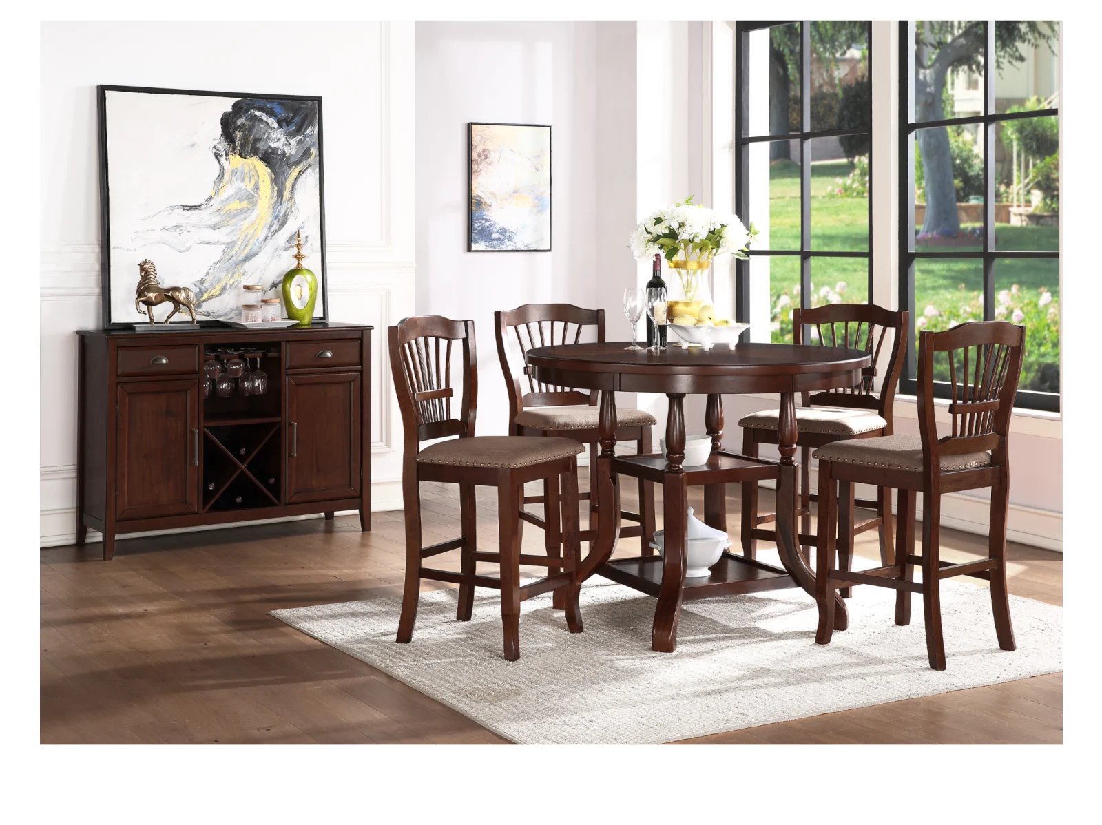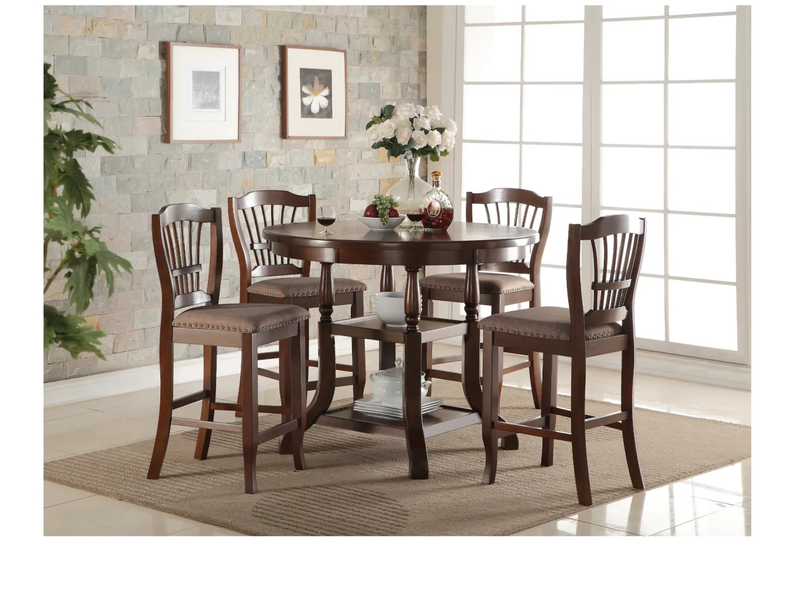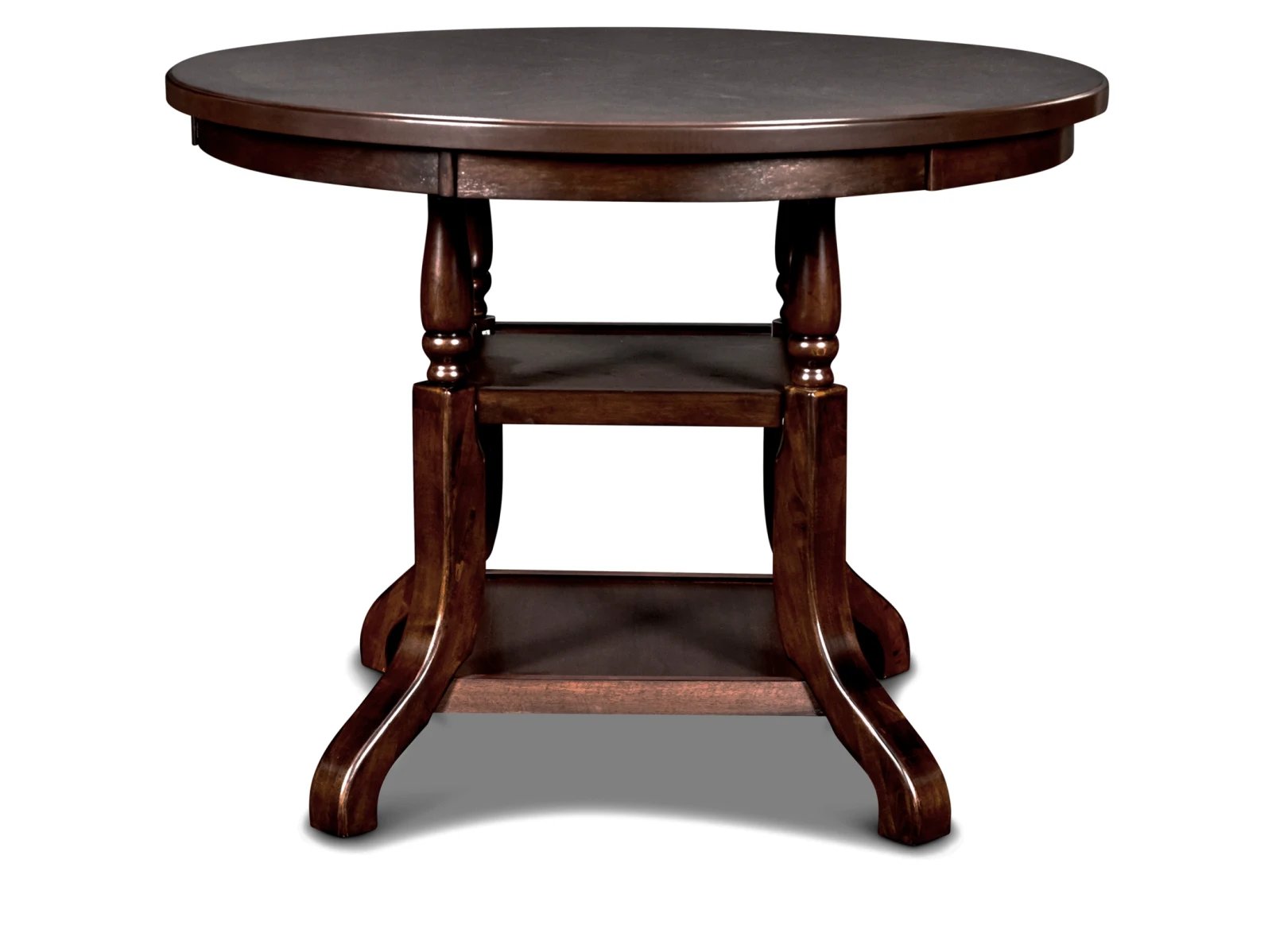 & Free ShippingFor a traditional dining arrangement that also promotes casual gatherings, choose the Biloxi Counter Height Table. This round counter height table is made from rubberwood solids and veneers for a durable wooden look that can’t be beat. To expand its functionality, this table’s ornate pedestal base lends room to two different shelves for open storage or display. Accents such as curved legs and a timeless espresso finish brings it all together, blending classic and contemporary design elements for a one-of-a-kind piece. You’ll never get enough of the Biloxi Counter Height Table!