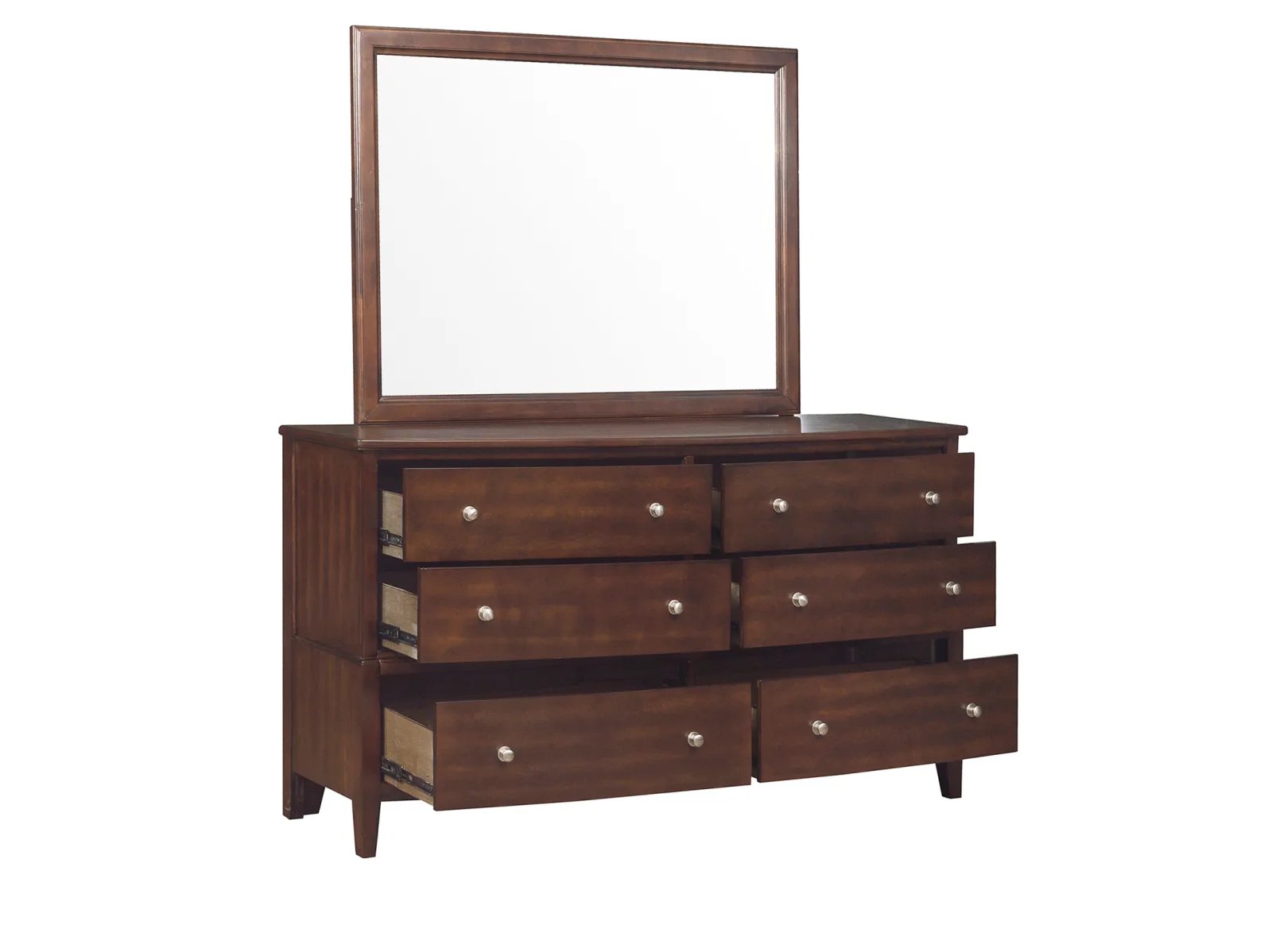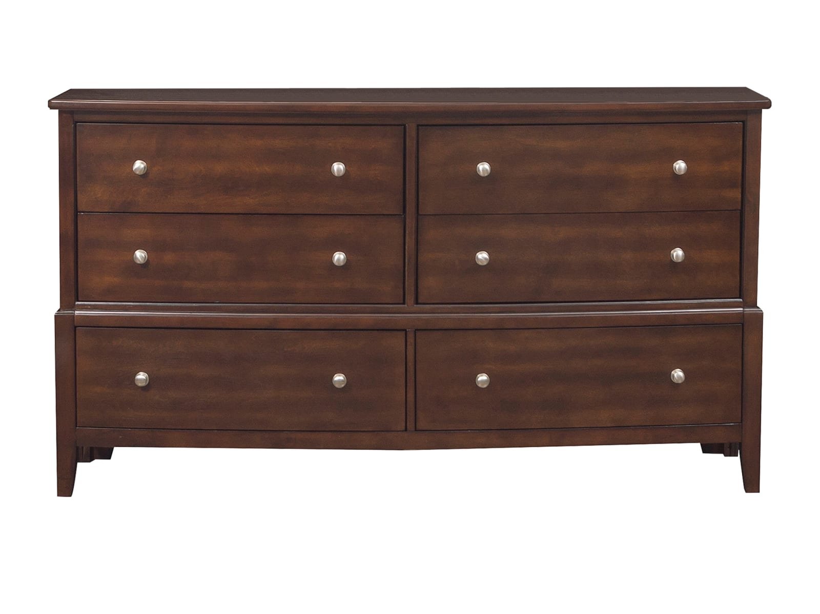 With transitional styling that is at home in a number of decorative environments, the Blake II Dresser will be a versatile addition to your home. The versatile, on-trend gray or cherry finish on pine solids and birch veneers dramatically enhances the wood grain and is perfectly accented by the satin nickel hardware that punctuates each drawer front. Tapered feet, dovetailed drawers, and a simple silhouette add modern design touches. You will love the Blake II in your home. Pair this dresser with the Blake II Mirror for a complete vanity.