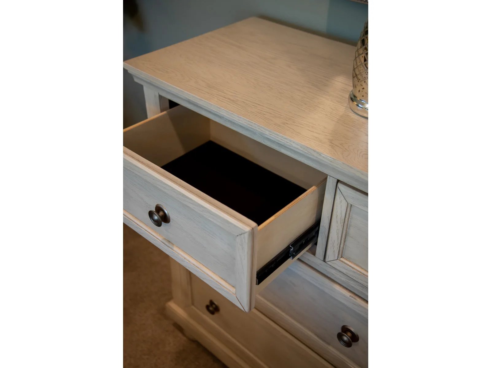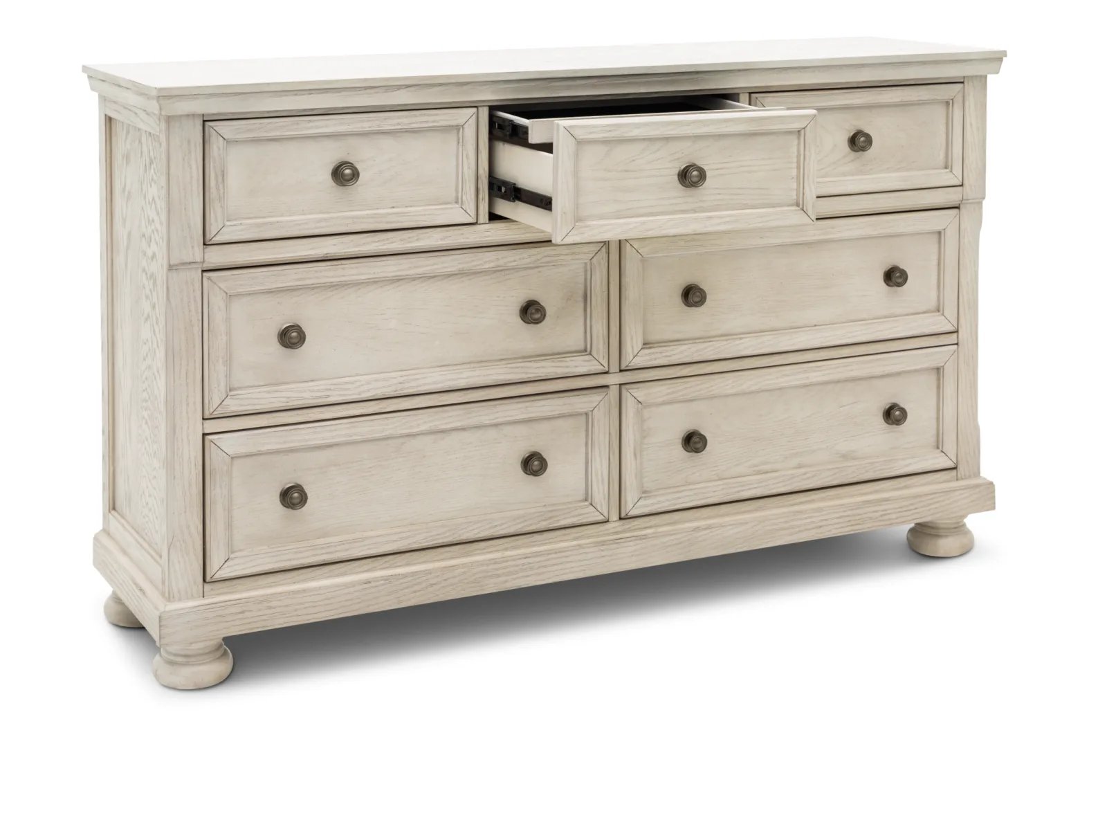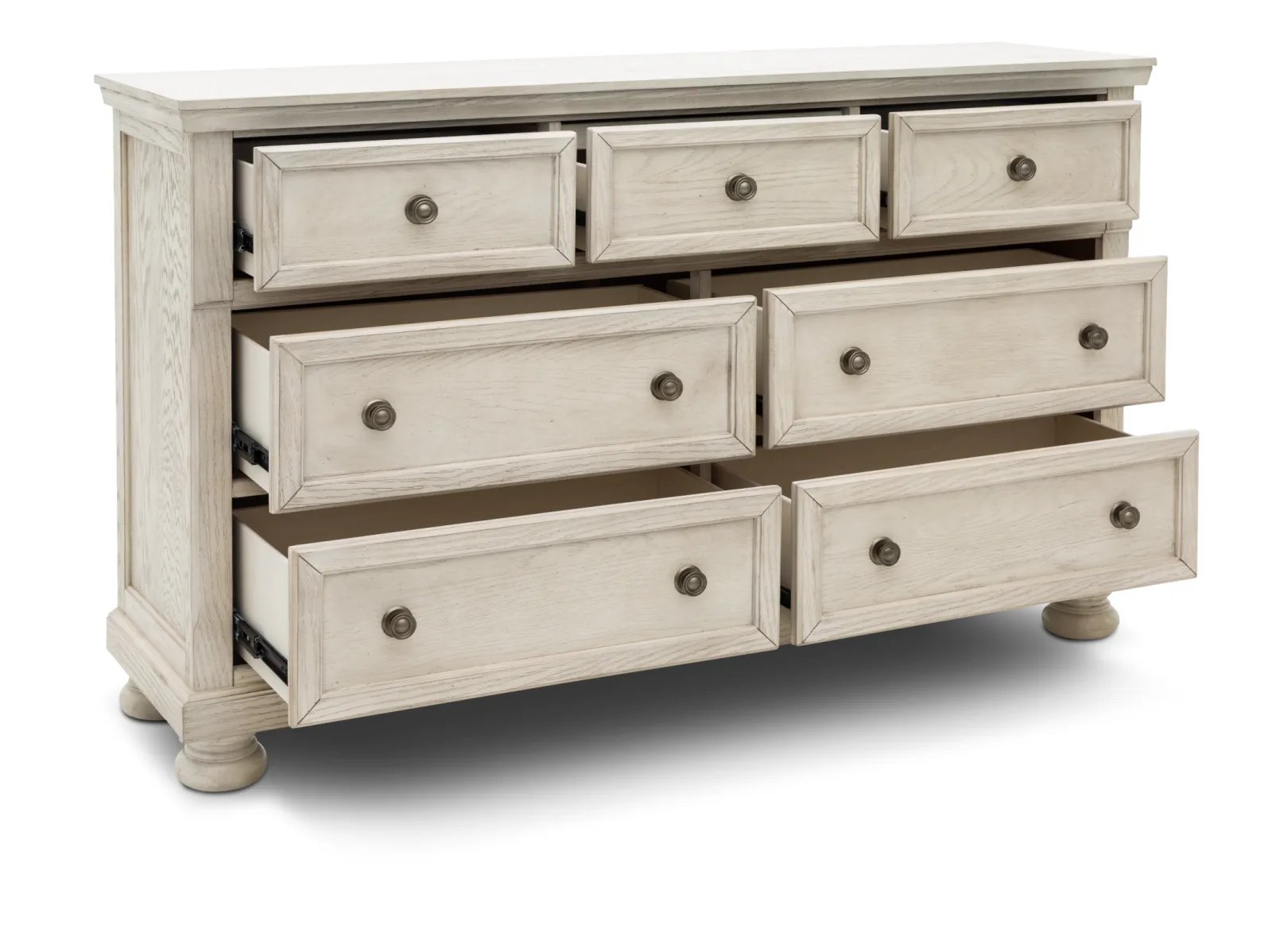 & Free ShippingRedefine your bedroom storage with the transformational Blanco Dresser. Built from poplar solids and veneers, this generously sized piece showcases seven dovetailed drawers, and even a discreet compartment for your valuables, which are all fortified with ball-bearing side glides for optimal functionality. Enveloped in a stunning wire-brushed white finish and supported by classic bun feet, the Blanco’s transitional appearance complements an array of styles and color palettes. Bring some creativity into your home upgrades with the Blanco Dresser.