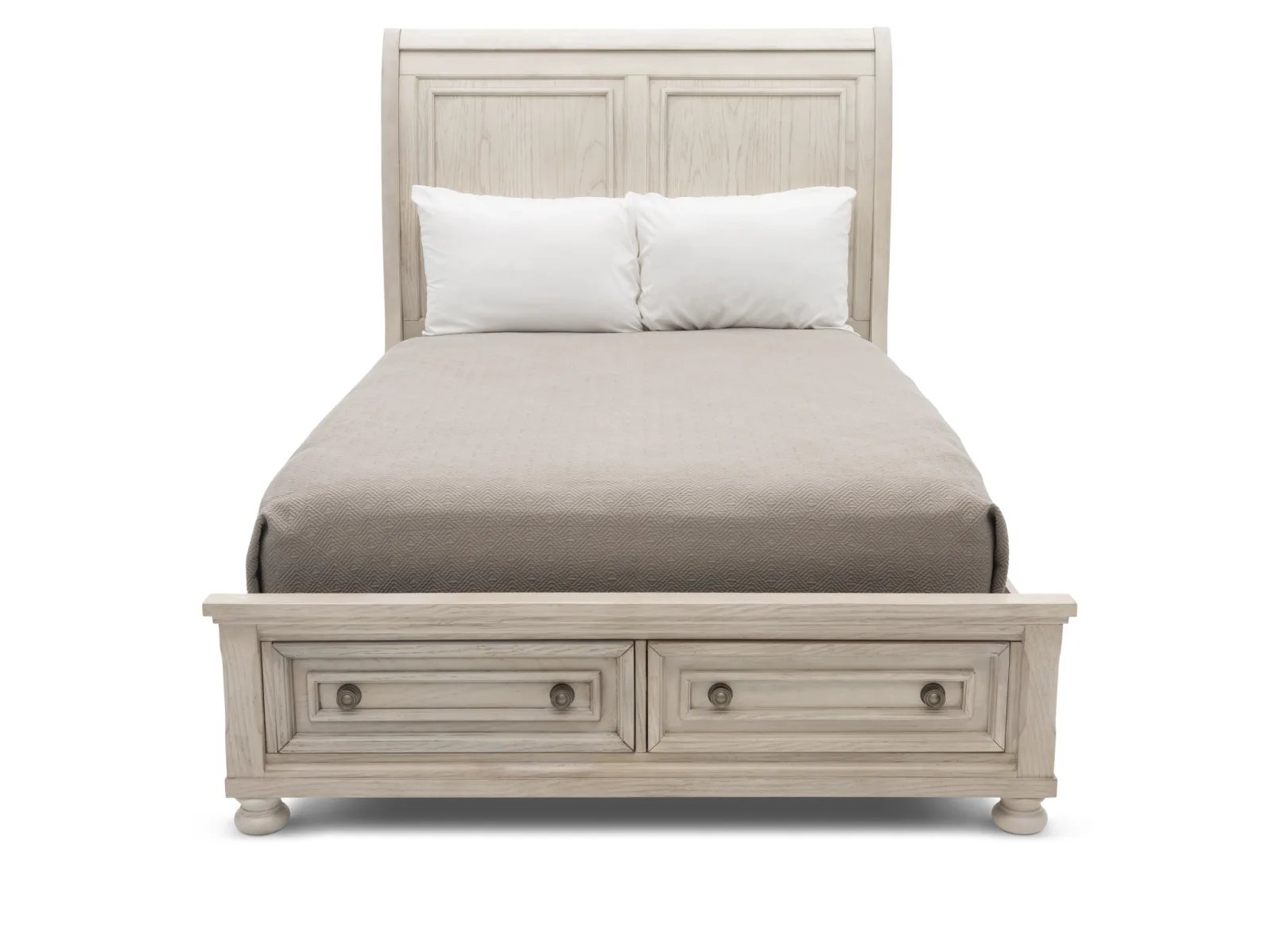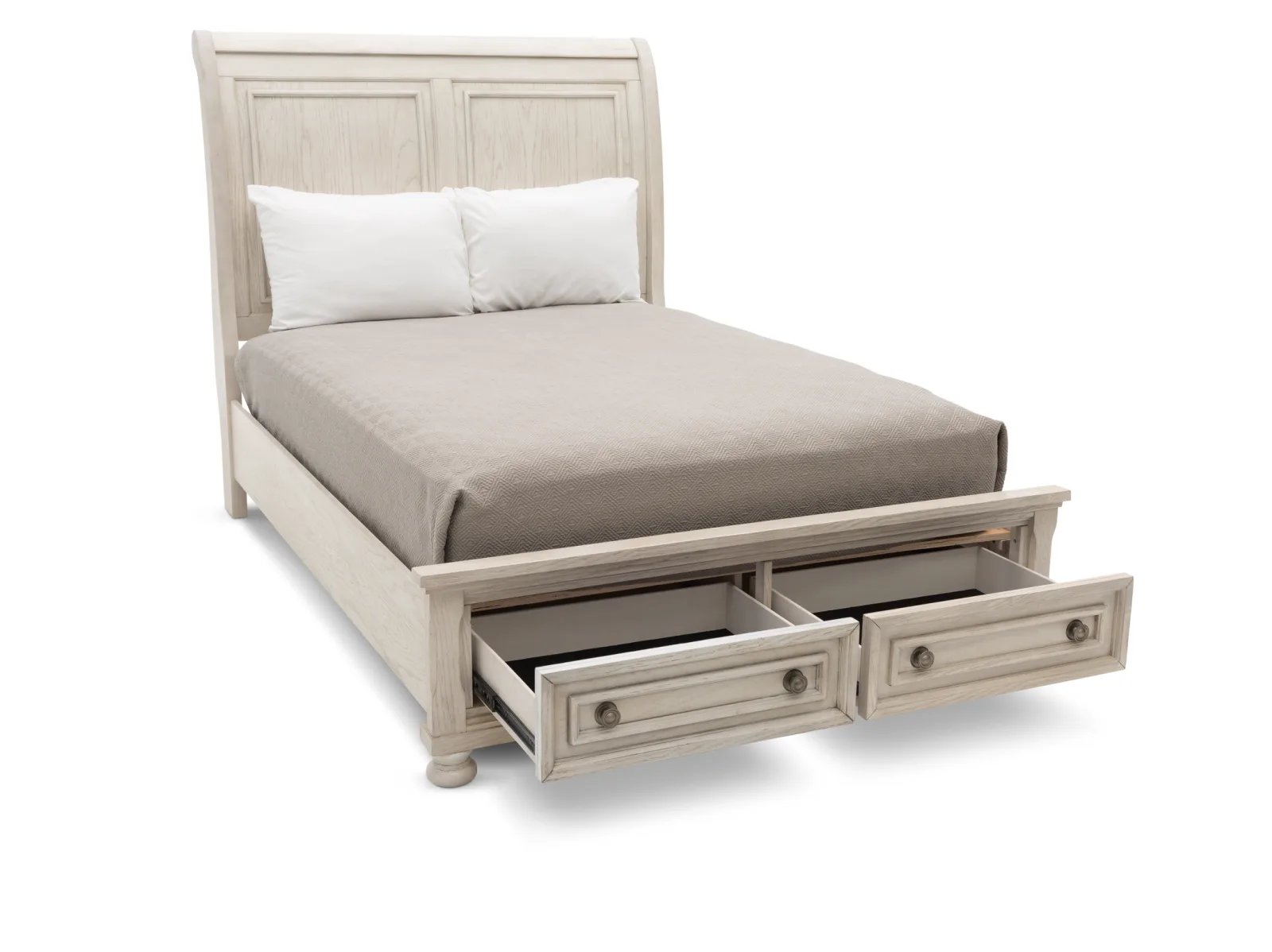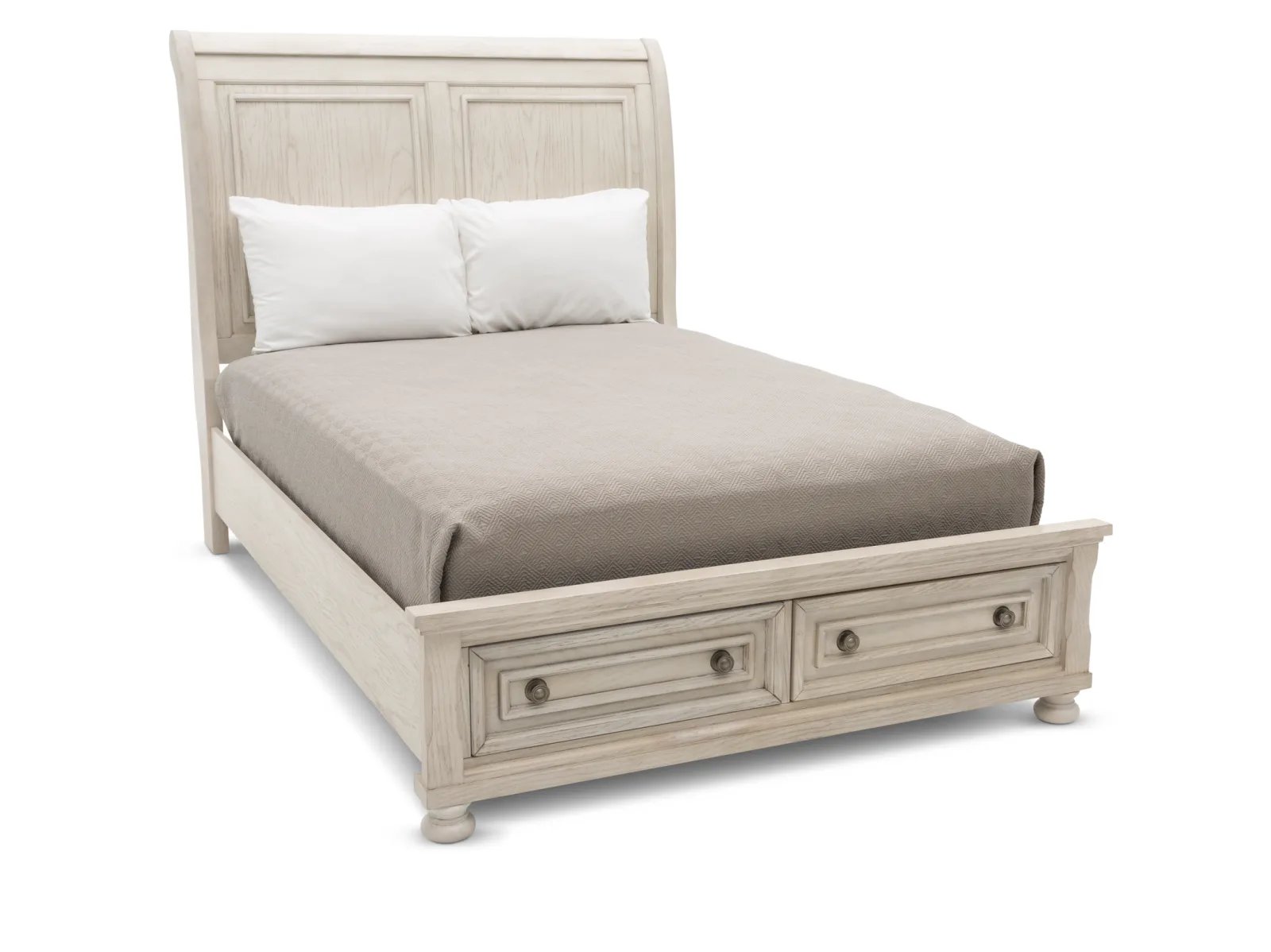 & Free ShippingThe Blanco Storage Bed has everything you need to sleep and store necessities in style. Built from elegant poplar solids and veneers, this versatile bed features a magnificent sleigh-style headboard with finely-carved panels. The headboard is complemented by a low profile footboard which features two spacious drawers atop ball-bearing glides for effortless use. The Blanco’s depth is accentuated by its ravishing, wire-brushed white finish, allowing it to accommodate a wide range of interior styles. The Blanco Storage Bed is here to transform your bedroom experience.