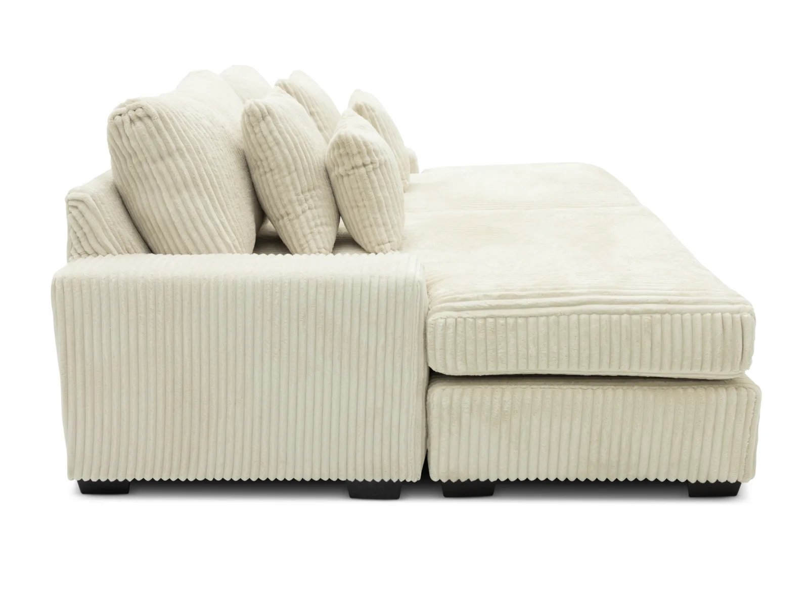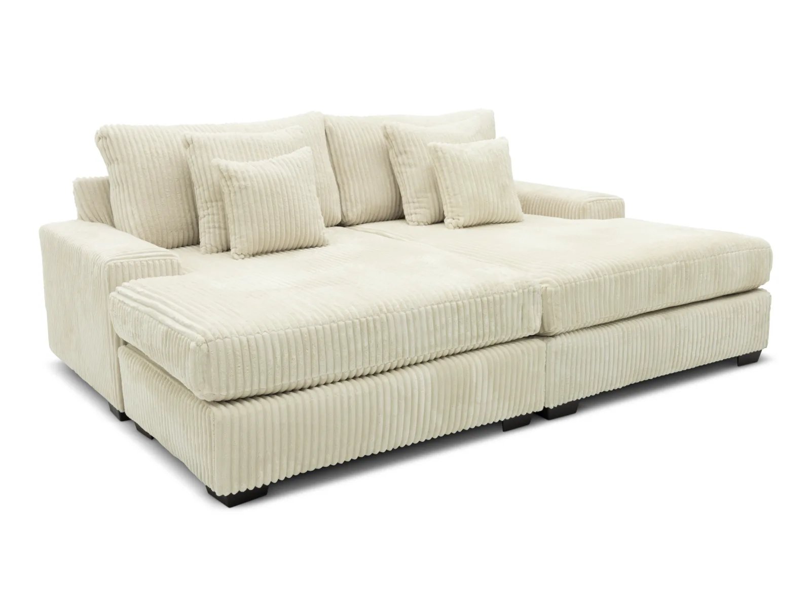 Sink into the unparalleled comfort of the Bliss 4 Pc. Double Chaise Sectional! This oversized, fully modular sectional redefines relaxation with its clean lines and luxuriously soft, corded fabric. Arrange it to perfectly fit any room and enjoy a lifetime of comfort on its oversized seat cushions. The Bliss Sectional is more than just furniture; it’s an invitation to unwind and create your dream living space.