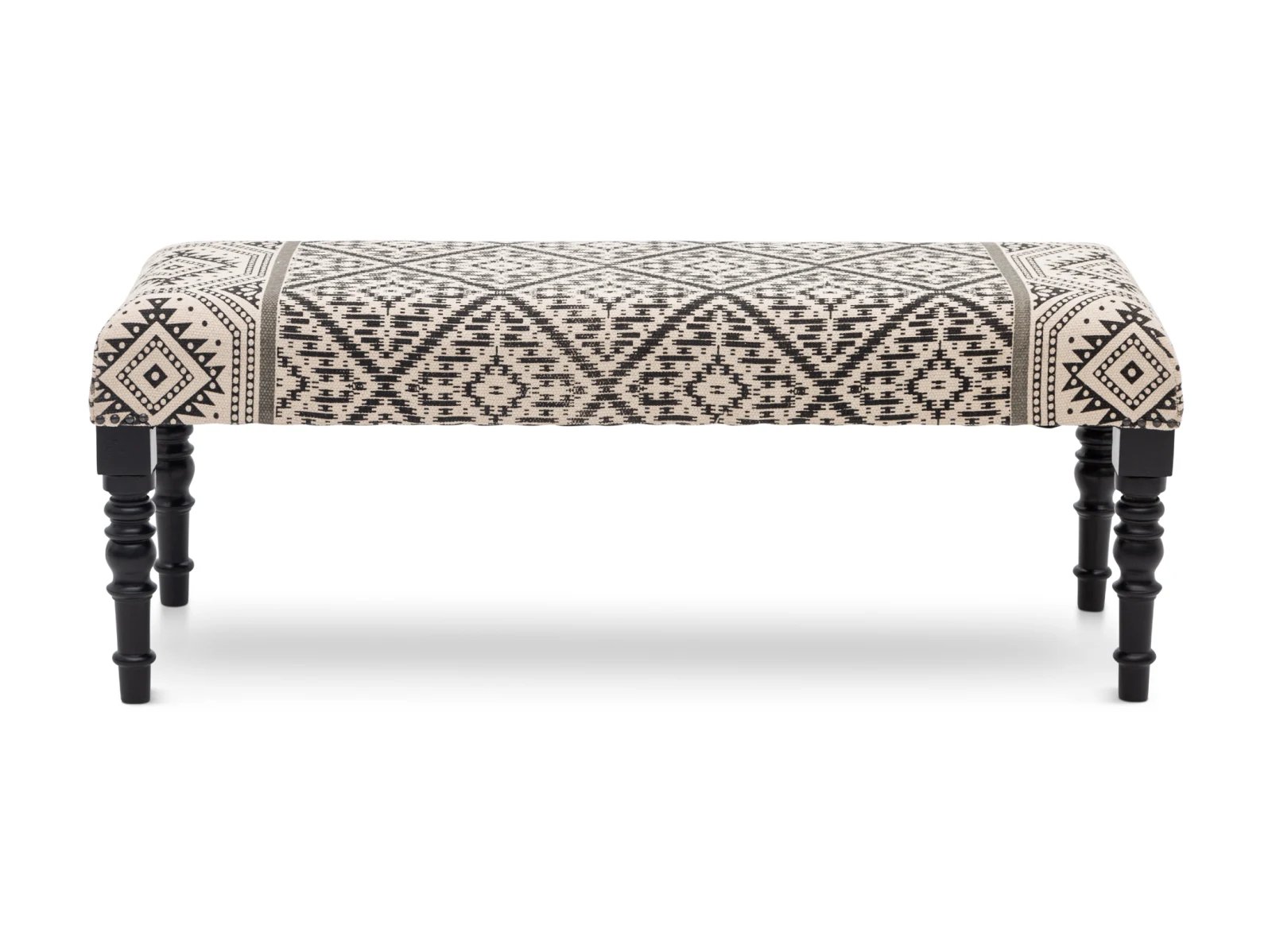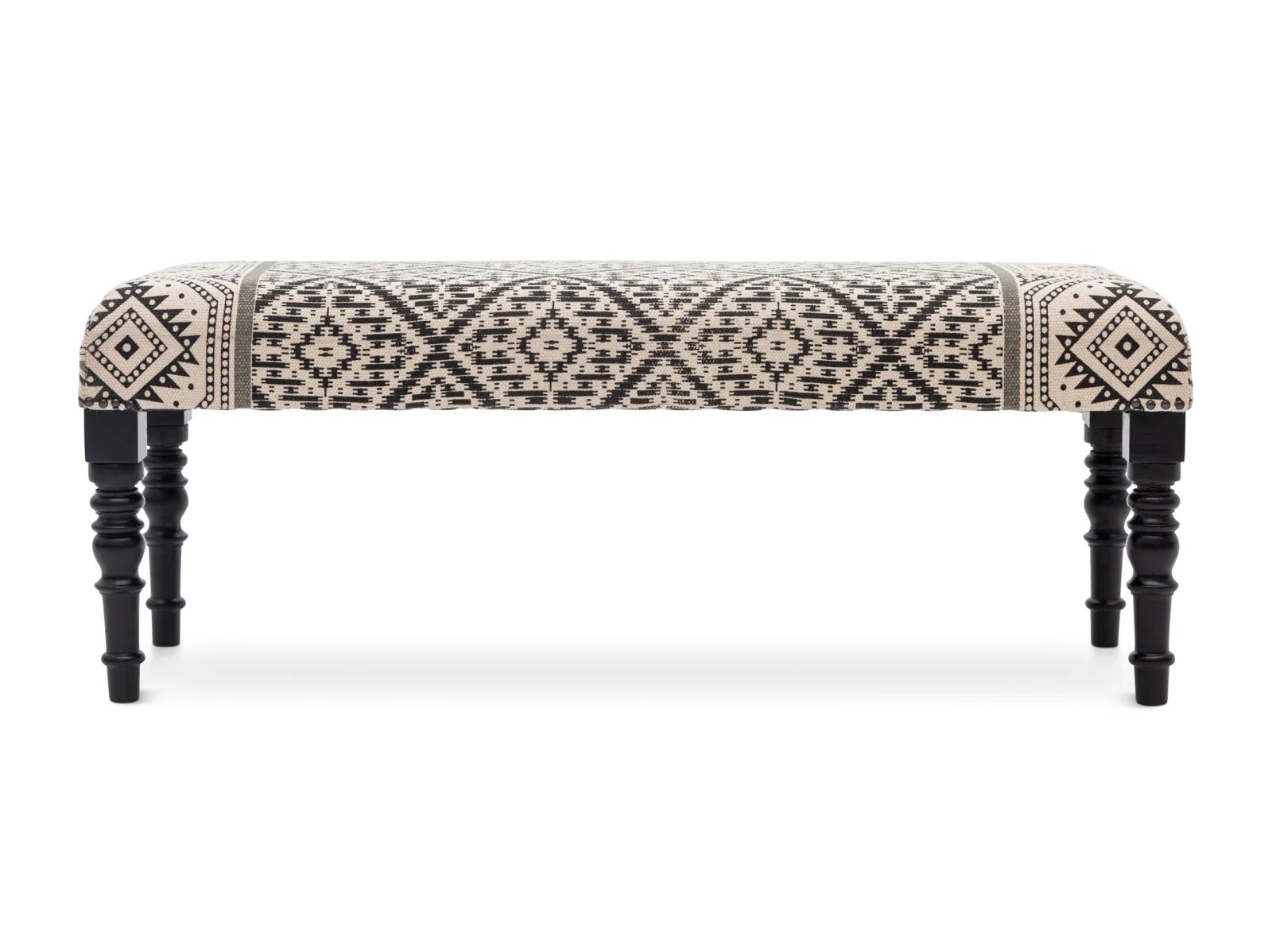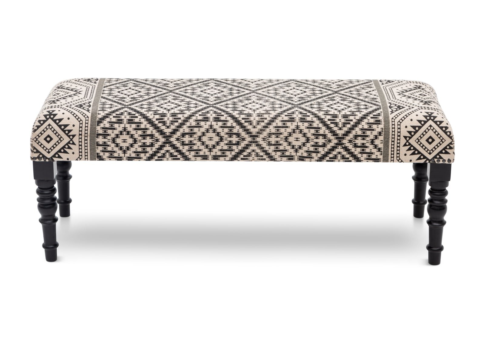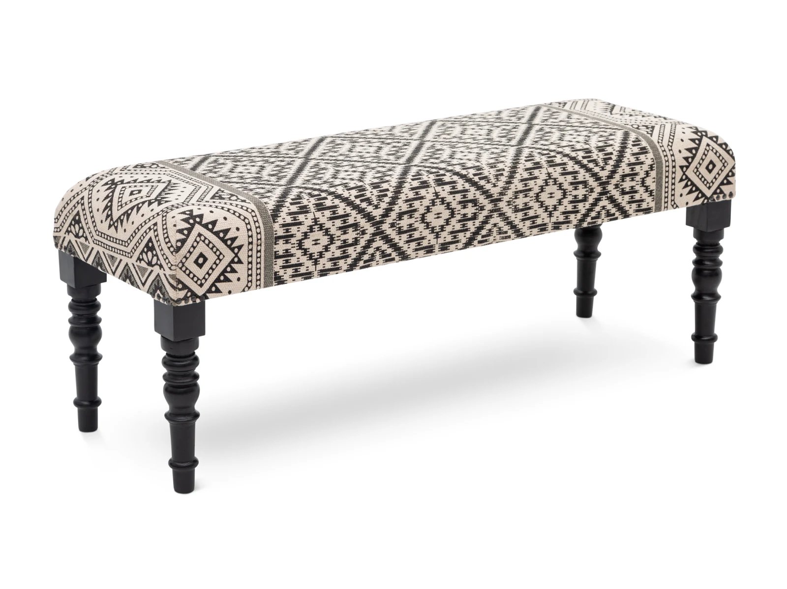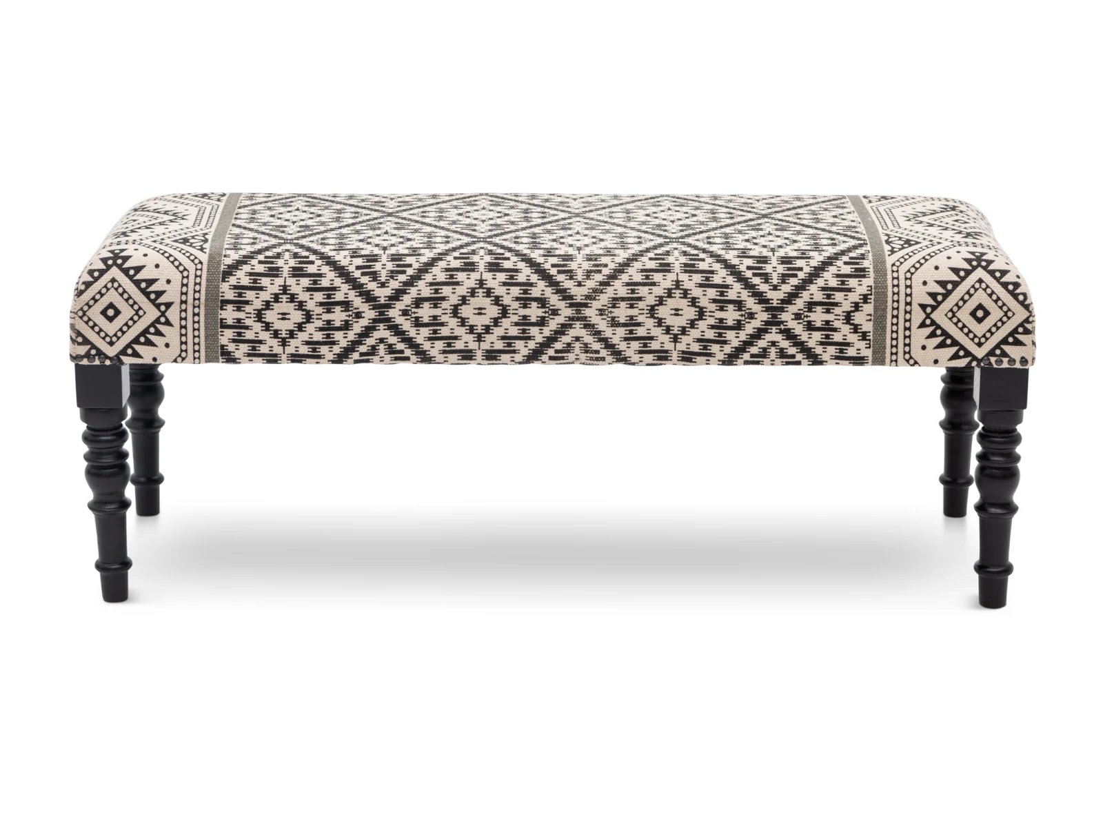 & Free ShippingPerfect for entryways, living spaces, and bedrooms, the Block Rug Upholstered Bench delivers a one-of-a-kind look full of eye-catching contrast. This stylish bench rests on a solid mango frame with expertly-turned legs in a dark black finish, and its comfy upholstered seat showcases an intricate black-and-white design reminiscent of those found on traditional hand-woven rugs.