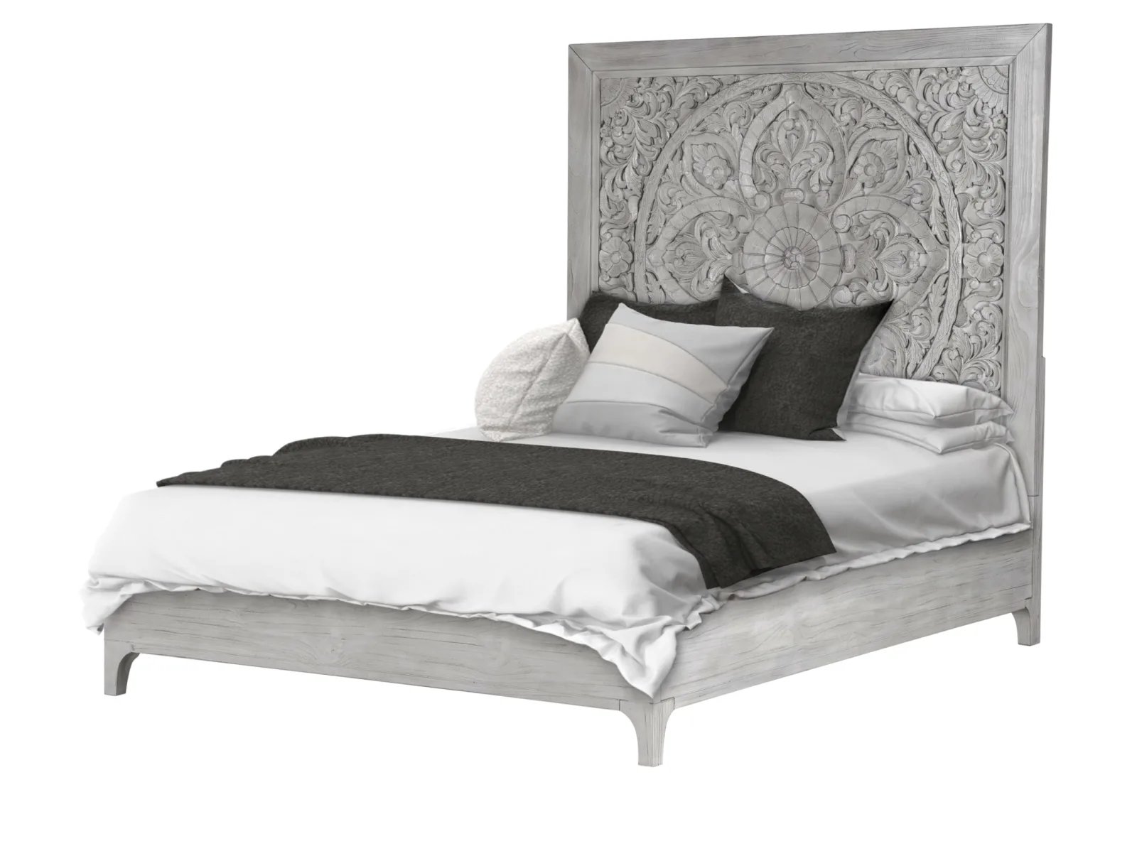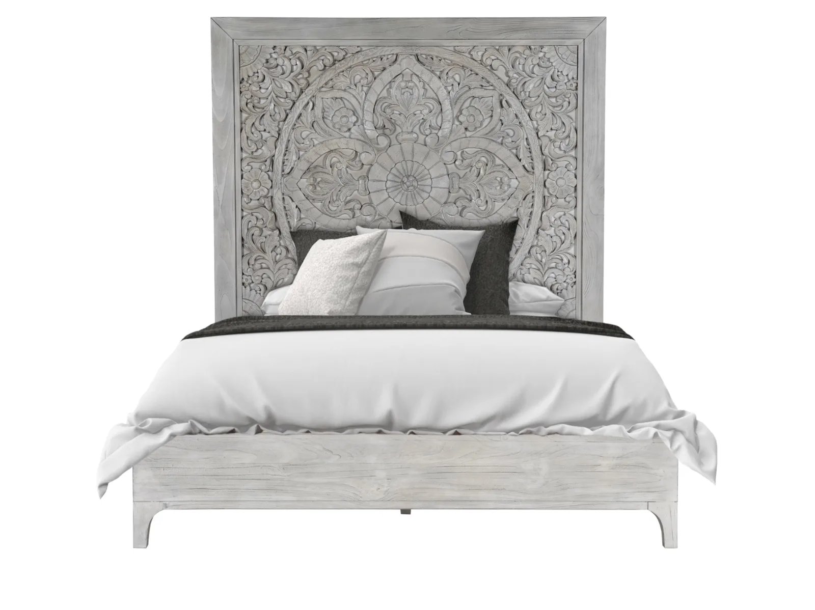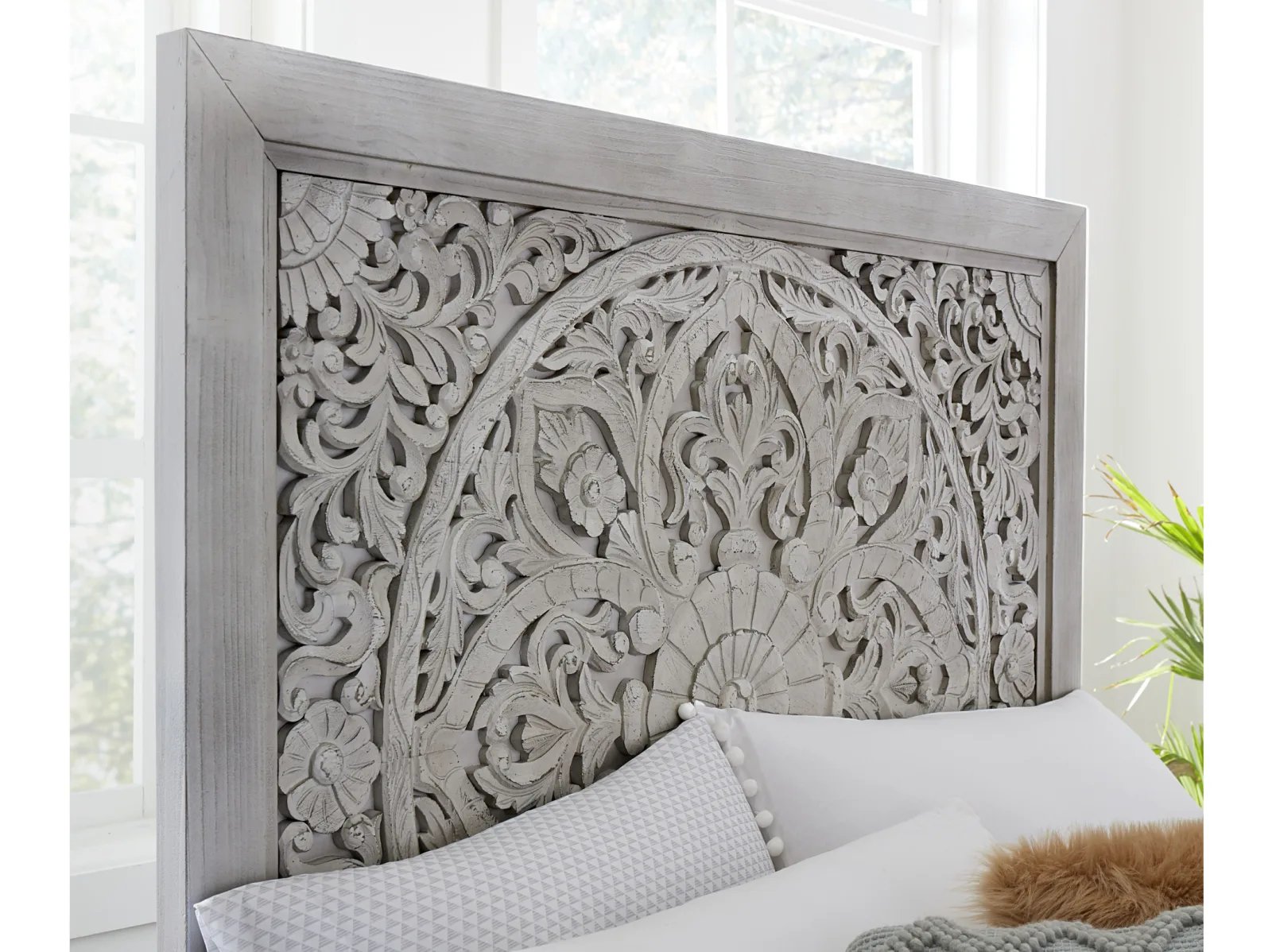 & Free ShippingAdd a Bohemian style to your bedroom with the globally inspired Bohemia collection. The high headboard and gentleman’s chest are intricately carved with a mandala pattern, a spiritual symbol that is said to establish a sacred space. Crisp edges, delicately curved feet and carved drawer pulls complete the look.